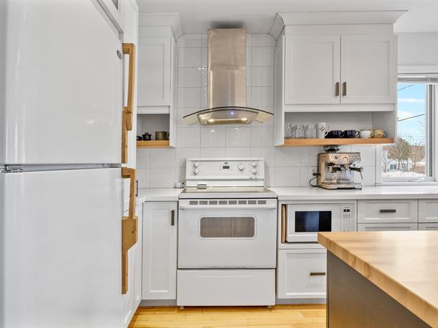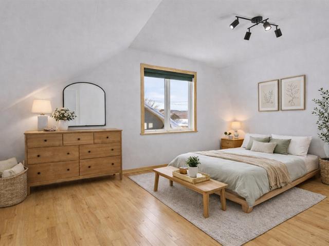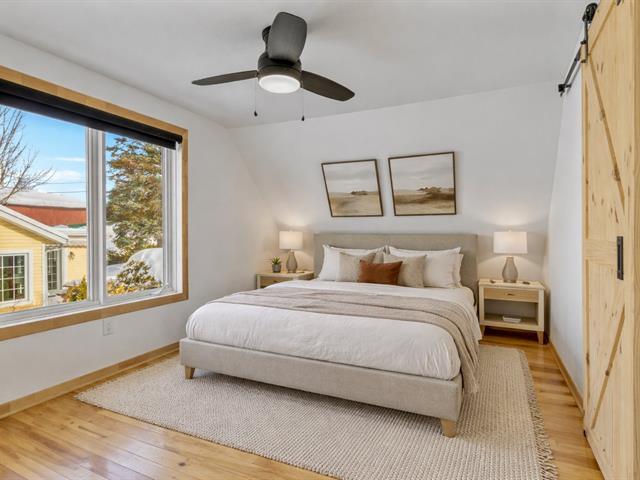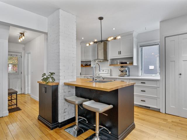 Charming 1947 property located on Patricia St. in Fleurimont, just steps from Hôtel-Dieu Hospital and nearby services. This one-and-a-half-storey home stands out for its hardwood floors, period character, and abundant natural light. The renovated kitchen features a beautiful cherry wood island, quartz countertops, and a cozy breakfast nook, flowing seamlessly into the living and dining areas. Wood-burning fireplace creating a warm ambiance. Full bathroom on the main floor. 2 bedrooms upstairs with sloped ceilings. Unfinished basement. Private fenced yard, covered terrace, detached garage and asphalt driveway. Ideal for first-time buyers! (51519639)