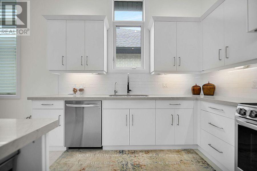 Welcome to #45 - 6990 Clayton Walk, located in South London's boutique enclave community of The Gallery! This stunning 1,762 sq ft bungalow offers desirable open concept living. Featuring 12' ceilings; coffered in the great room, with large windows allowing for loads of natural light. The executive contemporary kitchen offers quartz countertops, stainless steel appliances with oversized fridge/freezer, convenient kitchen island and storage pantry. The primary suite is bright and spacious; and includes a large walk-in closet as well as a luxurious 5pc ensuite. An additional guest bedroom as well as an oversized office/den space, full 4 pc bath, bonus powder room & large laundry room complete the main floor. Additional features include an attached double garage, covered front porch and automated blinds. Located just West of Colonel Talbot Road and South of Pack road, offering easy access to the 401/402 highways and loads of great amenities; including shopping, restaurants and grocery stores. (41927680)