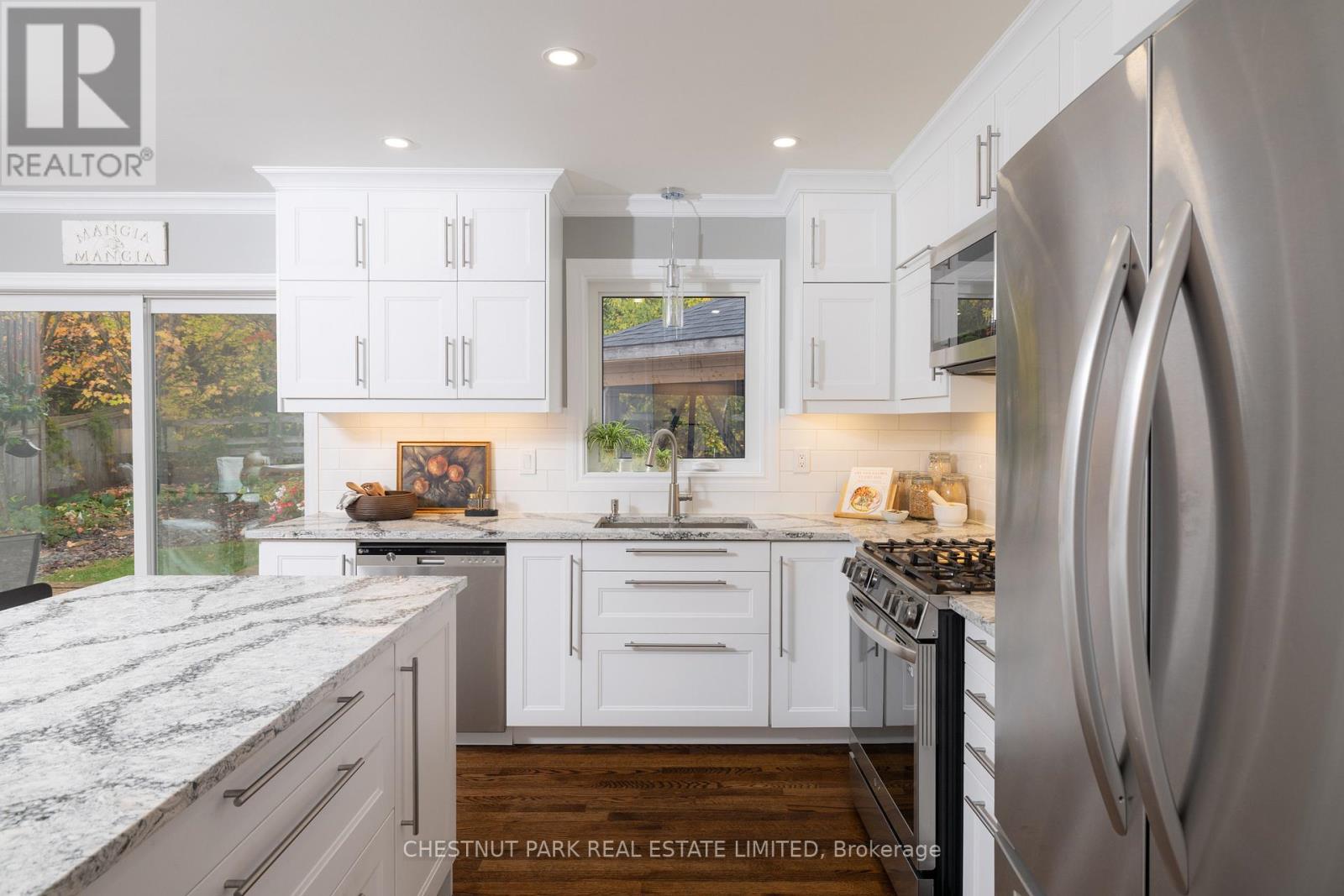 Set in Uxbridge's most coveted neighbourhood, this home is positioned on a private 61x113 ft lot backing onto protected green space. Occupying a premier position at the top of the hill-where rare backyard privacy meets open sky and long views-the addition above the garage becomes a defining feature, allowing a private in-law or young-adult suite to support multi-generational living, or to remain an expansive family great room-a rare way for families to share one roof while easing the cost of living, without sacrificing space or independence. With over 4,000 square feet of finished living space, the home also stands confidently on its own as a substantial single-family residence. Sitting at the heart of the home, the fully renovated kitchen features Cambria quartz countertops, stainless steel appliances, a large centre island, and a dedicated coffee bar and pantry - connecting everyday living with both indoor and outdoor spaces. French doors link the formal living room to a dramatic foyer, where a central skylight brings natural light down through the core of the home. A remodelled main-floor bath (2025) and upgraded laundry room (2025) bring recent updates to two of the home's most used spaces. Upstairs, four well-sized bedrooms and a comfortable great room establish a distinct private level for family and guests. The added loft is complete with vaulted ceilings, skylights, a gas FP, hardwood floors, & a kitchenette/wet bar. A second-level balcony extends along the back of the addition, offering separate access and pretty views. Throughout the home, restored oak hardwood floors (2020), smooth ceilings, pot lights, and new windows (2023), speak to the level of care invested over time. The finished basement offers a 5th bedroom, bathroom & games room. Just steps from the Quaker Trail and mins from Uxbridge's off-leash dog park, schools, and historic downtown, this home offers rare backyard privacy and elevated views within one of the town's most established pockets. (41927762)