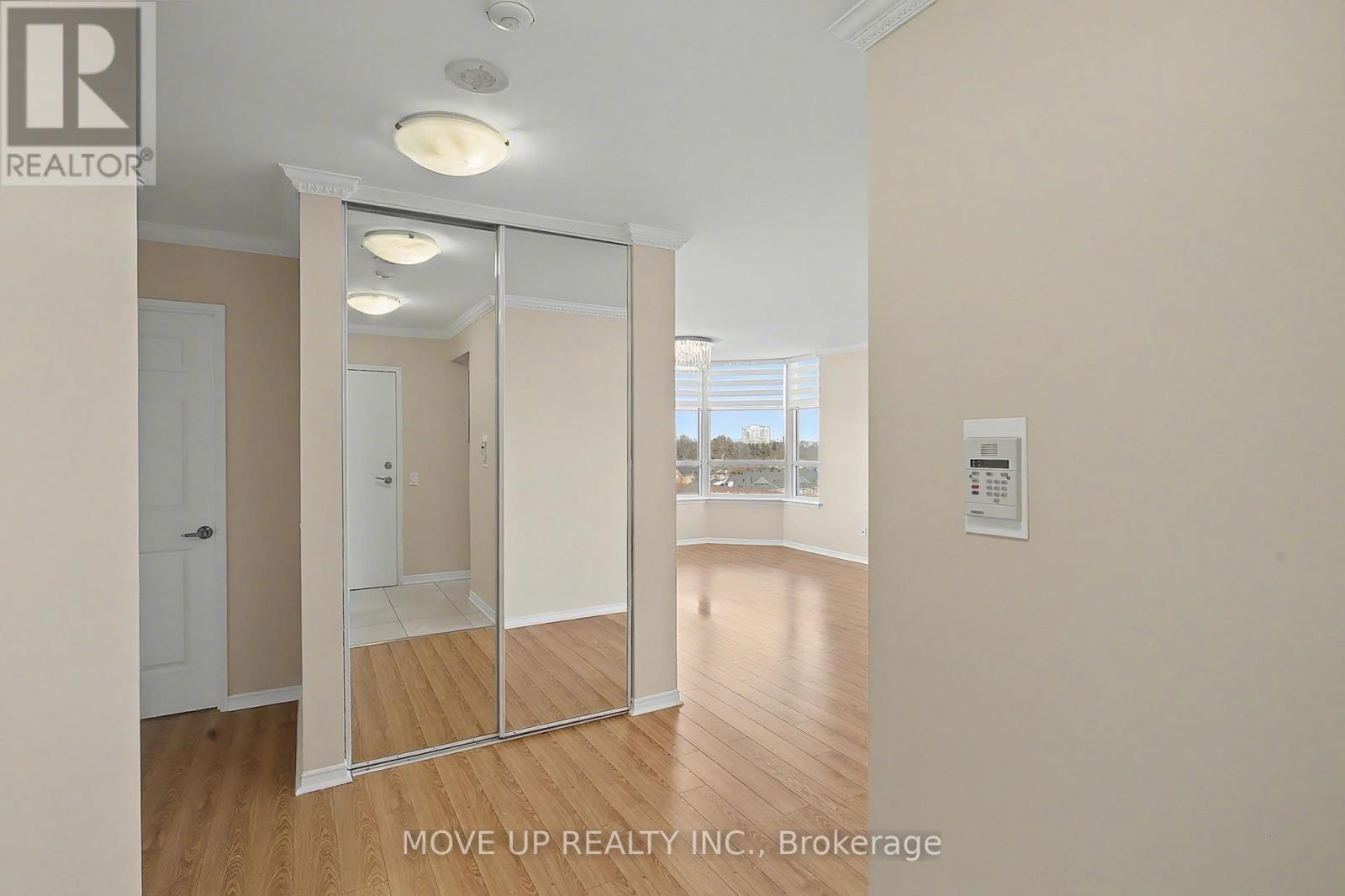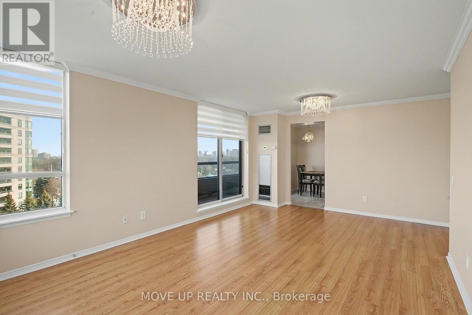 Immaculate 2-Bedroom Corner Residence with Panoramic South-East Views.Welcome to this beautifully renovated corner unit offering approximately **1,142 sq. ft.** of refined living space, bathed in natural light from its coveted **south-east exposure**. Thoughtfully updated with **brand-new carpet and fresh paint throughout**, this elegant suite seamlessly blends comfort, functionality, and style.The expansive **living and dining area** features a walk-out to a **large open balcony**, perfect for enjoying serene treetop vistas, glowing morning light, and captivating **Toronto skyline views**. The **custom kitchen cabinetry** and bright **eat-in kitchen** create an inviting space for both everyday living and entertaining.The **primary bedroom retreat** boasts a **4-piece ensuite** and **his & hers closets**, while the generously sized **second bedroom** is ideal as a home office, nursery, or guest suite. Enjoy the convenience of **two full bathrooms**, **ensuite laundry**.Perfectly situated near **Steeles & Bathurst**, this home also includes **one drive-in parking space**, offering both comfort and convenience in a prime location (41927857)
