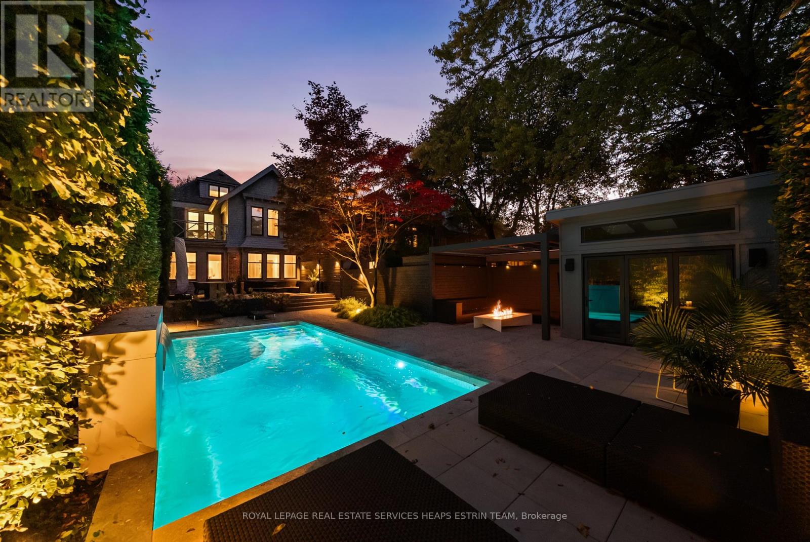 A wonderful opportunity to lease a spectacular home, right in the heart of Rosedale. A rare blend of heritage charm and modern sophistication, 150 Douglas Drive is a bespoke residence that perfectly captures the essence of Rosedale living, refined, timeless, and deeply connected to nature. Meticulously redesigned by renowned architect Johnson Chou, this home exudes warmth and intention. Interiors are elevated by sculpted ceilings with ambient lighting, in-floor radiant heating, and fully integrated Control4 smart home technology, including fully automated lighting and irrigation systems. Built-in sound spans most of the home and outdoors, complemented by a home theatre system in the family room.The living room is anchored by a striking quartzite fireplace, while the elegant dining room stuns with a custom wine feature. The Poliform kitchen is a dream for the home chef, complete with a large island, premium appliances, and a sunlit breakfast area overlooking the backyard oasis. The family room offers a relaxed and inviting space to unwind.Outside, a resort-style backyard awaits with a heated Bonavista pool, waterfall feature, and expansive composite deck. A cabana, pergola with built-in television, fire table, and curated lighting create a private outdoor retreat.Upstairs, the primary suite offers vaulted ceilings, dual walk-in closets, and a spa-inspired ensuite. Two additional bedrooms and a stylish family bath complete the second floor. The third floor features a large bedroom and a flexible second room that can serve as either a den or an additional bedroom, along with a full bathroom.The lower level offers excellent ceiling height, a separate entrance, recreation room, office, bedroom, full bath, and bright laundry with pet shower. Additional features include heated front pad and walkways, and a wide mutual drive with backyard access.Beautifully situated on a prime stretch of Douglas Drive, just steps from Chorley Park, ravine trails, and Summerhill shops. (41928298)