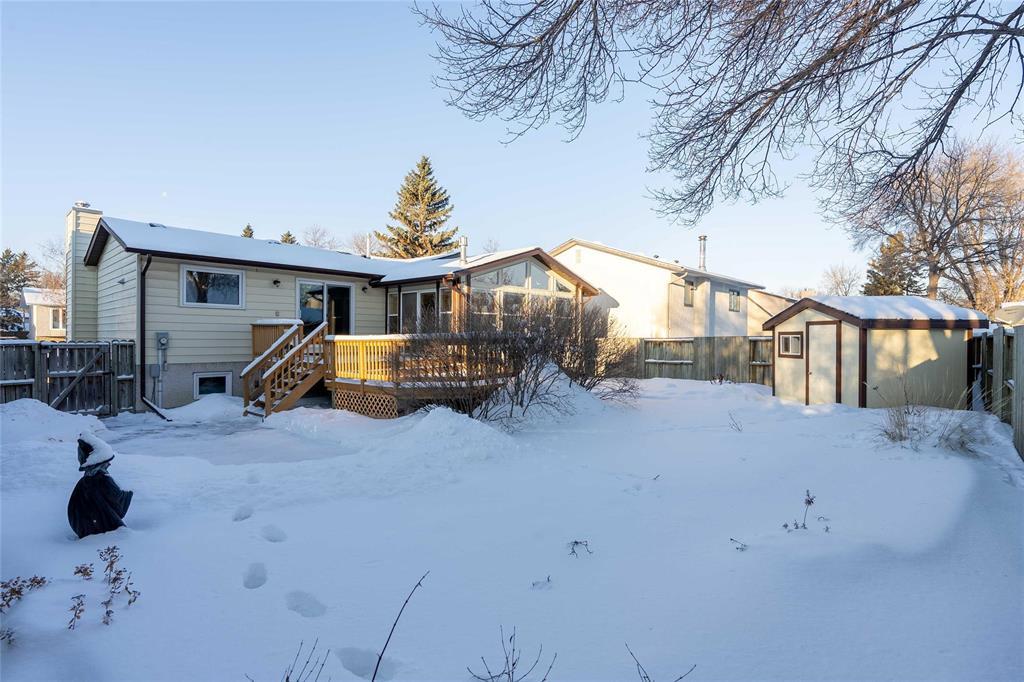 2E//Winnipeg/SS Jan 15, Offers considered Jan 20. Same Owner for 30+ years. Solid, Stylish & Squeaky Clean, this 3+1 Bd & 2 (Renovated) Bath, 3 Level-Split, River Park South Beauty has loads of Upgrades & Oozes with Pride of Ownership & Attention to Detail. This Home has a Gorgeous, Island Kitch w/ Tile Backsplash & A-1 Appliances (Cook Top & BI Oven, OTR Micro & Brand New BI Dshwsher) and a Great-Sized, Open Dining area with Patio Doors to the Huge Deck, Dreamy 4-Seas Sunroom('01) & Private, Fenced Yard w/ Shed & Patio. Kitchen area over-looks the Cozy Main flr Fam Rm w/ Custom Handrails and Glass, Vaulted Ceilgs & WB FP. 3 bds up; Lrg Primary Bdrm w/ ample closets & patio ds to Your New Favorite Room, The Sunroom; Year-Round Comfort w/ Heated Floors, Huge Windows and Gas Stove. There's more; Finished Lower Level w/ Lovely, Modern Rec-Rm w/ Terrific Natural Light from the Over-sized Windows, Huge 4th Bd, Lovely 3pc Bath, Bright Laundry area & Great Storage. Renovated Baths ('24/'25), Gleaming Hwd Flrs. Newer Windows & Drs. Low Maint Ext Siding. HE furn. Sump Pump. Back up Valve. Front Drive-way....and more and more. This Home has been Loved & it Shows! Welcome Home! (231841490)