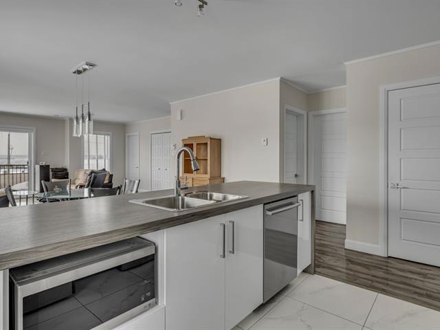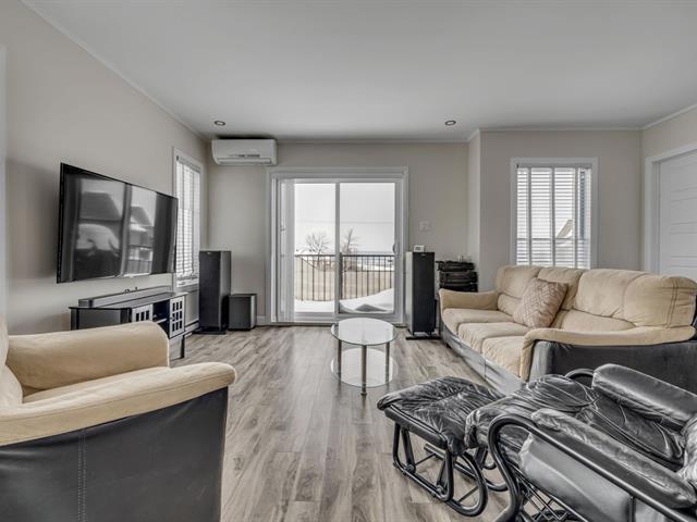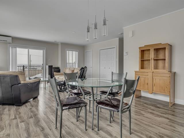 Tout simplement impeccable, situé au dernier niveau, condo offrant 2 chambres, aire ouverte, cuisine avec comptoir lunch et garde-manger walk-in, grand salon, salle de lavage indépendante, rangement dans le condo, terrasse avec vue dégagée sur le fleuve, 2 stationnements extérieurs, rangement extérieur, construction de bonne qualité, accès rapide à l'autoroute et la piste cyclable, libre rapidement. (58131999)