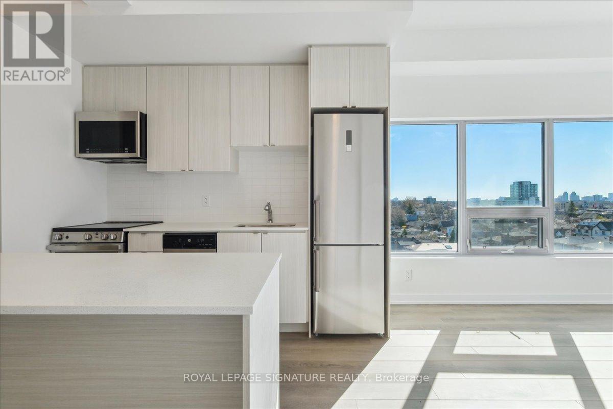 Experience elevated urban living at 8 Haus Boutique Condos, where sleek modern design meets everyday functionality in one of Toronto's most conveniently connected neighbourhoods. This spacious and sun-filled 3-bedroom, 2-bathroom corner unit offers 976 square feet of smartly designed living space, featuring large wraparound windows that fill the home with natural light throughout the day. The layout is exceptionally functional, offering a seamless flow between the open-concept living and dining areas, and a contemporary kitchen equipped with full-sized stainless steel appliances, quartz countertops, stylish cabinetry, and ample storage ideal for both everyday living and entertaining. This thoughtfully finished unit includes a rare parking and locker combo located in the underground garage, as well as a large premium locker conveniently situated on the 7th floor directly across from the unit perfect for quick and easy access to frequently used items. With generous bedrooms, two modern bathrooms, and well-utilized space throughout, this condo offers both comfort and practicality. Located in a vibrant, evolving area, residents enjoy unmatched convenience with easy access to Yorkdale Mall, TTC transit, the future TTC subway station, Highway 401, and the Allen Expressway. A wide range of daily essentials grocery stores, banks, restaurants, and more are all nearby, while the York Beltline Trail offers scenic paths for walking and cycling just moments from your doorstep. (41928930)