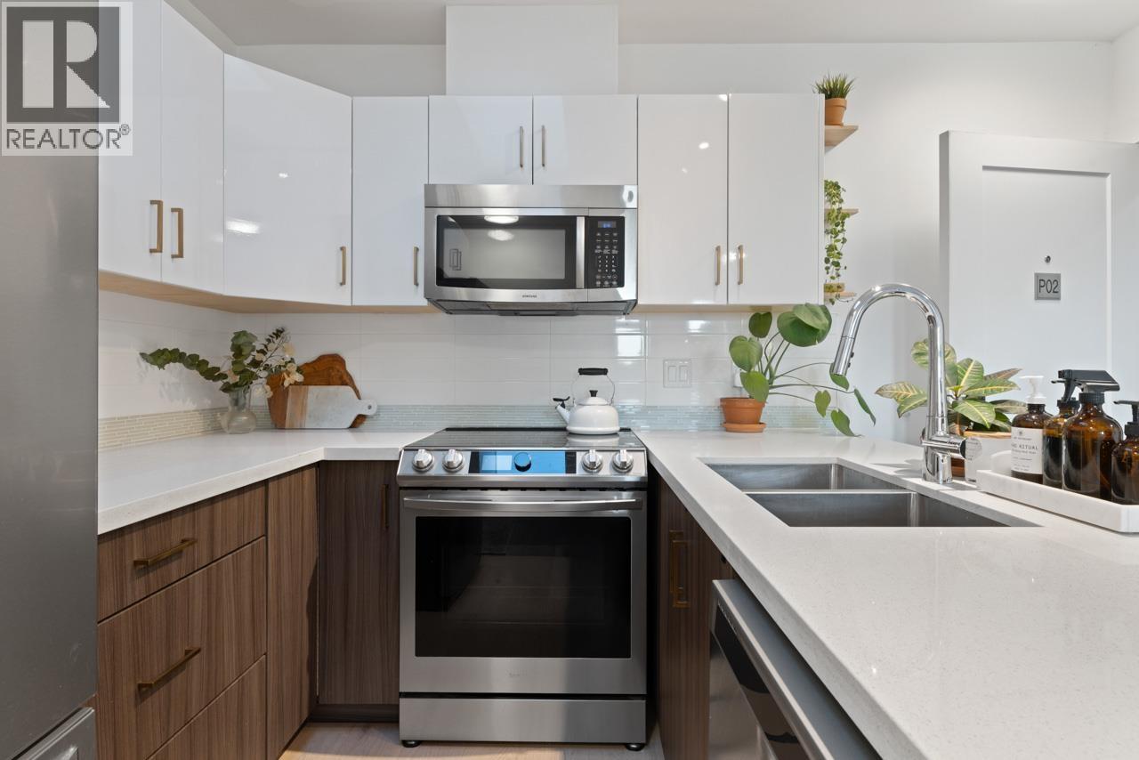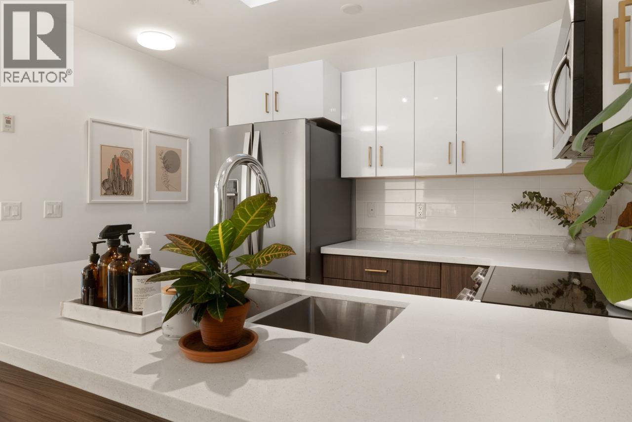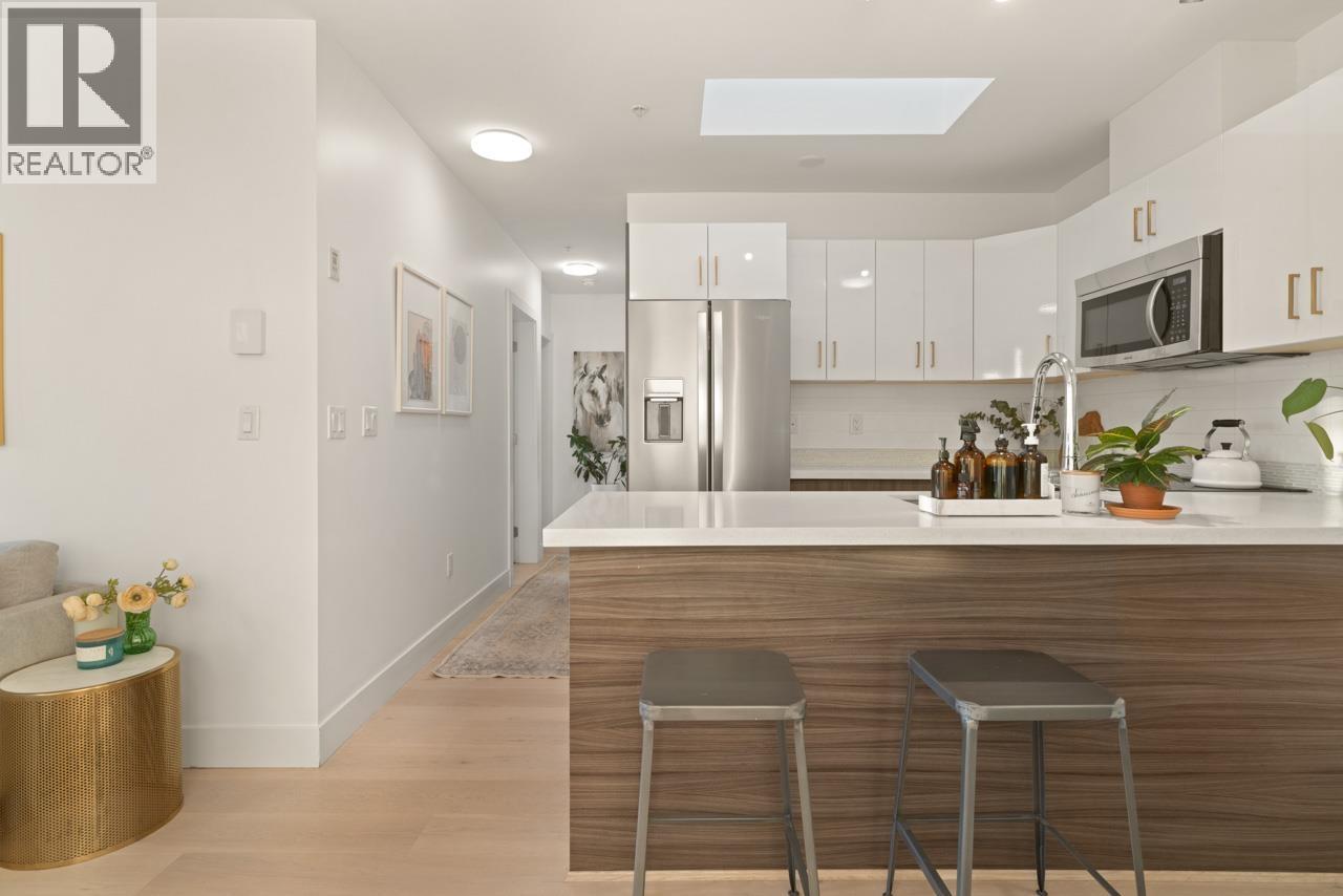 Make your penthouse dreams a reality at Kensington Point - where luxury meets affordability. A gorgeous 2 bed, 2 bath corner home sits on the top floor of a boutique building located in Cedar Cottage. Find yourself on the quiet side with the most covetable, almost 500sf, garden-ready patio to enjoy the sun set over the city & panoramic views of the mountains. The bright interior offers open concept living with a spacious layout. Light fills the space through floor-to-ceiling, west-facing windows & a perfectly placed skylight in the kitchen. Built in 2017, PH2 has been well maintained featuring engineered hardwood floors, custom closets, quartz countertops, stainless steel appliances & Miele W/D combo. A blend of comfort, style & everyday practicality under one roof. Rental & pet friendly with time still left on the warranty. 1 parking, 1 storage room & a private bike locker are all yours. Steps to Save-On, Pallet Coffee, the library, Kingcrest Park with many great restaurants & shops outside your door. (32319562)