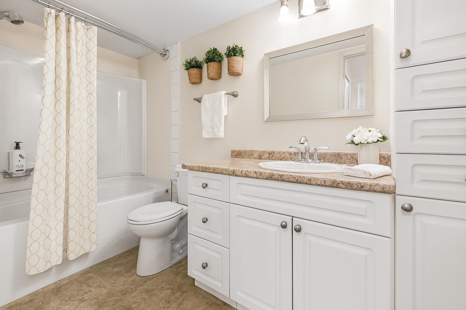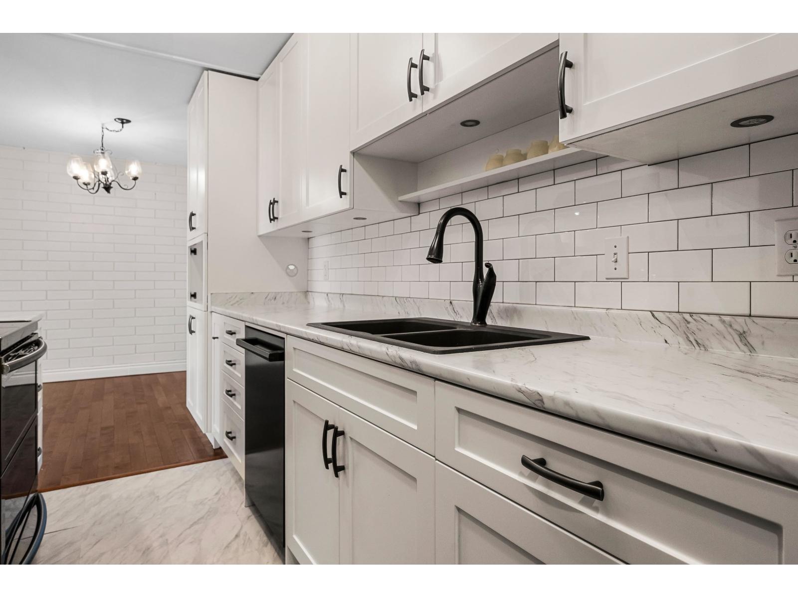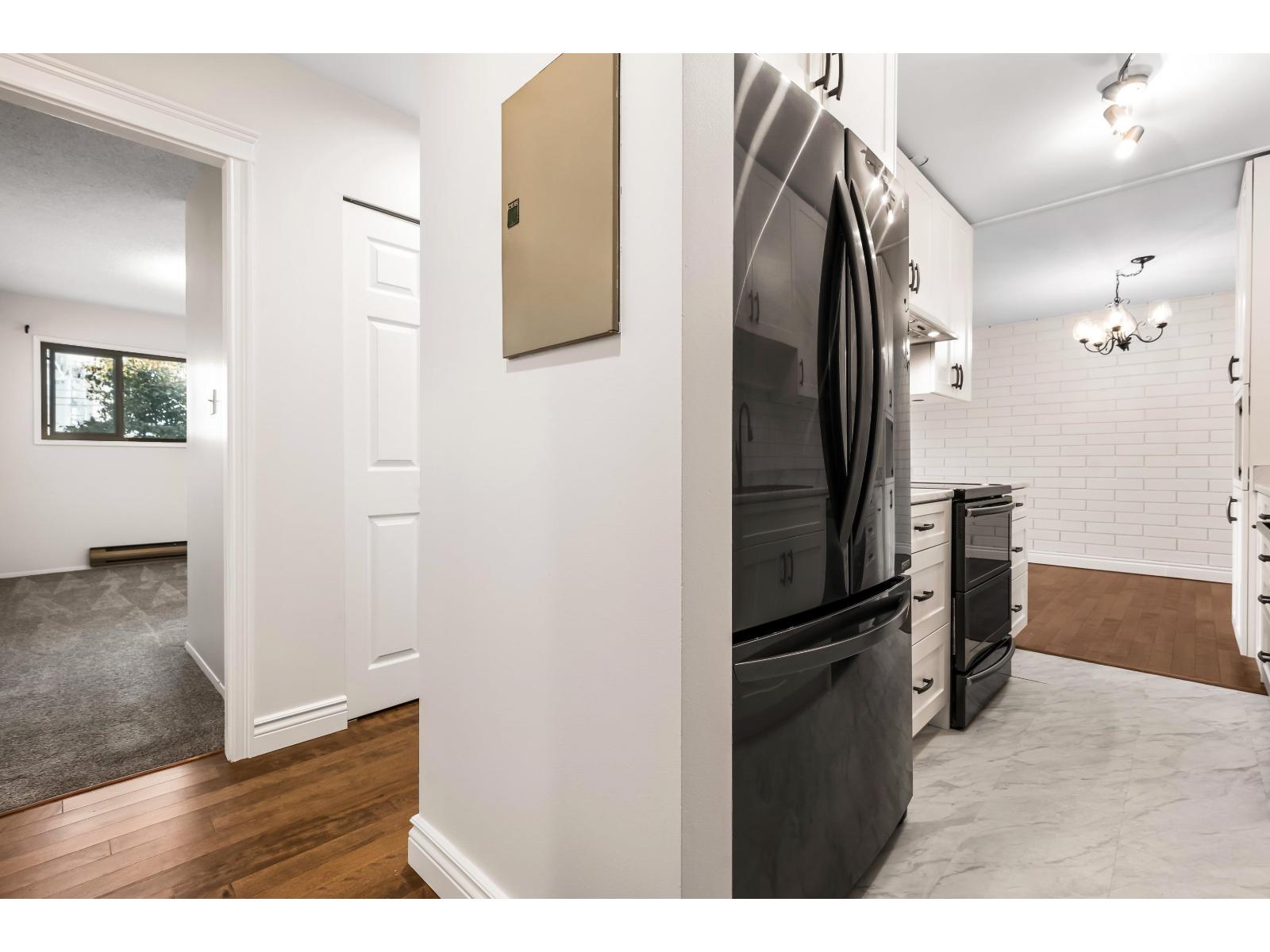 STUNNING RENOVATED 2 BEDROOM and 2 BATHROOM GROUND LEVEL with private entry. Enjoy those morning coffees and afternoon beverages with mountain views in your PRIVATE 400 SQ FT FENCED YARD/PATIO- amazing for pets and entertaining. Step inside to MODERN LIVING w/ a beautiful kitchen featuring NEWER SOFT CLOSE WHITE SHAKER CABINETS, sleek black appliances, and tiled backsplash. Lovely hardwood flooring, fresh paint, UPDATED GAS FIREPLACE for efficient heat, and IN SUITE LAUNDRY. 2 large bdrms including the primary suite w/ 2 pc ensuite and easy access to the patio! Covered parking for 1 vehicle, large storage locker in carport, & plenty of additional guest parking. TWO pets allowed, 22' at the shoulder. This incredible home is VACANT and ready for occupancy. Nothing to do but MOVE ON IN! * PREC - Personal Real Estate Corporation (32319711)