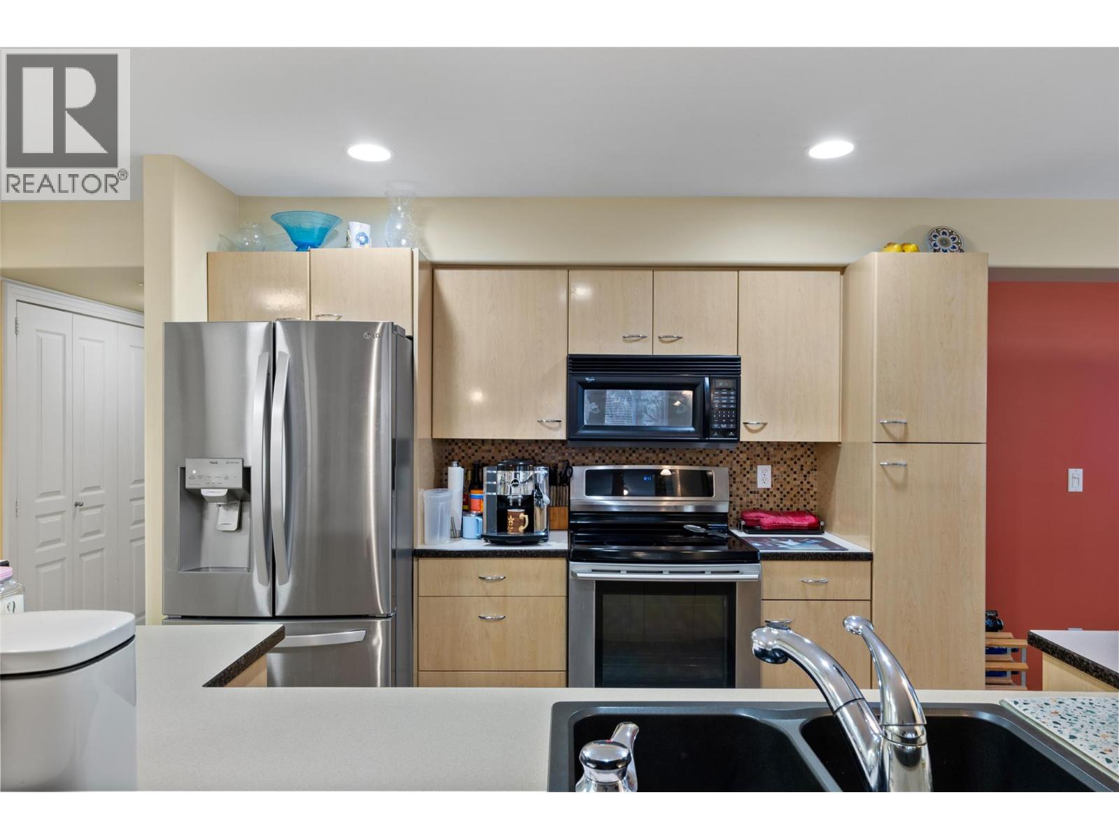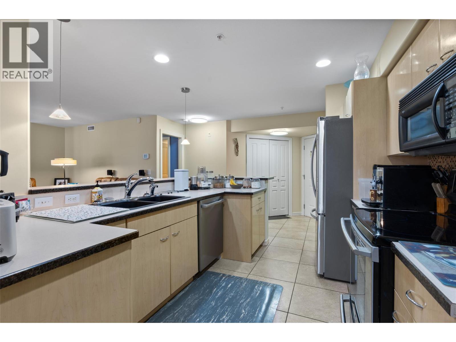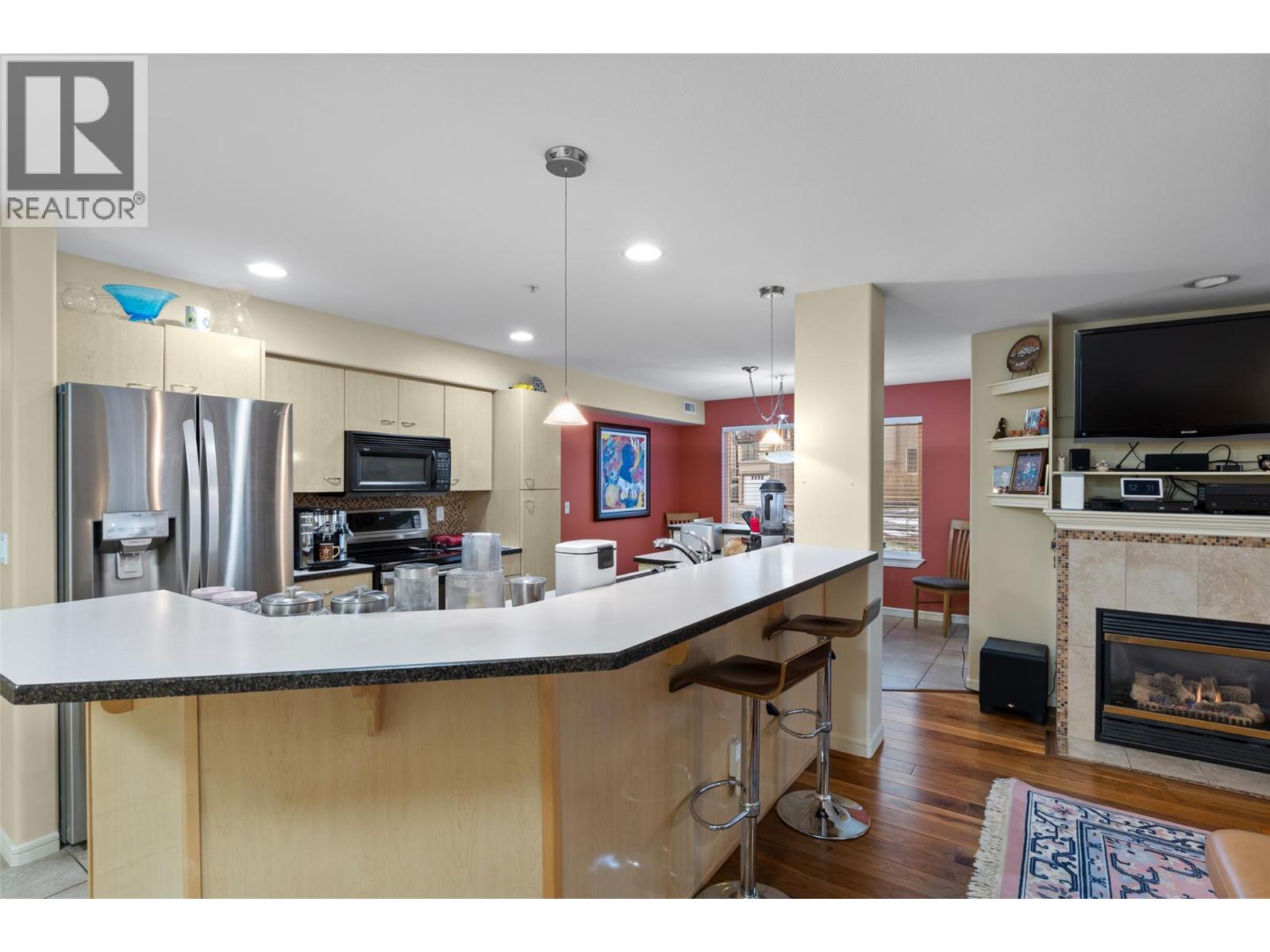 This is an outstanding ground-level corner unit with a large outdoor patio located on the river/quiet side of this excellent and well-maintained complex. 2 bedrooms plus a very useful and bright den, 2 baths including the very nice full ensuite, and loads of upgrades and updates over time, including quality engineered hardwood and tile flooring, paint, newer appliances and window coverings including quality motorized blinds/shades, and more. This complex features many amenities for owners including secure underground parking with car wash facilities, indoor pool, community room, fitness and spa facilities, hobby room, and bicycle storage. This gated community also features easy access to the Rivers Trail, a boat dock/moorage facility available on a first come-first served basis, and easy access and walkability to downtown services. Efficient geo-thermal heating and cooling make home comfort very easy and affordable as well. Flexible possession, turn-key move-in ready, and great value in a fine right-size home. All measurements approximate and should be verified if critical. Second parking stall may be available on a monthly rental basis. (39614188)
