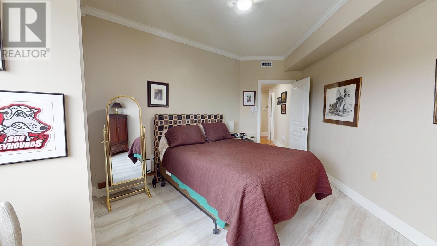 Highlighted by the most spectacular panoramic waterfront view in all of Sault Ste. Marie stretching as far as the eye can see, this 1845 sq ft Penthouse Condominium features 2-large south facing balconies, professionally redesigned open-concept living space w/ 9’ ceilings and high-quality custom finishes plus 3 spacious bedrooms with primary ensuite bath, in unit laundry, central A/C and 2 side-by-side owned parking spaces in the secure parking garage. Be sure to take the visual tour, ask your agent for the detailed feature package and book your appointment to view. This is truly a one-of-a-kind opportunity!! (29501845)