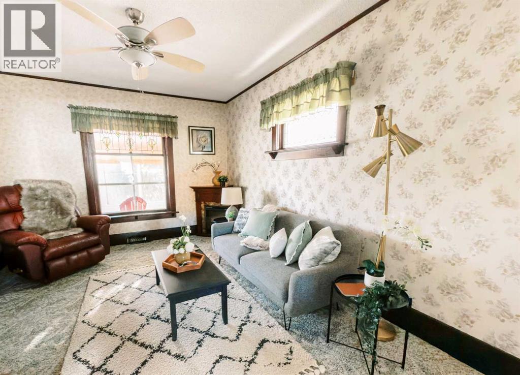 Lovingly owned and beautifully kept by the same family for approximately 80 years……Step into the timeless appeal of this character home in Big Valley—where vintage charm meets modern comfort. Filled with original details and enduring upgrades, this property offers both history and practicality.MANY major recent updates featuring brand-new siding (2025), cedar shakes (approx. 15 years old), vinyl windows, new back door (2025), a brand new 100amp electrical panel,(just prior to listing) and five of the six appliances purchased within the last five years. Additional upgrades include a high-efficiency furnace (2023), a hot water tank (approx. 2020), some new lighting , and a sewer line roto-rooted in 2025. Inside, the original woodwork and stained-glass windows showcase the craftsmanship of a bygone era, and hardwood flooring runs underneath the carpet currently in place. The enclosed front porch(with removable windows) adds to the home’s nostalgic charm, offering a cozy spot to enjoy your morning coffee while taking in the peaceful setting and open views to the golf course behind. With four bedrooms and two full bathrooms, there’s room for family and guests alike. The basement bathroom was redone in 2024 with all new fixtures, including a shower, vanity, and toilet, and most of the basement has been gutted and prepped for finishing, leaving a wide-open slate to design additional bedrooms, a family room, or recreation space.Outside, you’ll find an insulated storage shed for all your outdoor essentials, a newer tarp garage, and a back deck that’s perfect for relaxing or hosting casual get-togethers. Ideally located in a quiet spot in Big Valley, a beautiful little town filled with community pride and small-town charm, standing as a true testament to quality and pride of ownership (31519708)