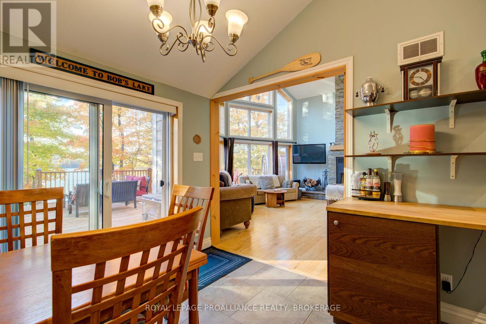 Beautiful and stunning 2 bedroom Viceroy home located on one of the most desirable lakes in our region. This home is located in Bayside Woods Cooperative, a lakeside property that has just under 5 acres of common land and 1100 feet of beautiful southwest facing shoreline. This home sits on an ICF poured concrete foundation and has access to the side yard through a double door that also allows for storage of yard equipment and perhaps some water toys. There is a finished recreation room with an electric fireplace, workshop and utility area. The main level of this home has an eat-in style kitchen, a laundry room, an inviting living room with cathedral ceilings, wood burning fireplace and floor to ceiling windows looking out over the lake. There are two bedrooms, 3pc. ensuite bathroom, another full 4pc. bathroom and stairs to the loft area. This area is currently set up as a sleeping area for extra family but could also be an amazing home office. The large cedar deck overlooks the land that has a slight slope down to the clear, inviting waters of Bobs Lake with a beach area that gradually gets into deeper water. There is a large storage shed and plenty of space for outdoor activities. The house is serviced by a septic system and drilled well and has fibre optic internet. The coop offers a convenient boat ramp and a storage building as well as a common dock. There are 14 owners of this cooperative property, who all take pride in their homes/cottages and the land that surrounds them. Bobs Lake is one of the largest lakes in our area stretching 19 kms long with many islands, bays and inlets to explore, fish and enjoy. Discover what this hidden gem has to offer and dive into cottage life on this stunning Canadian Shield setting. Annual fees (approx. $3522 for 2024) include common area hydro, docks, all maintenance and taxes. Hydro and road fees are in addition to these fees. (41931145)