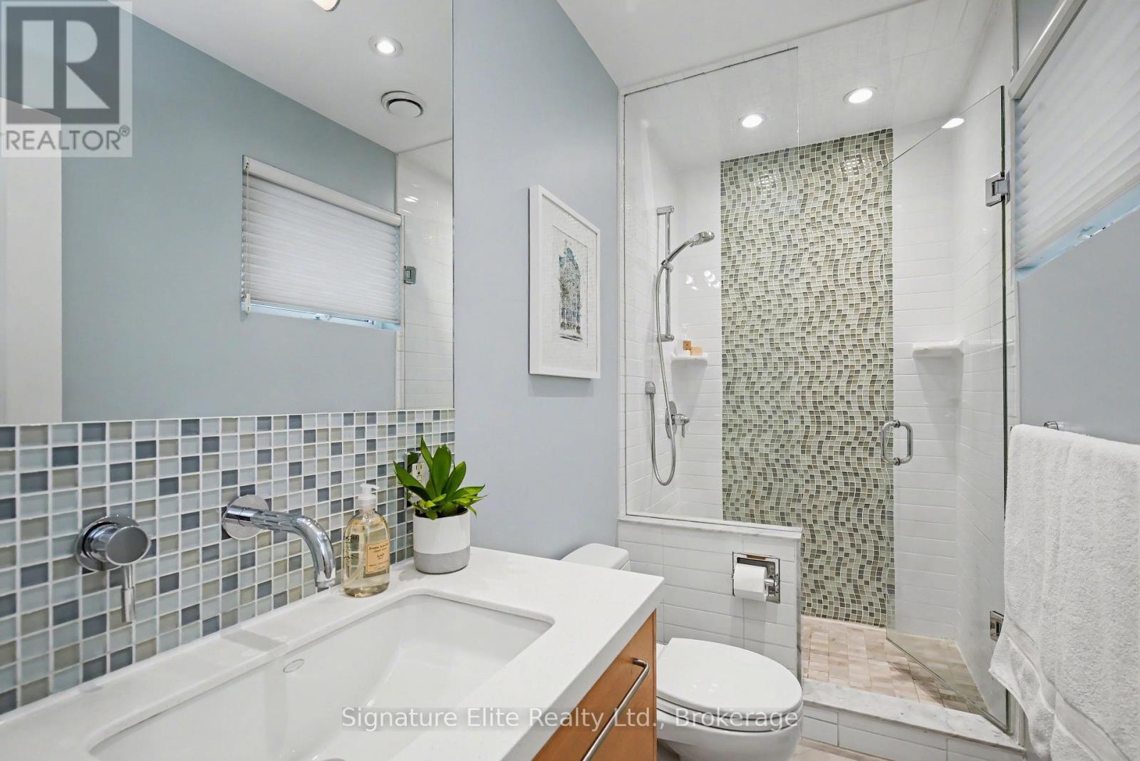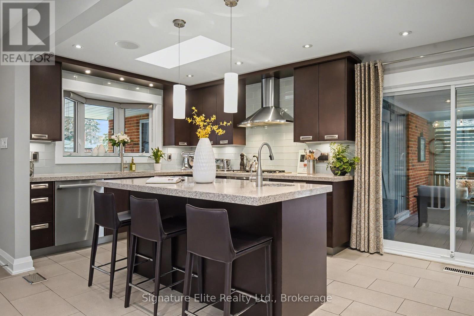 Gorgeous in Guildwood - A Standout home in One of Toronto's Most Sought-After Lakeside Neighbourhoods. This beautifully maintained home offers an exceptional blend of location, comfort, and long-term value. Quiet, established streets, excellent schools, and seamless commuter access make this a neighbourhood a true gem. Thoughtfully designed, with large windows and three skylights filling the space with natural light. The main living areas feature a gas fireplace and an elegant box-beam ceiling in the dining room, creating a warm, refined atmosphere. The eat-in kitchen offers a large centre island, quartz countertops, and a walkout to a covered PVC low-maintenance composite deck and stone patio, ideal for everyday living and entertaining in any weather. Three bedrooms complete the main floor, including a primary suite with a 3pc ensuite, plus an additional full bath with a deep soaker tub. The fully finished basement adds valuable living space with a family room, home office, two additional bedrooms, a 3pc bathroom, separate laundry room, and ample storage. Recent updates include new carpeting in the basement and spare bedrooms, along with heated floors in both upstairs bathrooms. All interior walls and doors are sound-insulated, reflecting quality construction. Outdoor features include a barn-door entrance from the deck to the garage, a covered front porch, pot lighting in the soffits, a 2-car garage, and a wide private driveway with ample parking. The beautifully landscaped lot offers mature trees, landscape lighting, a fully fenced backyard, and a vinyl-sided shed with power and lighting for added storage or workspace. Walk to Guildwood GO, minutes to Highway 401, close to Kingston Road shopping and dining, and steps to parks, schools, and the waterfront, this home delivers on lifestyle and livability. More than a home - it's a rare opportunity to enjoy lakeside living, sun-filled spaces, and effortless commuting in one of Guildwood's most cherished communities. (41931183)