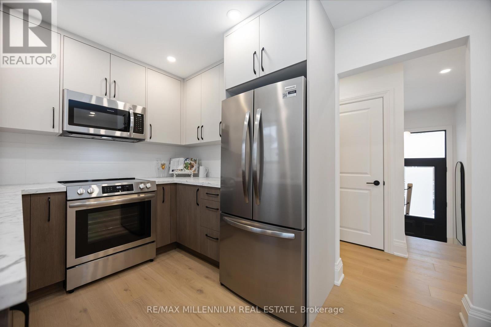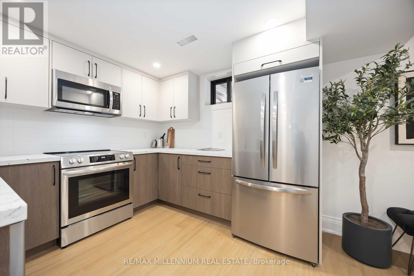 FULLY UPGRADED 3+2 bedroom home offering exceptional versatility and income potential, featuring two full bathrooms, two kitchens, and two separate laundry areas-ideal for extended family or a self-contained rental or in-law suite.The main floor features 3 bedrooms and a 4-piece bath, while the finished basement offers 2 additional bedrooms and a 3-piece bath with a walk-up separate entrance. Both kitchens are fully equipped with stainless steel appliances, including 2 fridges, 2 stoves, 2 over-the-range microwaves, and 2 dishwashers (one custom-panelled, one stainless), along with 2 washers and 2 dryers for added convenience.This home has been extensively renovated inside and out, including newer sleek black windows, doors, and garage door, sleek black updated soffits, eavestroughs and downspouts, electrical, plumbing, insulation, fencing, and deck also updated. Exterior upgrades include a new concrete main entrance landing, asphalt driveway, 6x6 retaining wall, and custom garden planter boxes.Interior highlights include a custom oak staircase, wide-plank white oak hardwood flooring throughout the main floor, luxury vinyl flooring in the basement, 7" baseboards, updated window and door casings, all new interior doors, and custom cabinetry in both kitchens, bathrooms, and laundry areas. Additional features include pot lights, updated interior and exterior lighting, fresh paint throughout, Nest thermostat, furnace, A/C, and hot water tank.Enjoy a walkout from the main-floor bedroom to the deck via new patio doors, plus a fully separate basement walk up entrance-making this home move in ready. (41931267)