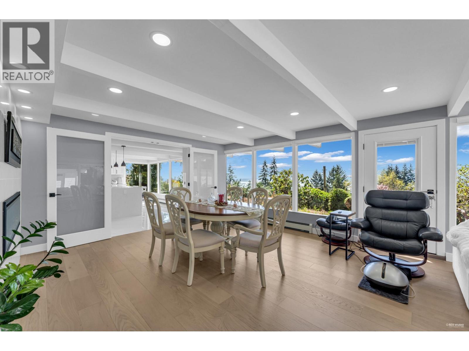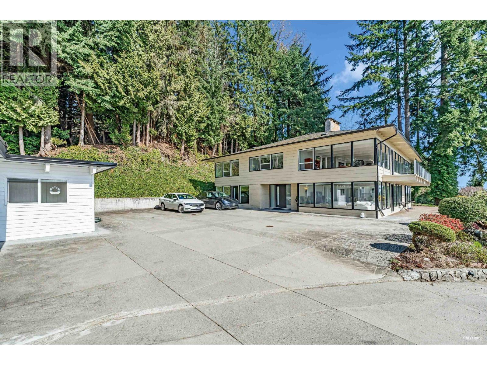 Experience breathtaking panoramic ocean and city views from this private estate, perfectly situated at the end of a quiet cul-de-sac. This completely renovated, custom built Lewis Post & Beam home is designed to maximize natural light with expansive windows on both levels framing unobstructed views. The main level features a grand formal living and dining room, kitchen, spacious recreation room, and executive style office. Upstairs boasts an exceptionally large family room and four well proportioned bedrooms for ideal family living. A private entry space with full kitchen offers potential as a self contained studio, while a fully separate one bedroom suite serves as a valuable mortgage helper. Plenty of parkings. Close to prestigious Collingwood School. A rare opportunity! (32321106)