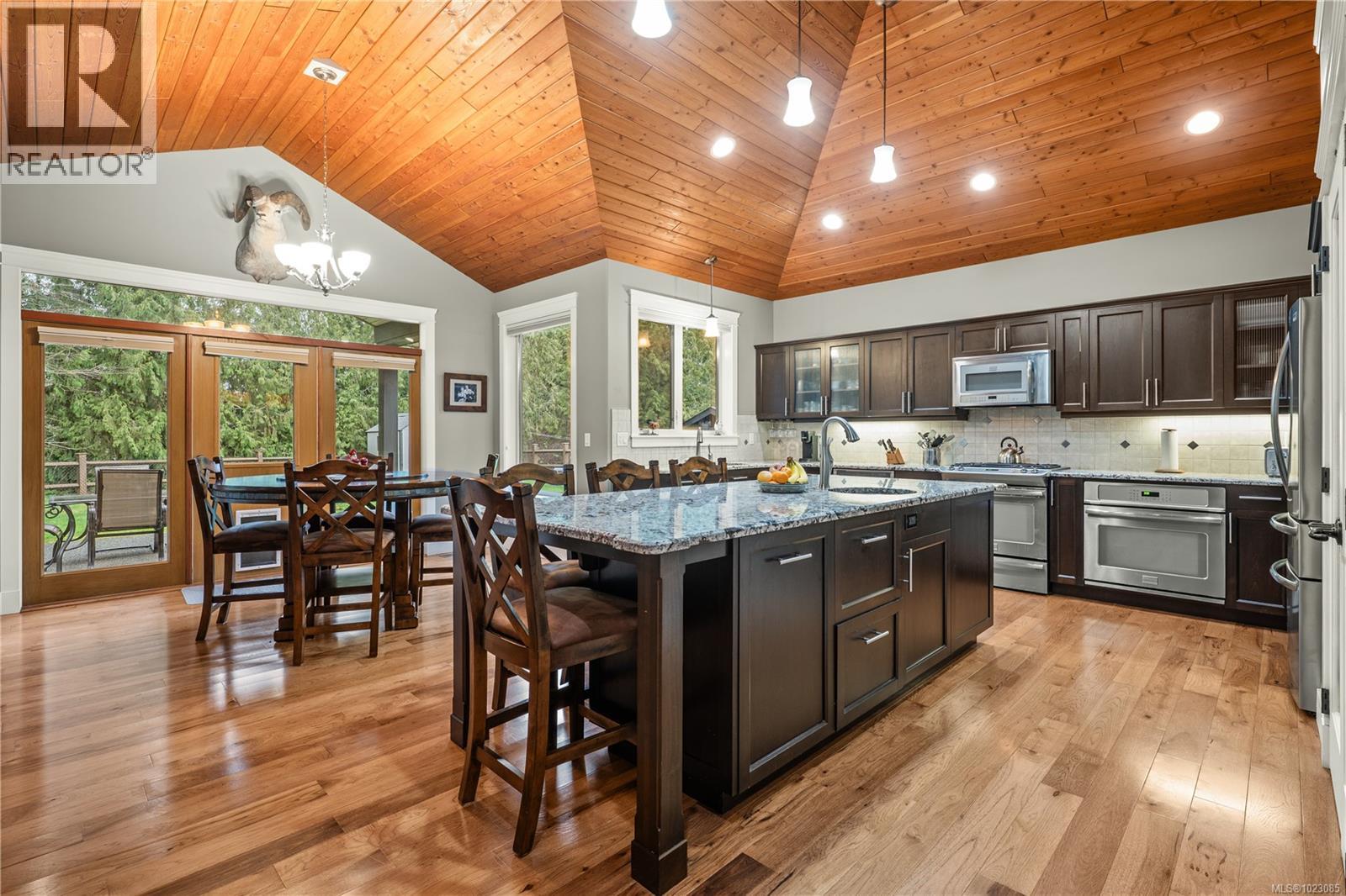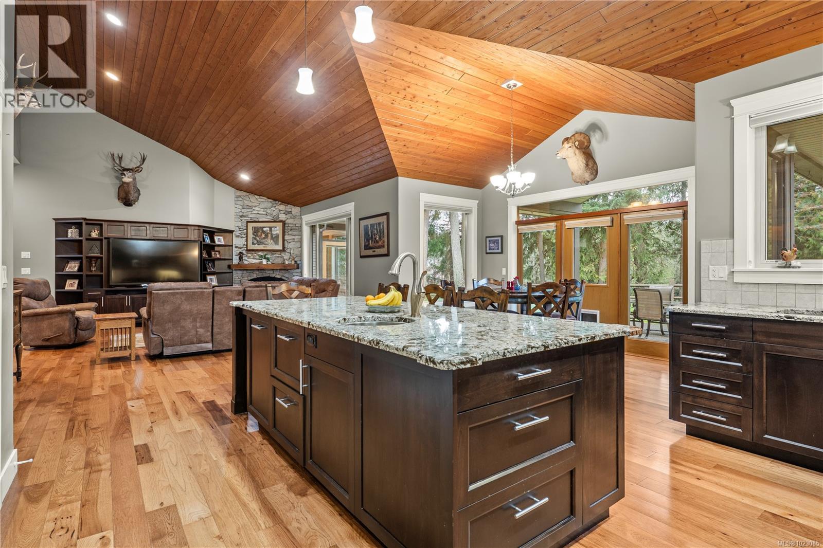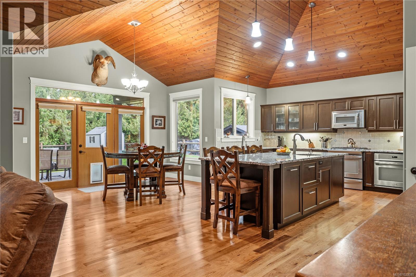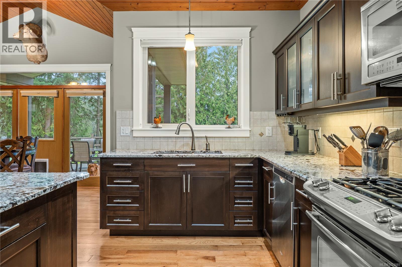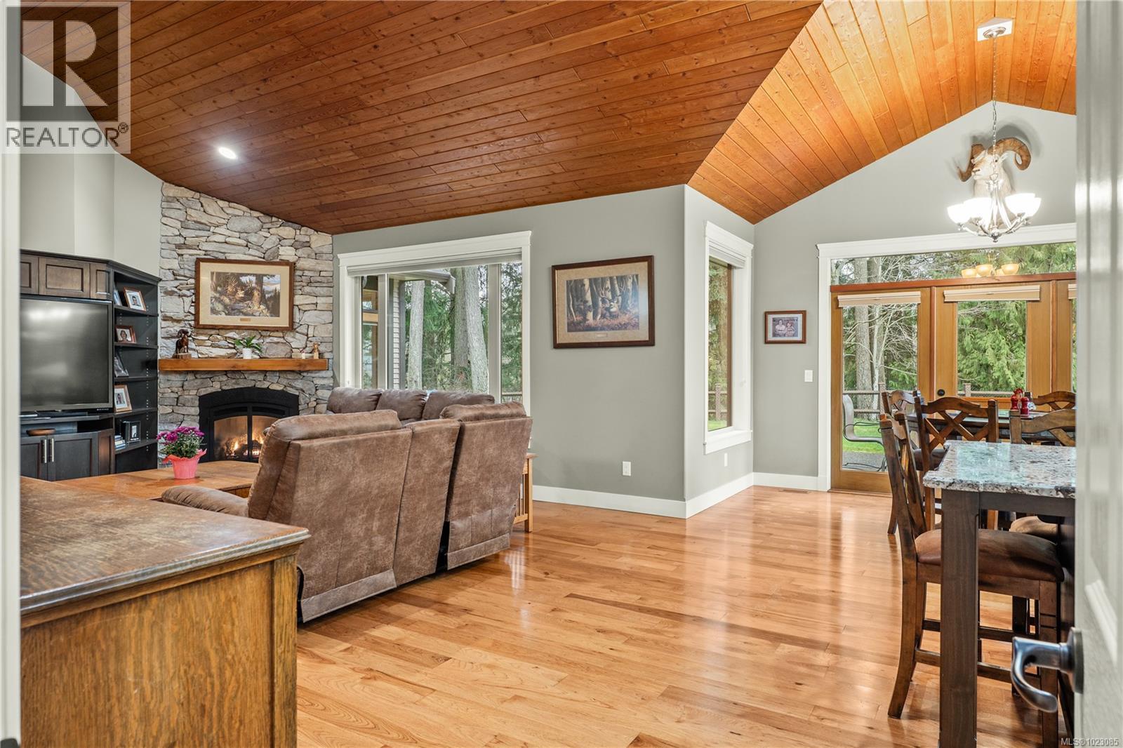 Tucked away in a quiet Nanaimo cul-de-sac, this well maintained 2011 custom-built rancher offers space, privacy, and comfort on a 0.83-acre lot. Vaulted wood ceilings and warm wood flooring highlight the open-concept living area, complete with a cozy gas fireplace ideal for both everyday living and entertaining. The spacious kitchen features granite countertops, double wall ovens, a large pantry, and an extra-long island that anchors the space and makes hosting effortless. Central heating and air conditioning provide year-round comfort. The generous primary bedroom offers a large walk-in closet and a well-appointed ensuite with a two-person soaker tub. With three bedrooms, three bathrooms, and a versatile den, there’s plenty of flexibility for families, guests, or a home office. The large backyard backs onto a lake, enhancing the peaceful setting, while the location remains close to a café, pub, restaurant, and grocery store, offering convenience without sacrificing privacy. (30265769)
