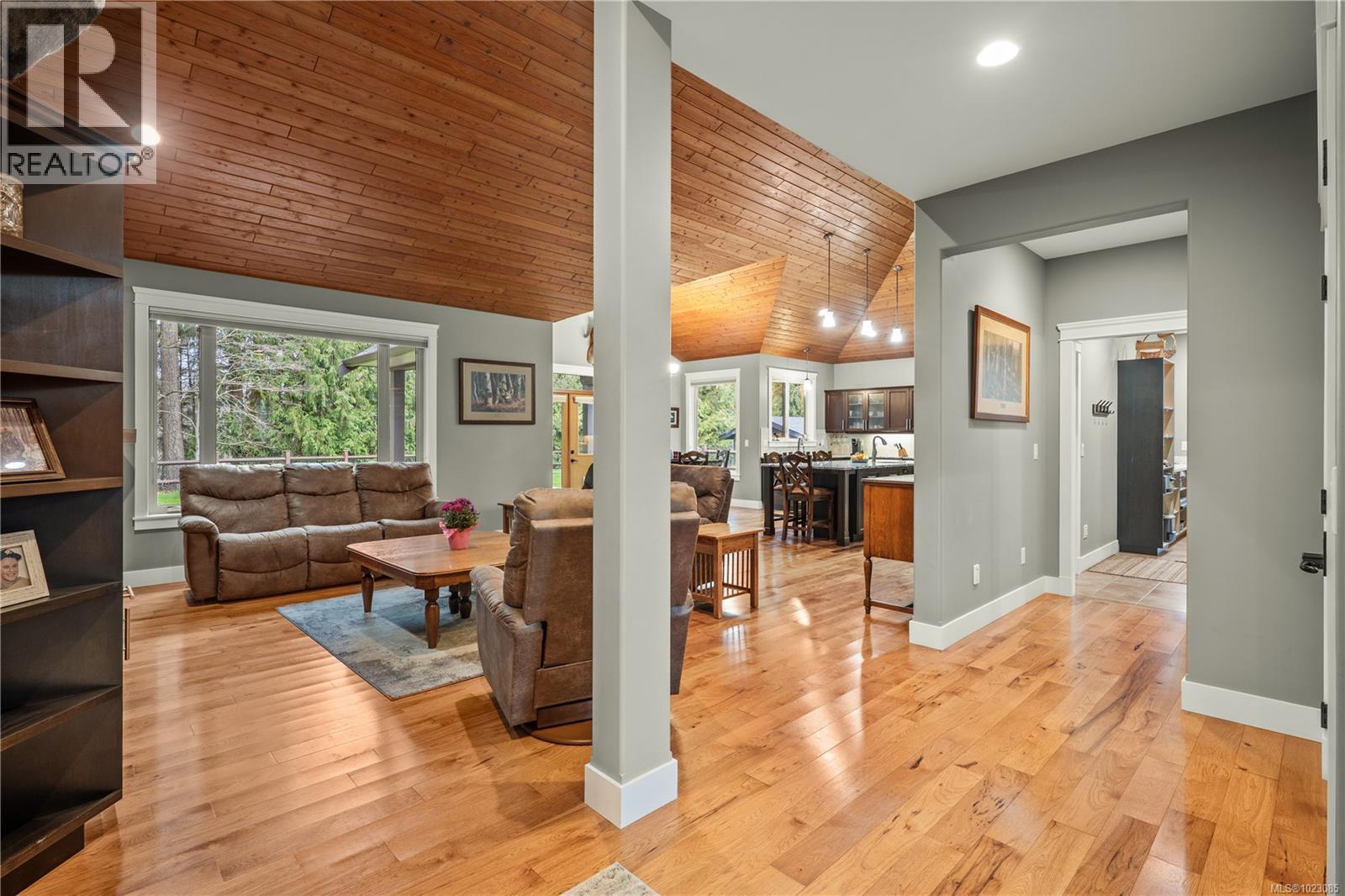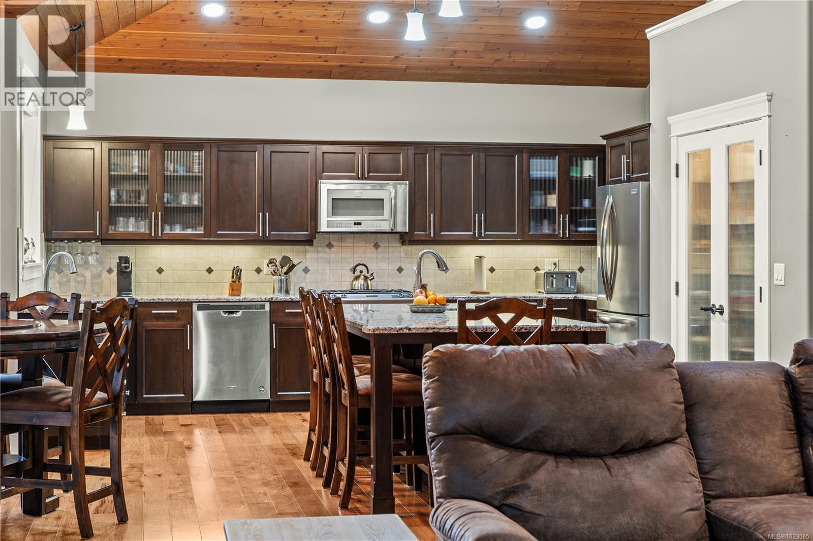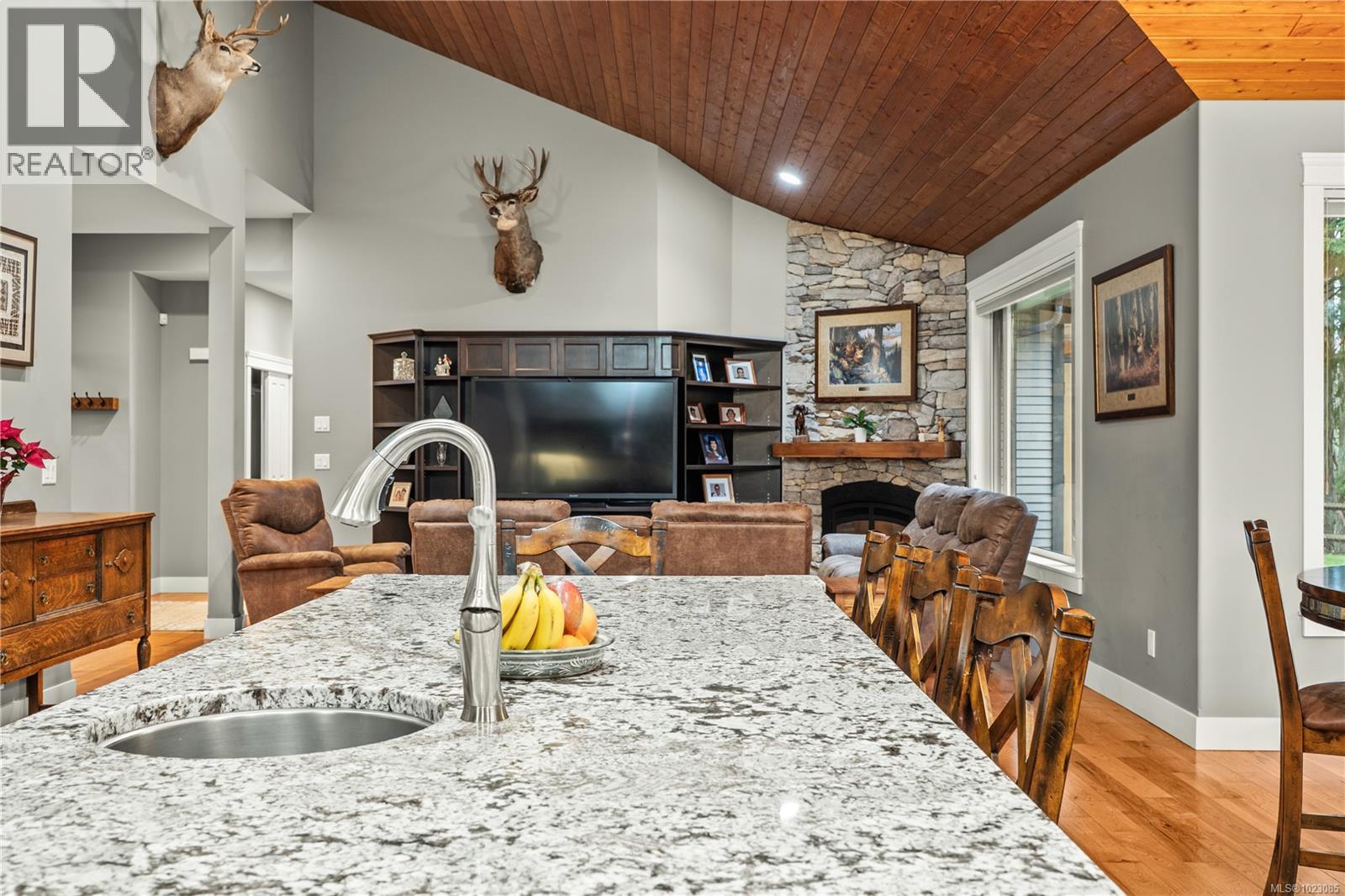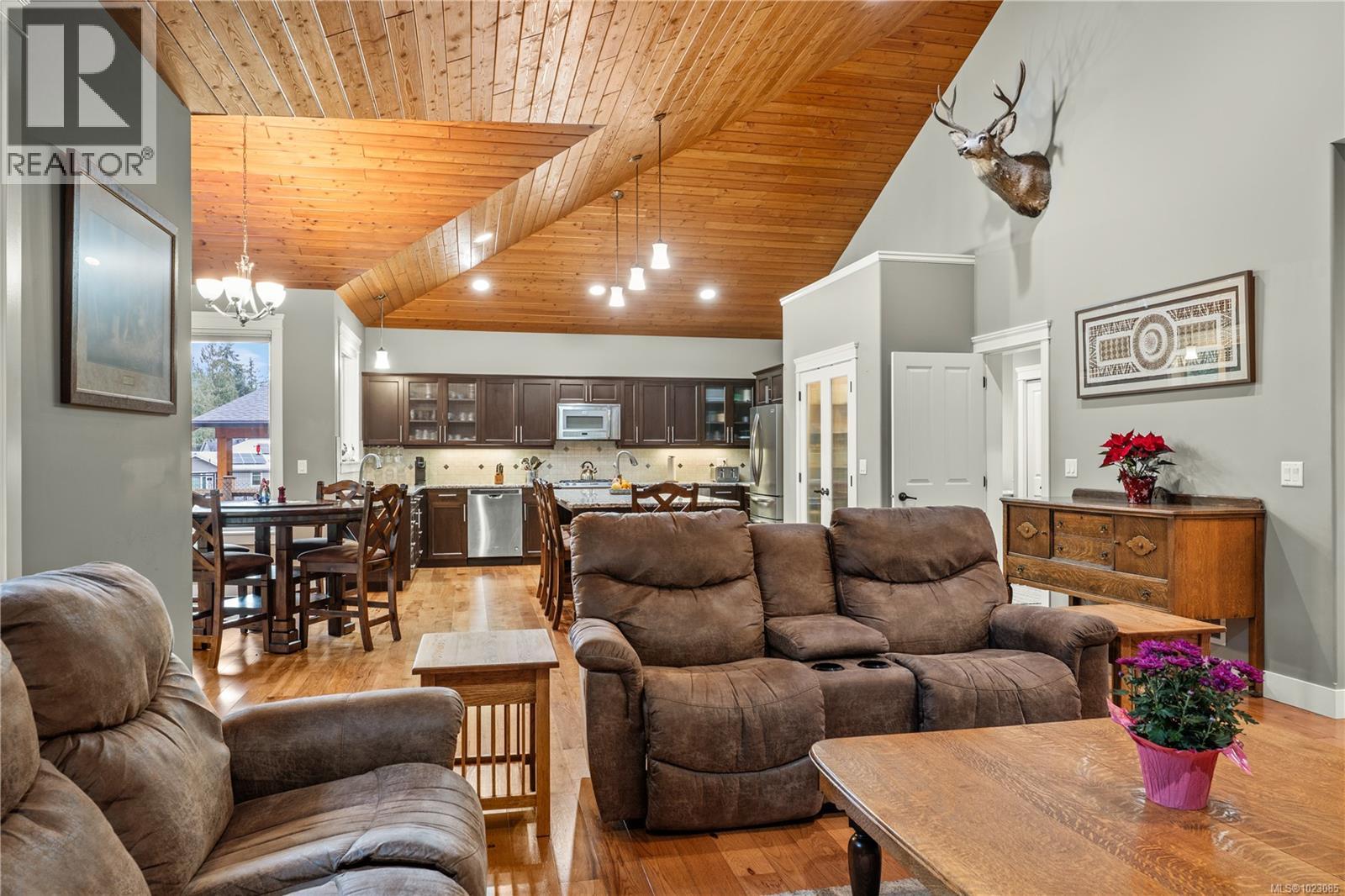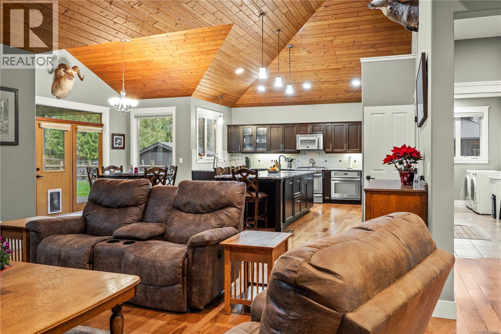 Tucked away in a quiet Nanaimo cul-de-sac, this well maintained 2011 custom-built rancher offers space, privacy, and comfort on a 0.83-acre lot. Vaulted wood ceilings and warm wood flooring highlight the open-concept living area, complete with a cozy gas fireplace ideal for both everyday living and entertaining. The spacious kitchen features granite countertops, double wall ovens, a large pantry, and an extra-long island that anchors the space and makes hosting effortless. Central heating and air conditioning provide year-round comfort. The generous primary bedroom offers a large walk-in closet and a well-appointed ensuite with a two-person soaker tub. With three bedrooms, three bathrooms, and a versatile den, there’s plenty of flexibility for families, guests, or a home office. The large backyard backs onto a lake, enhancing the peaceful setting, while the location remains close to a café, pub, restaurant, and grocery store, offering convenience without sacrificing privacy. (30265769)