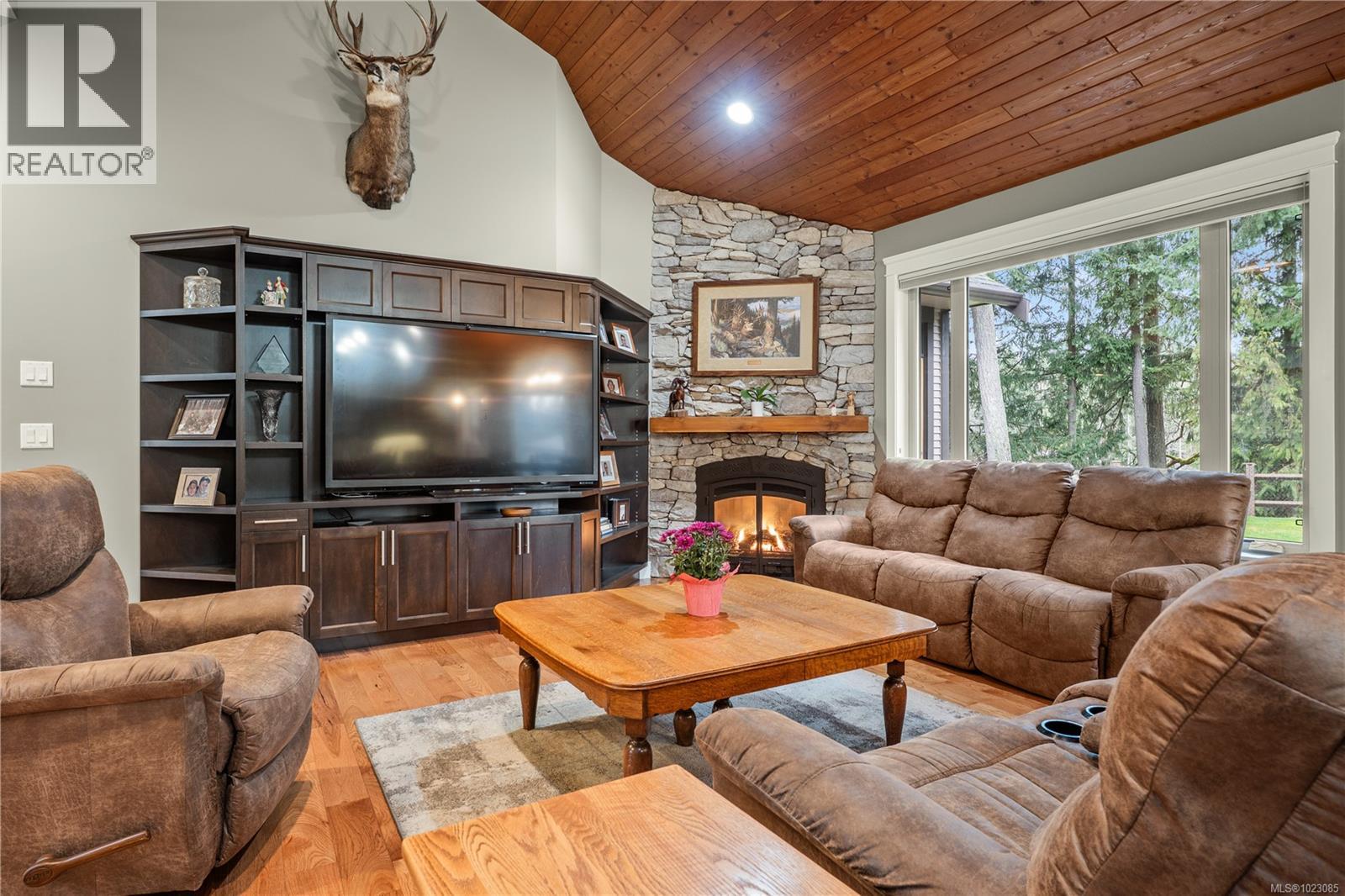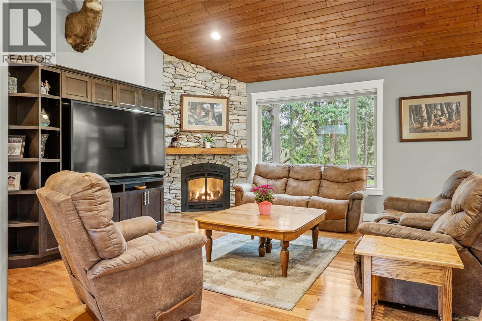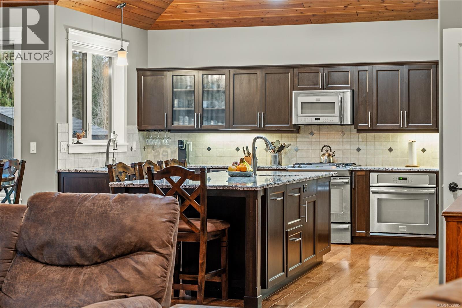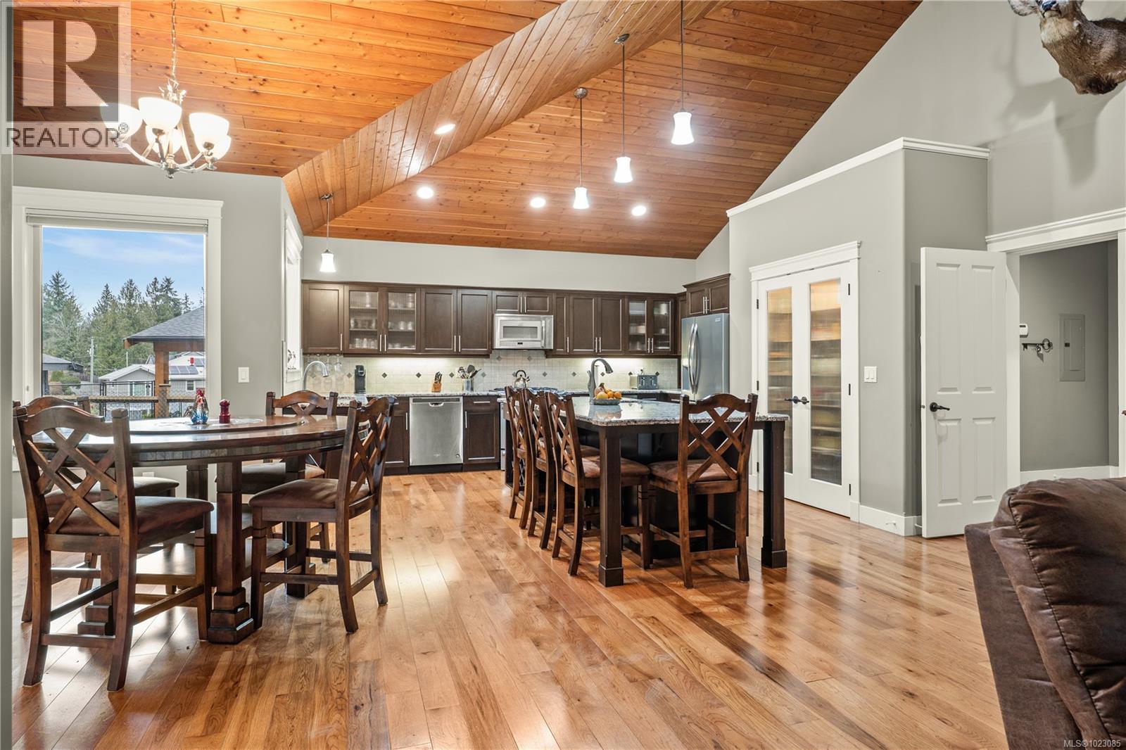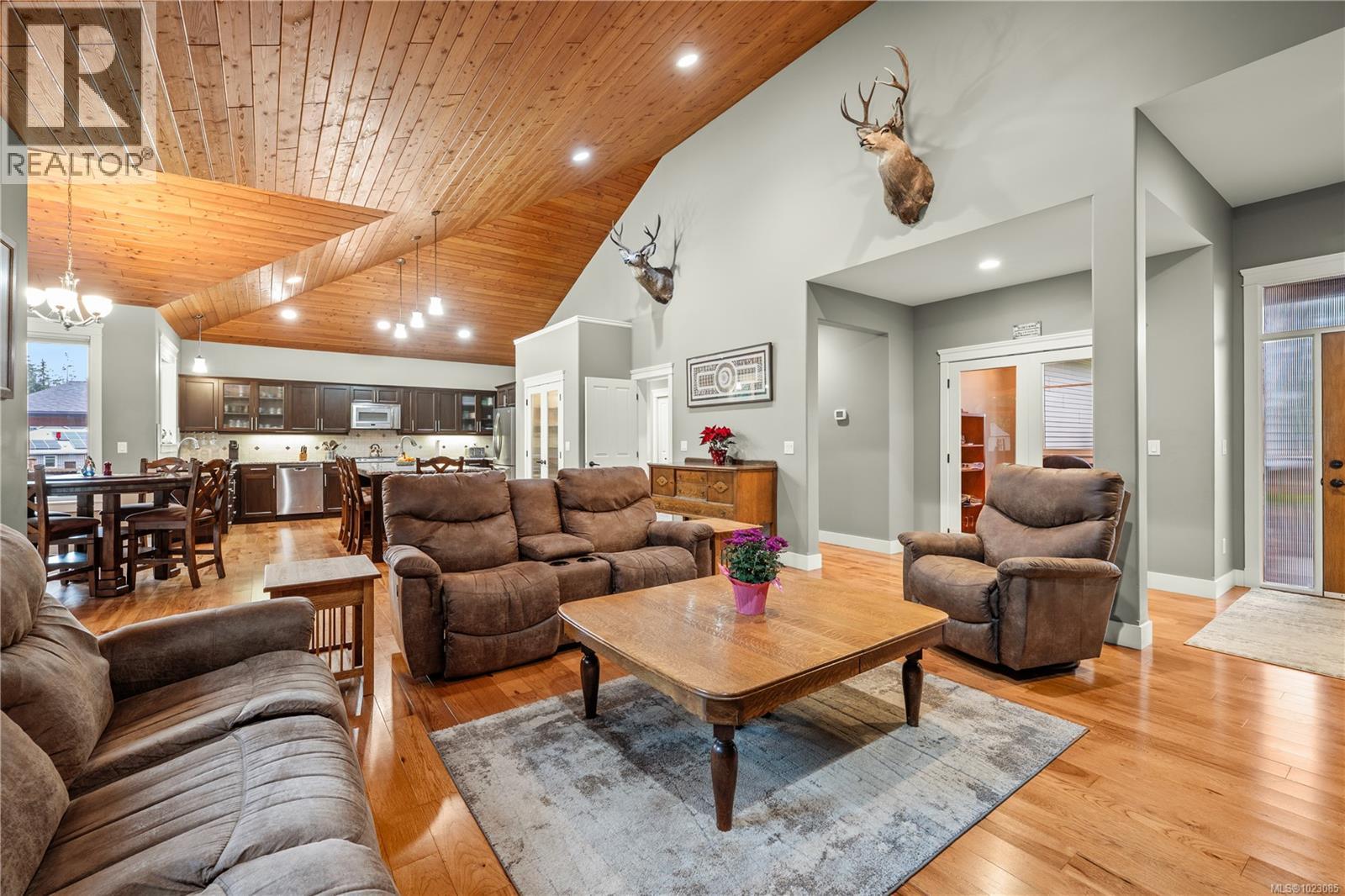 Tucked away in a quiet Nanaimo cul-de-sac, this well maintained 2011 custom-built rancher offers space, privacy, and comfort on a 0.83-acre lot. Vaulted wood ceilings and warm wood flooring highlight the open-concept living area, complete with a cozy gas fireplace ideal for both everyday living and entertaining. The spacious kitchen features granite countertops, double wall ovens, a large pantry, and an extra-long island that anchors the space and makes hosting effortless. Central heating and air conditioning provide year-round comfort. The generous primary bedroom offers a large walk-in closet and a well-appointed ensuite with a two-person soaker tub. With three bedrooms, three bathrooms, and a versatile den, there’s plenty of flexibility for families, guests, or a home office. The large backyard backs onto a lake, enhancing the peaceful setting, while the location remains close to a café, pub, restaurant, and grocery store, offering convenience without sacrificing privacy. (30265769)