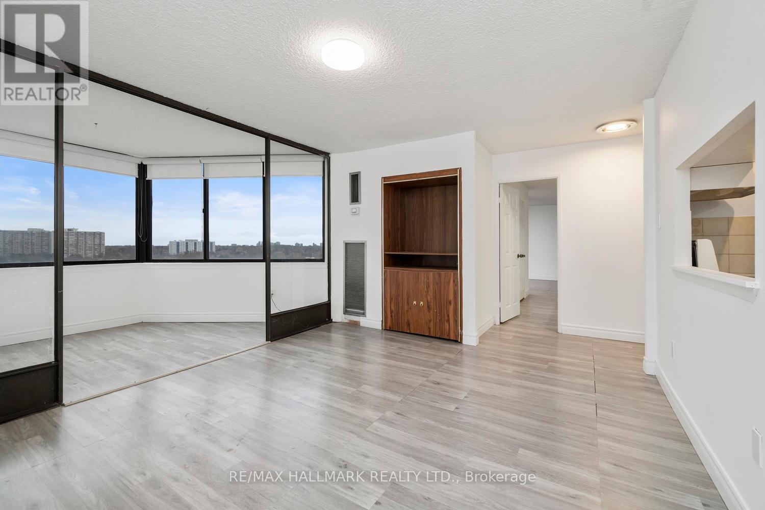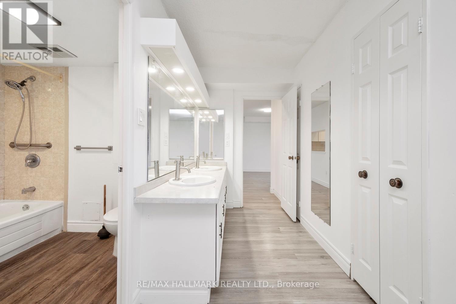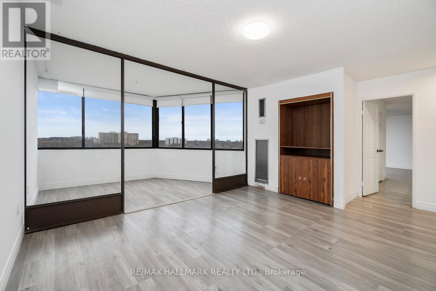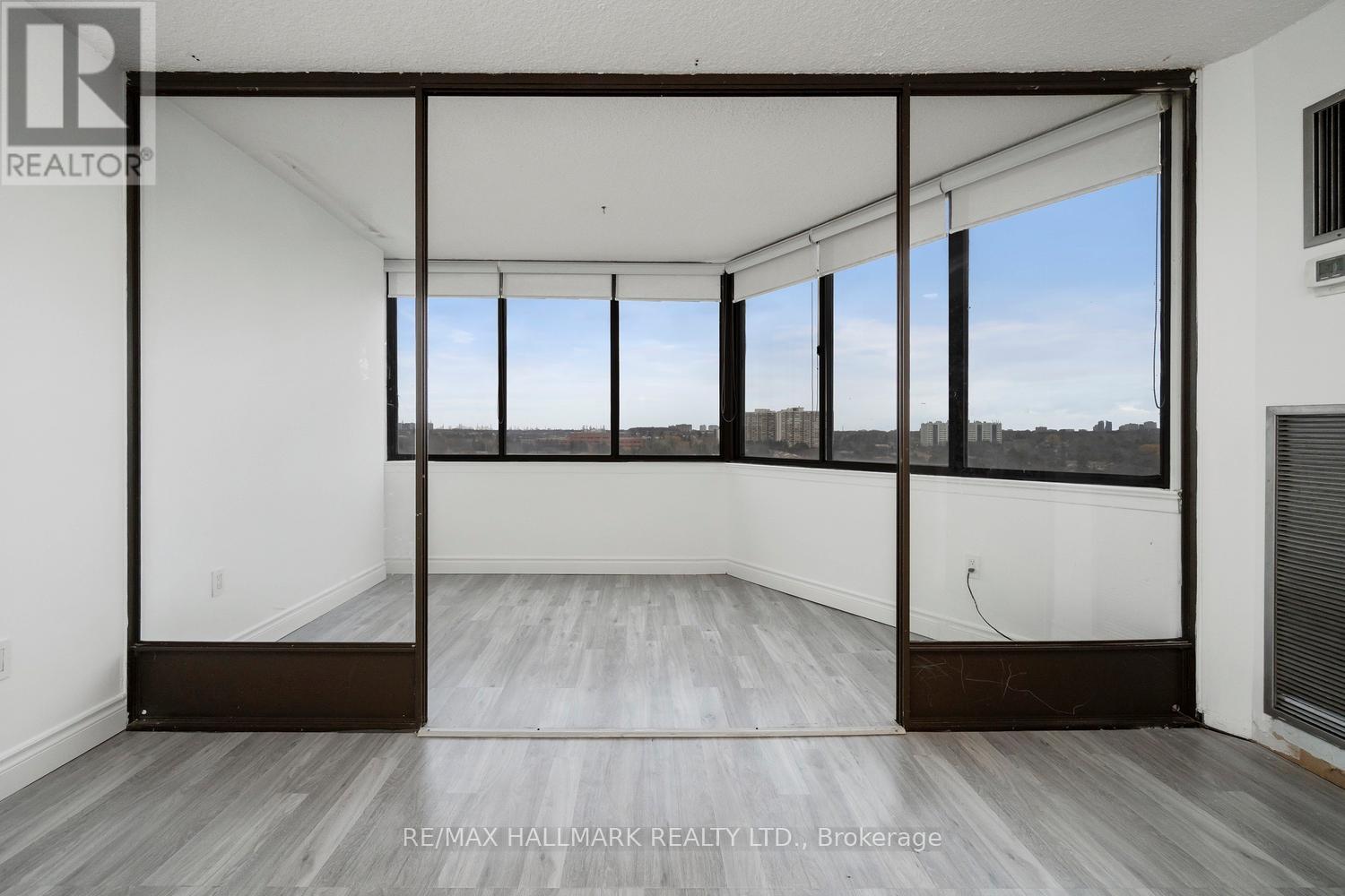 It's rare to find a unit in today's market that offers such an exceptional layout and generous living space. The highly sought-after split two-bedroom design provides ideal privacy, with each bedroom featuring its own dedicated bathroom. This is far from a cookie-cutter home-space abounds throughout.Enjoy an expansive living and dining area, complemented by a separate family room with a built-in TV unit and an inviting solarium. The spacious primary suite is truly unique, offering two walk-in closets, dual sinks, and a thoughtfully designed layout perfect for comfort and functionality.The formal kitchen features a convenient pass-through, making it ideal for entertaining-host dinner with friends, close the kitchen door, and unwind in the sunken living room with a nightcap. Floor-to-ceiling windows wrap the unit, filling the space with natural light and offering fantastic city views, along with a charming balcony to enjoy the outdoors.Beautiful laminate flooring runs throughout, with abundant closet and storage space, plus a locker and parking included. The building delivers resort-style amenities including indoor and outdoor pools, a fully equipped gym, golf range, racquet sports, 24-hour security, and more.Unbeatable location with easy access to Highway 404, Fairview Mall, Scarborough Town Centre, and a great selection of nearby shops and restaurants. This truly one-of-a-kind unit must be seen to be appreciated! (41931646)