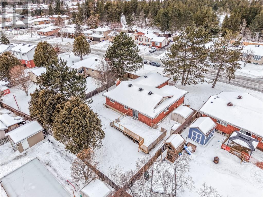 Welcome to this beautifully updated brick bungalow offering 3+1 bedrooms, a bonus office or hobby room, 2 bathrooms, and a relaxing sauna—perfect for families or those who love extra space. The main level features a clean, updated kitchen with a new countertop and faucet, as well as a patio door leading to a large, reinforced deck designed to accommodate a hot tub. A dining area and a gorgeous sunken living room with a large picture window provide an abundance of natural light and a welcoming atmosphere. The main floor also includes three well-sized bedrooms, all with bright windows and closet space, a conveniently located laundry room, and a full bathroom. With convenient main floor access from the attached 18x24 garage, you'll never have to fight the weather while bringing in groceries ever again! The lower level expands your living space with an additional bedroom, a bonus room ideal for a home office or hobby room, a spacious recreation room with a cozy gas fireplace, a second bathroom complete with sauna, workshop/utility room, and plenty of storage. Outside, enjoy a large fenced yard surrounded by mature trees for added privacy, offering ample room for a future pool, a swing set for the kids, and enough space for gardens. Two handy sheds provide storage for landscaping tools, bikes, or seasonal items. This move-in-ready home has undergone numerous updates, including a new roof (2025), a brand-new electrical panel (2025), a new hot water tank (rental, 2025), a new patio door (2025), and updated paint & flooring throughout. Don’t miss your opportunity to own this thoughtfully maintained home in the family-oriented community of Capreol! Schedule your viewing today, and in the meantime, check out the 360-degree virtual tour here - https://my.matterport.com/show/?m=cwTxpFYyJ1A (31368938)