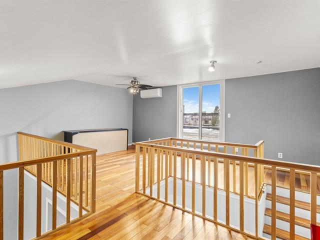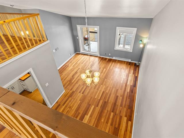 Lumineux condo répartit sur 2 étages, situé au 3e étage plus la mezzanine. Terrasse privée, orientée coté sud ouest. 2 chambres à coucher à l'étage principal. Possibilité d'aménager une chambre supplémentaire à la mezzanine. Fenêtres et portes patio changées. Thermopompe mural 2023. 2 balcons privés. 3 portes patios. 1 garage individuel. À proximité des axes routiers, commerces, écoles, pistes cyclables, parcs et transport en commun dont le REM. Il ne manque que vous! (39622866)