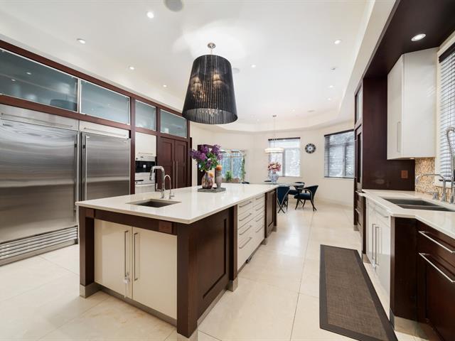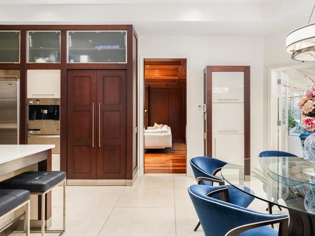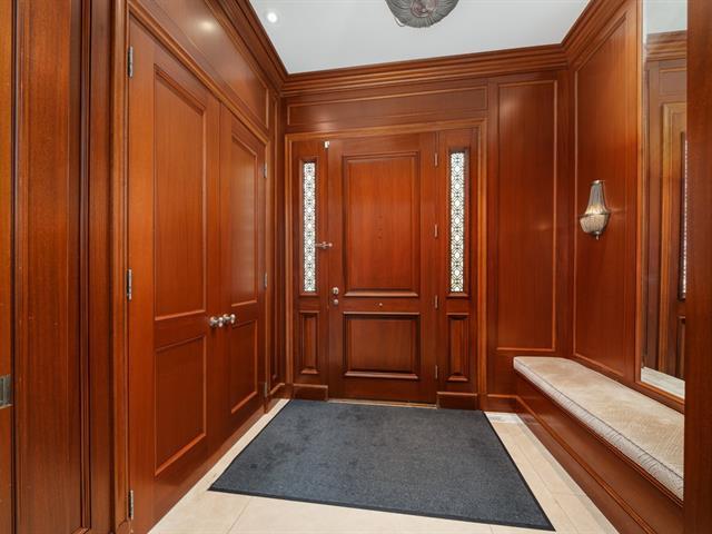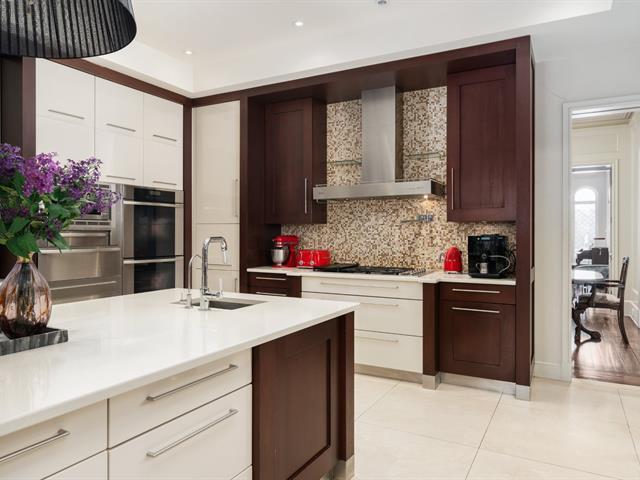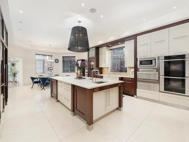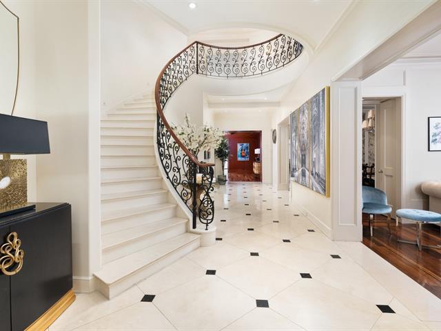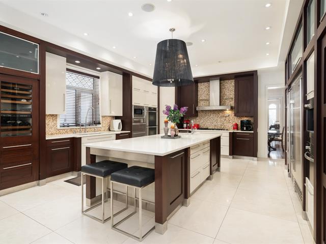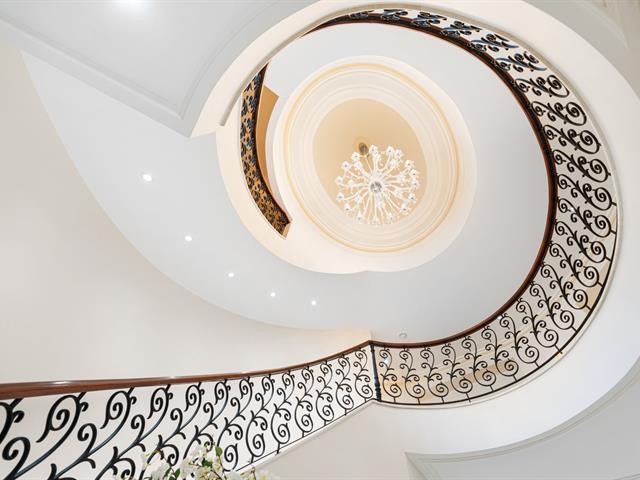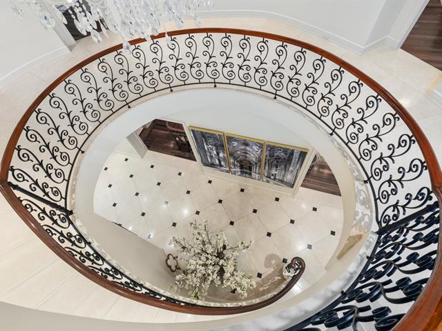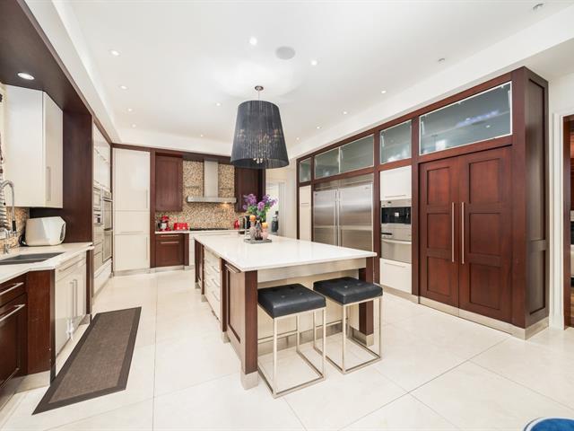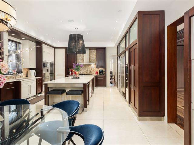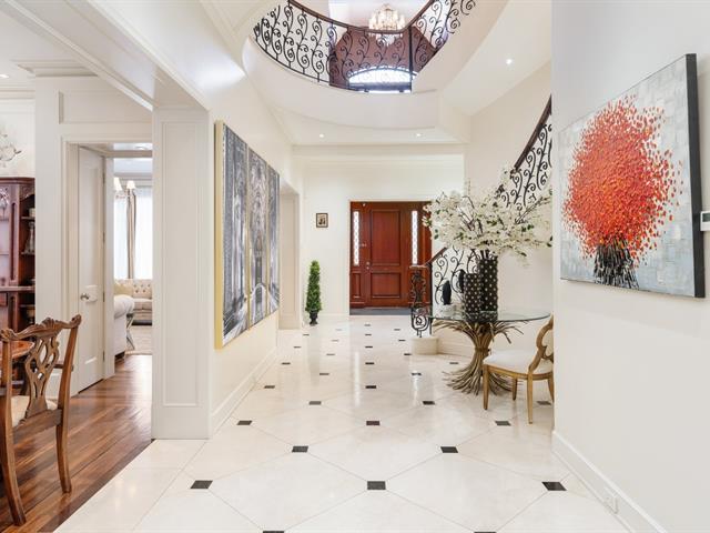 Located in prestigious Nouveau St-Laurent, this custom-built home offers 7 bedrooms, 7 bathrooms, and 2 powder rooms. A stunning stone façade, manicured lawn, private driveway for six cars, and a three-car garage with lift expansion. Grand entrance with marble floors, soaring ceilings, wrought-iron staircase, and elegant moldings. Gourmet kitchen with central island, Sub-Zero fridge, Miele appliances. Four-season solarium opens to a heated saltwater pool and BBQ. Master suite with gas fireplace, spa tub, steam sauna, Toto toilet, gym, and walk-in closet. High-end home theater, spa with massage room, sauna and exquisite cellar. A unique gem. (40234201)