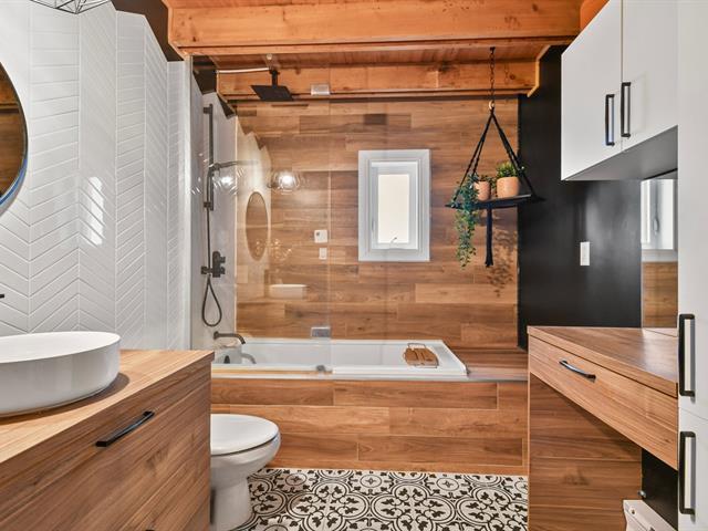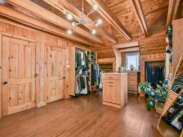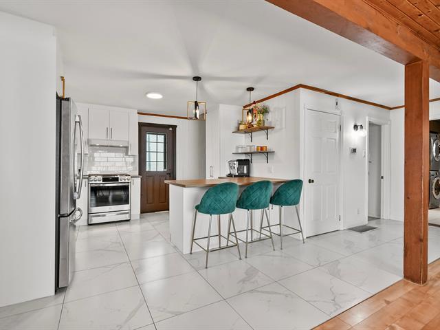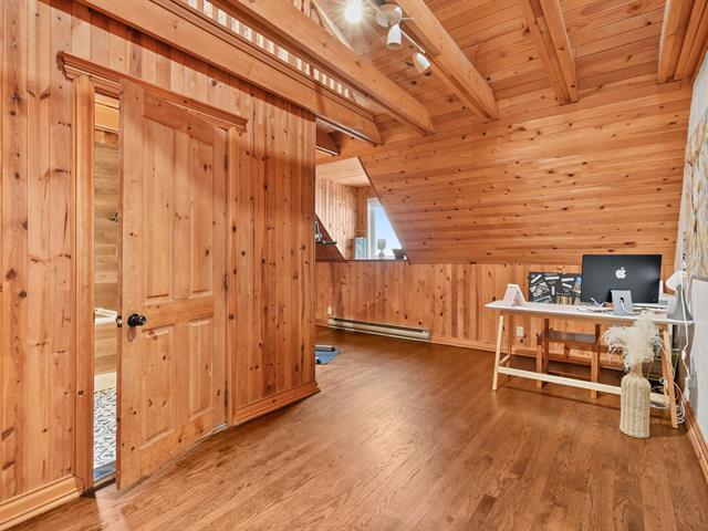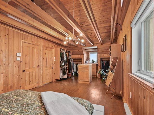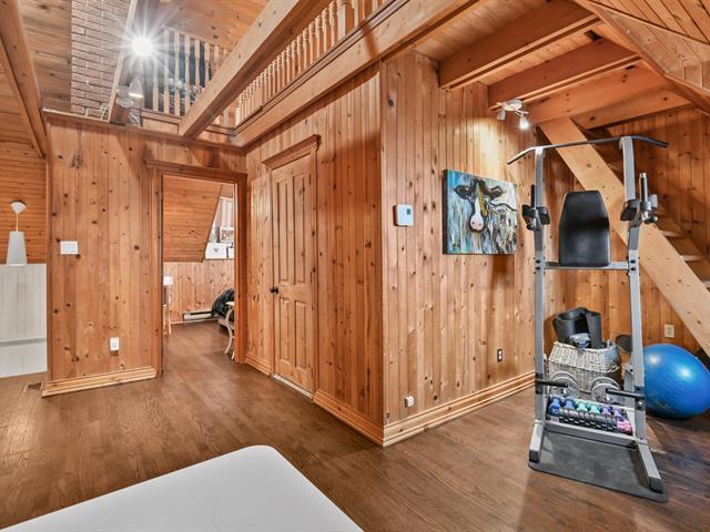 Charmante propriété offrant beaucoup de cachet et une ambiance chaleureuse grâce à ses boiseries, son foyer au salon et ses espaces polyvalents. Elle propose 3 chambres à coucher avec possibilité d'en aménager une 4e et un grand boudoir pouvant servir de bureau, salle familiale, d'entraînement ou de jeux. Le sous-sol comprend une grande salle familiale avec poêle au propane, une vaste salle de rangement/atelier, un garde-robe en cèdre ainsi qu'un accès extérieur à la cour. Possibilité d'un immense atelier au 2e étage du garage. Grande galerie extérieure et allée de stationnement pouvant accueillir 8+ véhicules ou VR. (50408024)