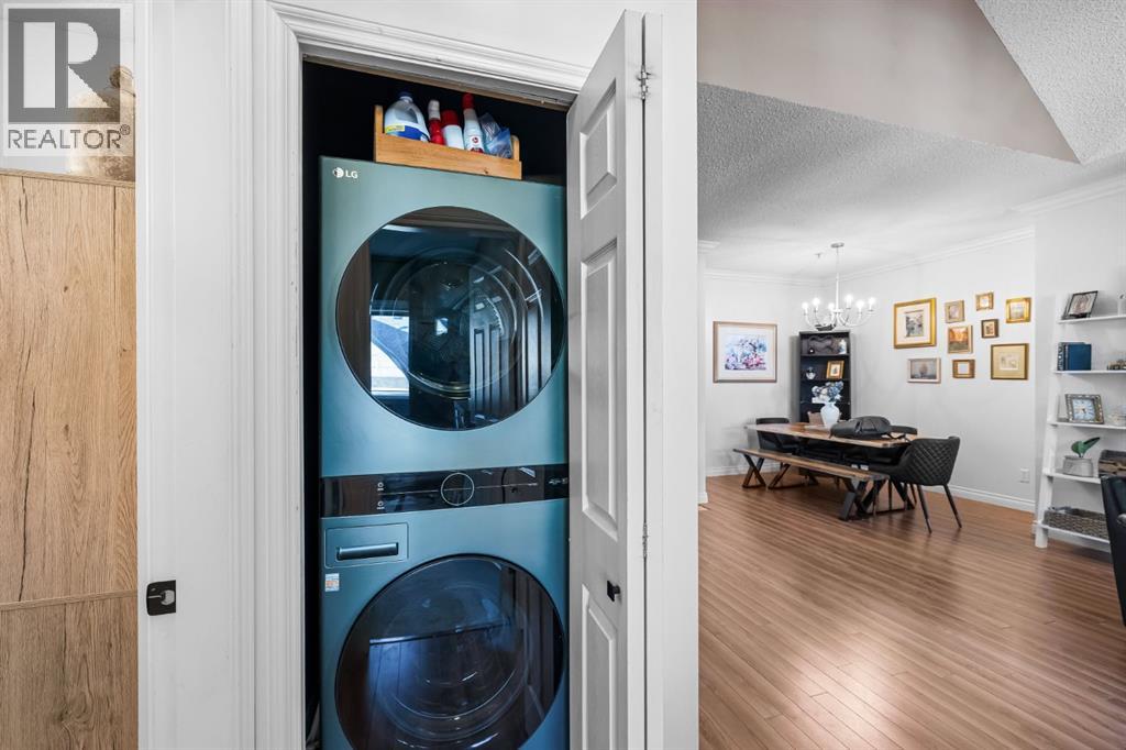 Step into this top-floor retreat in the sought-after Stonecroft building — where vaulted ceilings and large windows create an airy sense of calm from the moment you walk in. The open living space feels instantly inviting, with a cozy gas fireplace, rich tones, and newer flooring. The kitchen tells its own story — modern two-tone cabinetry, granite counters, and stainless-steel appliances including a new dishwasher and stove, that make morning coffee or evening dinners feel a little more special. Down the hall, the primary suite is your quiet escape, featuring a walk-through closet and a newly update ensuite with gold accents and a spa-inspired shower. A second bedroom offers the flexibility every lifestyle needs — whether it’s a guest space, nursery, or home office. And with in-suite laundry and new machines, underground parking with storage, and access to a fitness centre, every detail of convenience is covered. Set in a quiet, well-managed complex just steps from parks, shopping, and great access to Anderson Road and Stoney Trail, this is the perfect blend of warmth, function, and style. (31522383)