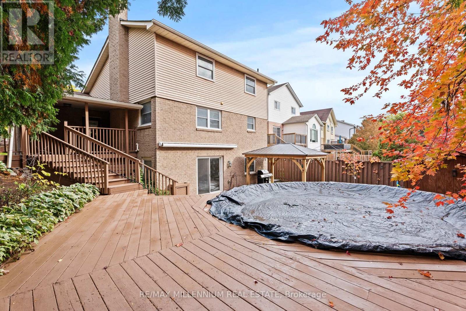 Welcome to Your Dream Home in Blue Grass Meadows, Whitby! Discover this stunning 4+1 bedroom,4-bath detached home in the highly sought-after Blue Grass Meadows - a quiet, family-friendly community just minutes from Hwy 401, Oshawa Centre, and Downtown Whitby. Featuring over $50,000in recent upgrades, this modern 2-storey home perfectly combines style, comfort, and functionality. Main Floor Highlights: Bright open-concept living room with large windows and luxury vinyl flooring. A spacious kitchen and dining area with premium ceramic floors, elegant finishes, and professional-grade Frigidaire appliances. The cozy family room features anelectric fireplace, pot lights, and fresh designer paint (2025) for a warm, contemporary feel.Second Floor Comfort: Four large bedrooms with ample closet space and beautifully updated bathrooms featuring modern fixtures and finishes. Finished Walk-Out Basement (2025): New vinyl flooring, smooth ceilings with pot lights, and fresh paint throughout. Includes a spacious recreation area and bonus room, ideal for a guest suite, gym, or office. Optional upgrade: adda second bedroom and kitchen for $33,000 to create an income-generating apartment (up to$2,400/month). Outdoor Oasis: Enjoy an above-ground pool (2023) with a new pump (2022),interlock patio and stairs (2023), a new gazebo (2023), and a deck with remote-control awning, all surrounded by mature trees for privacy and relaxation. Key Upgrades: AC, furnace & roof(2015), upper deck roof (2020), garage doors with opener (2015), luxury ceramic flooring(2017), and fresh paint throughout (2025). Prime Location: Close to parks, top-rated schools, shopping, transit, and major routes. This is a turnkey family home offering luxury, comfort, and investment potential - all in one of Whitby's most desirable neighbourhoods (41933417)