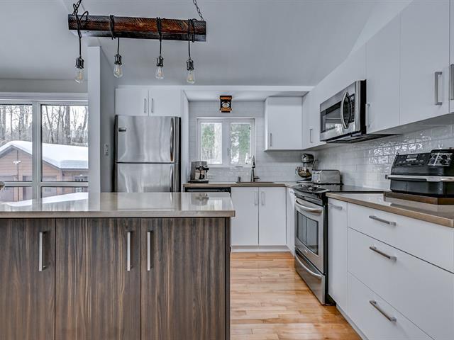 MAISON OU CHALET? Superbe maison avec garage double au cachet chaleureux avec accès au Lac Bleu. Le salon et la salle à manger se distinguent par un plafond semi-cathédrale et un foyer apportant charme et chaleur à l'espace. Très bien entretenue par ces propriétaires et vous offrant une cour boisée avec arbres matures, cette propriété à tout pour plaire. Plusieurs améliorations au cour des années. Faites vite! (51837731)