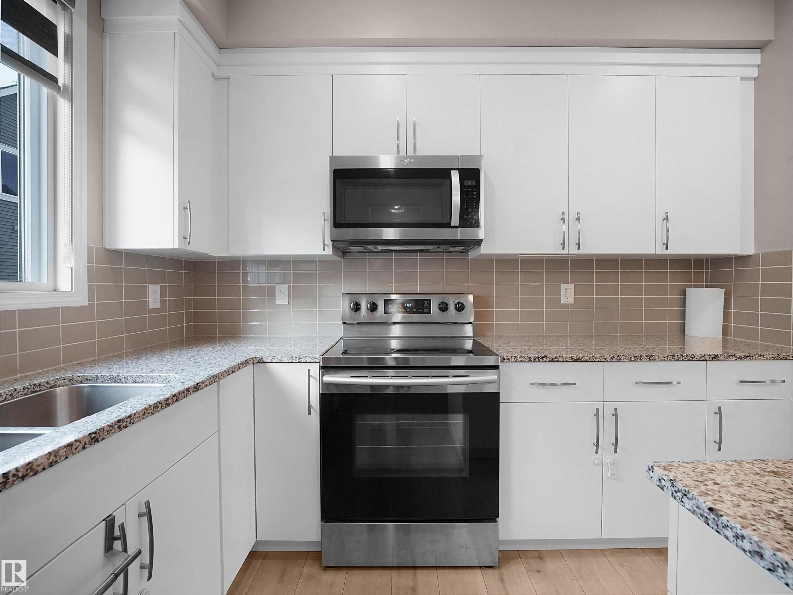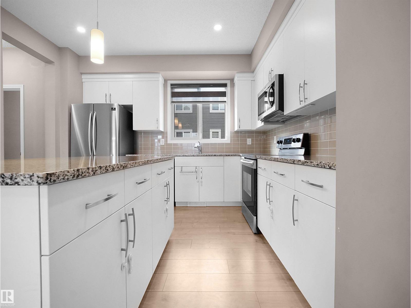 BEST VALUE IN WALKER — PRICED TO SELL! Welcome to Mattamy’s sought-after Crescent Trails – Harvest Model, offering exceptional value in Southeast Edmonton. This bright, modern open-concept townhouse features 1,553 sq ft of well-planned living space with stylish finishes throughout. The contemporary kitchen boasts upgraded cabinetry, a large island with eating bar, tiled backsplash, and OTR microwave—perfect for daily living and entertaining. The spacious living and dining areas are filled with natural light and enhanced by a cozy electric fireplace. Upstairs you’ll find 3 good-sized bedrooms, including a generous primary suite with walk-in closet and 4-piece ensuite. Enjoy the convenience of a double attached garage, low condo fees, a private balcony, and ample street parking for guests. Located steps from walking trails and close to schools, shopping, and major routes. Modern design, unbeatable value, and priced to sell—this one won’t last! (33714143)
