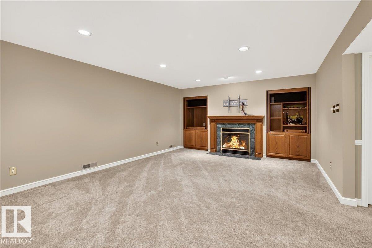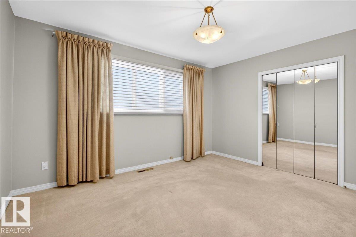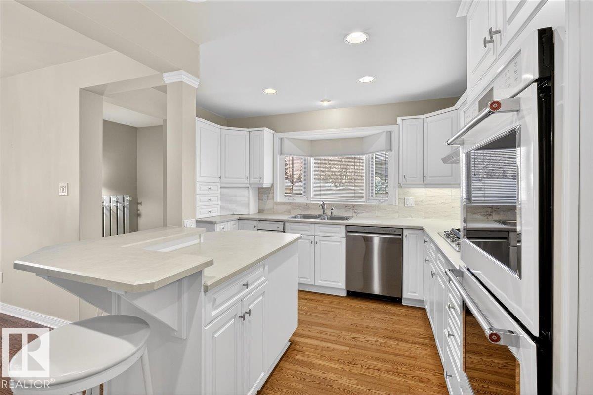 Classic Mid-Century Modern bungalow featuring beautifully remodeled interior! Conveniently located in central SE Edmonton. Spacious 3 bedroom + den, two full baths plus ensuite in primary bedroom, over 2400 sf on two levels. Professionally modified floor plan and elegant decor inspired by long term owners. This fully equipped and well maintained Ace Lang home features a large kitchen with island, newer appliances including double ovens, gas cooktop + walk in pantry. Ash hardwood floors, LR gas fireplace, recessed lighting & speakers, remote controlled blinds in LR & DR + A/C. Fully finished basement great for the family and entertaining, custom wet bar with beverage cooler, gas fireplace, built-ins and storage room with freezer. Furniture can be included. Heated & insulated oversize double garage with work bench and storage + large private patio. Move in ready! (33714164)