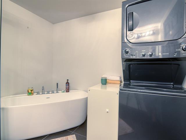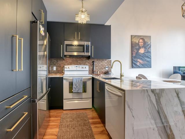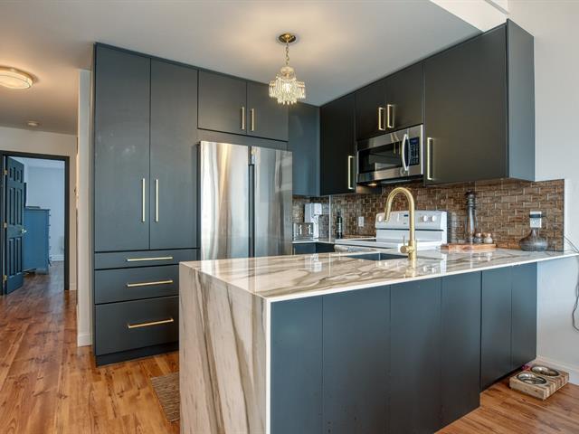 *Villa Rivera* Steps from Île Paton and the river. Stunning, fully renovated condo. Bright with a large bay windows on two floors and cathedral ceilings. Beautiful kitchen and bathroom. Large bedroom. Spacious and beautiful mezzanine. Interior storage. Heatpump. Nice balcony. 1 outdoor parking space. Outdoor pool. Included: stove, refrigerator, washer, dryer. Occupancy February 1st. (55039144)