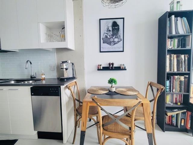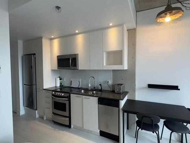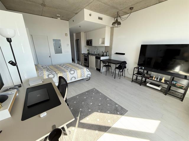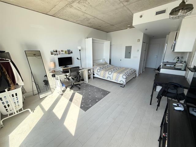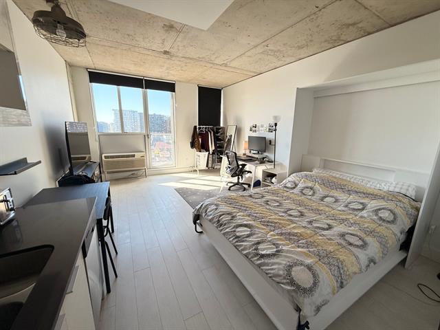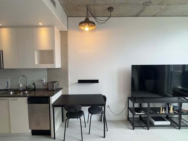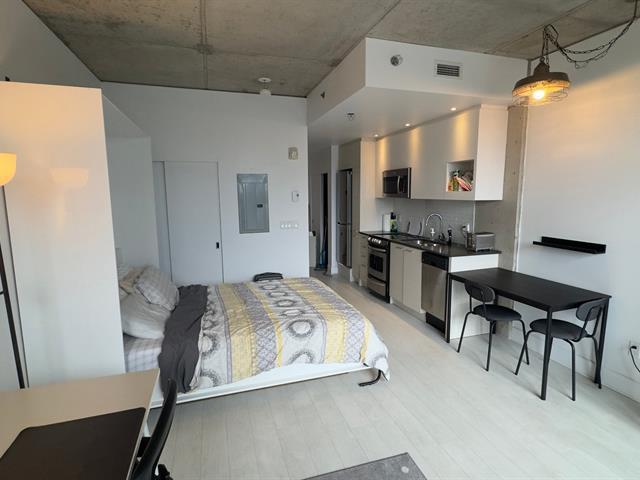 Spacious and bright studio apartment with a magnificent unobstructed view, located in the Multimedia City, halfway between Old Montreal and downtown. Ultra-modern construction in a prestigious project. Kitchen and bathroom with quartz countertops. Superior soundproofing and insulation. Enjoy the terrace and pool in the summer, as well as the well-equipped gym. Be in the heart of the action, just steps from downtown. Perfect for owner-occupancy or investment. The condo is currently rented for $1495 per month. Contact me for more information. (57753161)