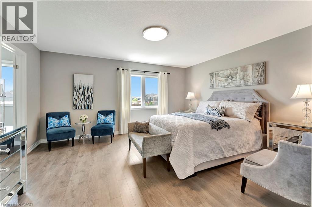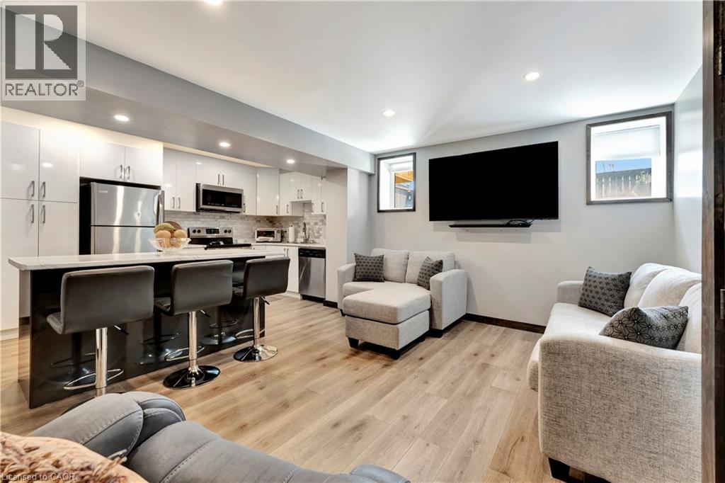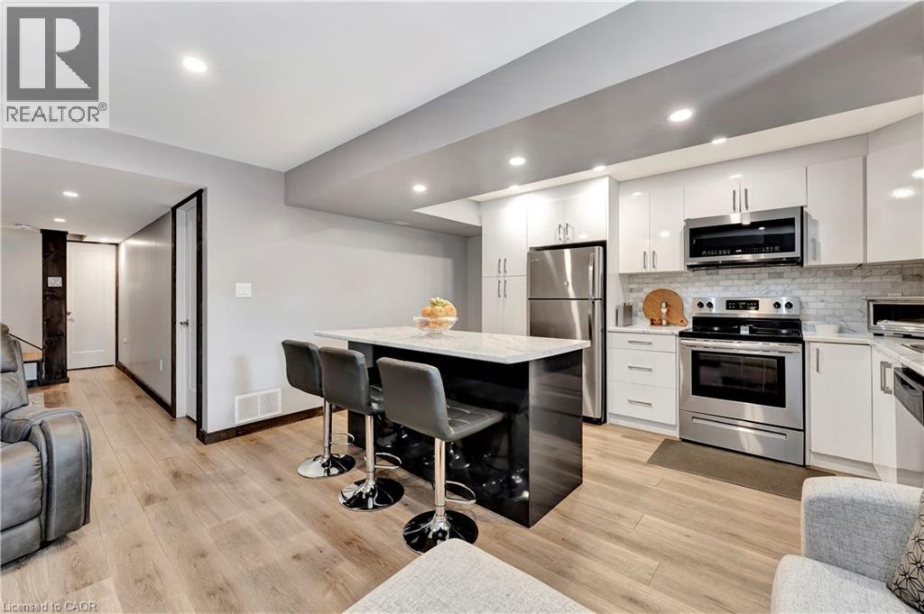 Upgraded from top to bottom! From the moment you arrive, you’ll notice its impressive curb appeal, highlighted by a stone driveway and brand-new front door that set the tone for what’s inside. Step into a beautifully updated main floor featuring a gleaming white eat-in kitchen, complete with brand-new stainless steel appliances, quartz countertops, designer pendant lighting, and more. The living room is anchored by a timeless gas fireplace and bathed in natural light from every angle. Perfect for entertaining, the main level offers space for a full dining suite, while the fully finished lower level provides incredible versatility with a second kitchenette/wet bar—ideal for a rec room, studio, or private guest quarters. Upstairs, three spacious bedrooms await, including a serene primary suite with a walk-in closet and luxurious 4-piece ensuite. A convenient upper-level laundry room, second full bathroom, and linen closet add everyday practicality. Outside, enjoy a hardscaped rear deck and patio designed for low-maintenance outdoor living. Backing onto scenic trails and with a family-friendly park right across the street, this home blends high-end finishes, functional design, and unbeatable value! Top rated schools and highway access close by! (70041705)