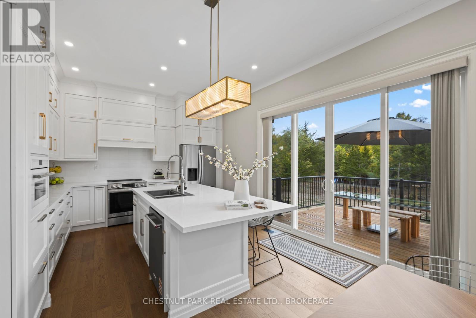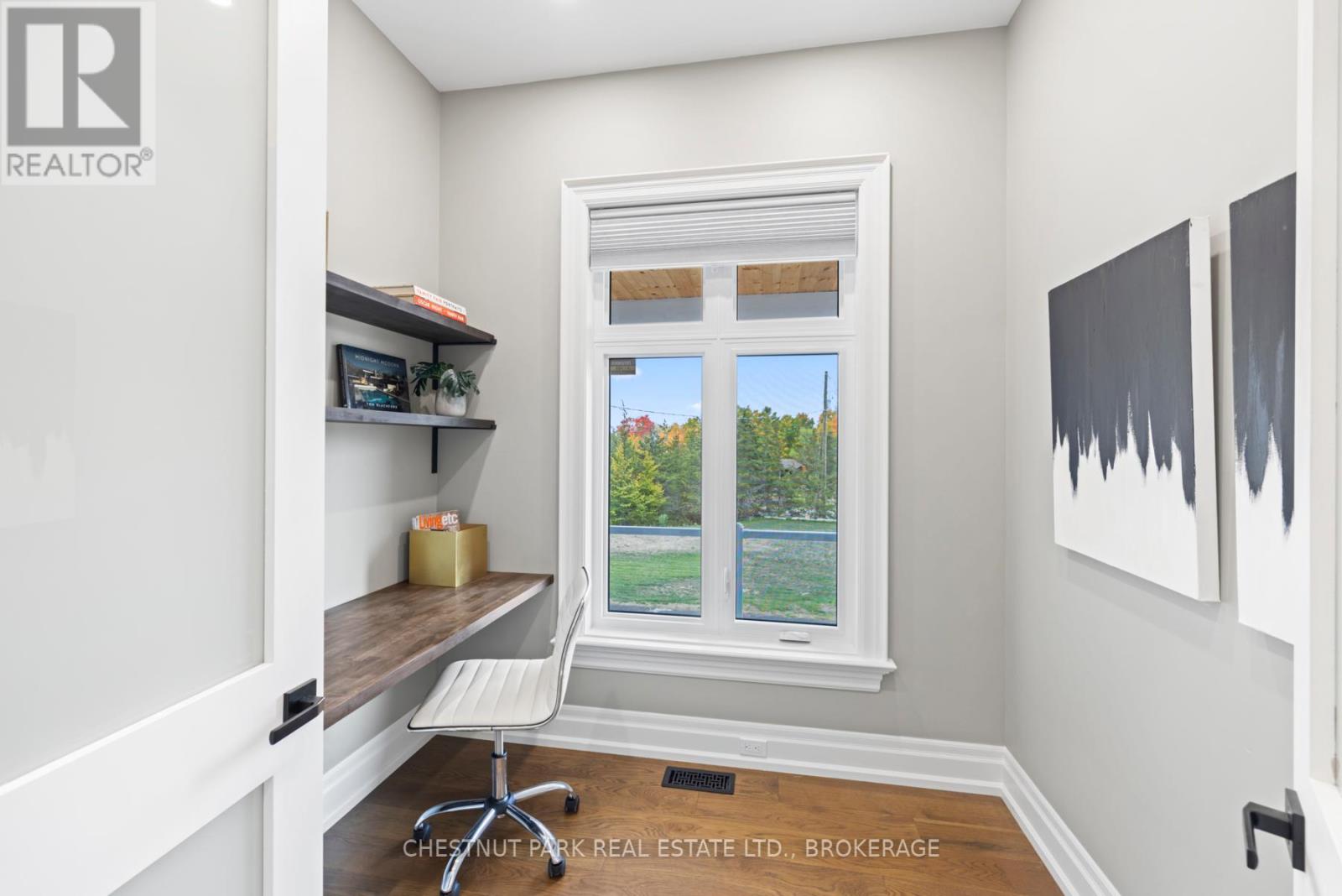 Experience the epitome of luxury country living in this stunning home that combines contemporary elegance with impeccable attention to detail. Flooded with natural light and designed with exquisite craftsmanship, this residence offers the perfect blend of elegance, comfort, and modern sophistication in a serene setting.The bright and airy interior features 10' ceilings, striking 8' solid wood doors, pot lights, and masterfully handcrafted mouldings throughout. The 2,158 SF main level boasts oak floors and an open-concept design with vaulted coffered ceilings and large windows that frame picturesque views of the countryside and expansive deck. The custom kitchen features a generous island and quartz countertops, blending style with functionality.The primary suite offers a striking feature wall, patio doors to the deck, two custom closets, and a luxurious ensuite with a soaking tub and walk-in shower adorned with spectacular tile. The main floor includes two additional bedrooms, an office, a full bathroom, and a powder room. A private hallway leads to a fourth bedroom with an ensuite and direct outdoor access - perfect for family or guests.The stairway to the lower level is equipped with motion-activated lighting, blending functionality and ambiance. This 2,167 SF space includes a fifth bedroom, cold room, ample storage, and bathroom rough-in. Set on nearly 2.5 acres on the outskirts of the charming town of Yarker and surrounded by mature trees for ultimate privacy, this home boasts a massive 734 SF garage with 18' ceilings, with the potential to add a loft space. Enjoy the outdoor amenities, including an inviting fire pit, a separate cabin for entertaining or relaxation, a sauna, and a large storage area.Rarely is a property of this caliber available. Experience the perfect blend of luxury and natural beauty in this exceptional home. Discover a sanctuary where breathtaking views meet unparalleled craftsmanship, creating an inviting space you'll be proud to call home. (41935181)