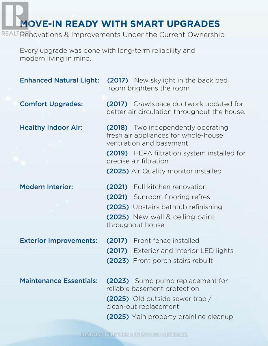 Situated on a tree lined street in sought after Old South and just steps to Wortley Village, with a commitment to community second to none. From Gather on the Green to Halloween in the Village to Christmas in the Village, the Christmas Market, Jazz & Blues Festival, Auto Show and much more. This is your opportunity to live in one of Canada's most sought after Villages. Circa 1907 enjoy the character and charm, yet renovated for today's lifestyle. From the inviting foyer to the sundrenched living room, open concept custom kitchen, 3 bedrooms, 2 bathrooms, main floor den or office. Completely renovated and updated. New kitchen and baths, new flooring, plumbing, wiring and Comfort upgraded Air Quality System and private fenced yard. This home is everything you have been looking for at a great price! Take a look at this fantastic home. (41935487)