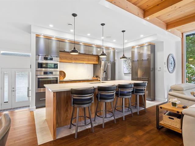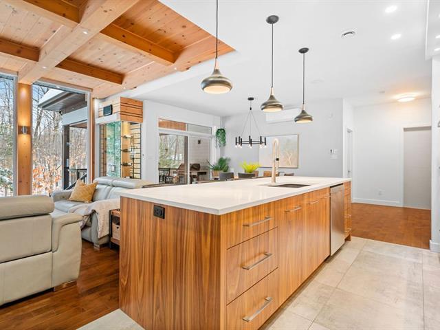 Un bijou situé à Saint-Colomban, en parfaite harmonie avec la nature. Le salon, véritable pièce coup de coeur, offre une fenestration pleine hauteur plus qu'abondante, un plafond architectural avec poutres de bois et des stores motorisés permettant de profiter pleinement de la vue boisée. La cuisine séduit par ses électroménagers encastrés, ses comptoirs de quartz et son garde-manger walk-in. Le sous-sol aménagé propose une chambre, deux salles de bain, une cuisine, un salon, salle de jeux et une salle de lavage. Le bachelor a été ouvert afin d'optimiser l'espace, lequel peut être reconverti aisément en bachelor, bureau ou service de garde. (48862495)