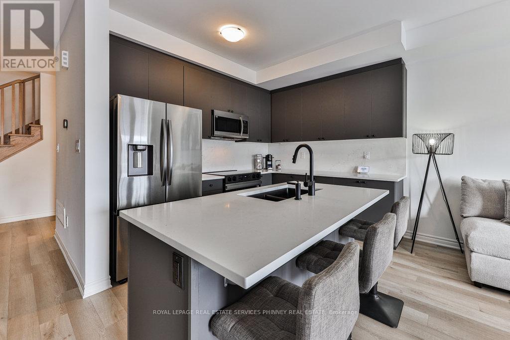 Modern 3-Bedroom Townhome in a Sought-After Community by Mattamy Homes Welcome to this one-year-old townhome, beautifully crafted by award-winning builder Mattamy Homes. Located in a growing new community, this home offers the perfect blend of style, comfort, and convenience. A thoughtfully designed 3-bedroom, 3-bathroom layout with an open concept second floor thats ideal for everyday living and perfect for entertaining friends and family. The upgraded kitchen boasts stainless steel appliances, quartz countertops, a large center island, and generous pantry. With luxurious laminate flooring throughout, the main living area features a bright and airy living room with a walkout to a spacious covered deck and a dining area with an accent wall and abundant natural light. A convenient powder room and laundry space complete this level. Upstairs, retreat to the generous primary suite with a large closet, a modern 3-pieceensuite, and a private balcony. Two additional bedrooms, both with closets, share a stylish4-piece bath. A linen closet provides added storage. Plenty of parking with a single garage and two additional driveway spaces. Situated in a prime location, this home is close to major highways, shopping, schools, and everyday amenities, making it perfect for families and professionals alike. Don't miss your chance to own this stunning, move-in ready home in a growing community (41935889)