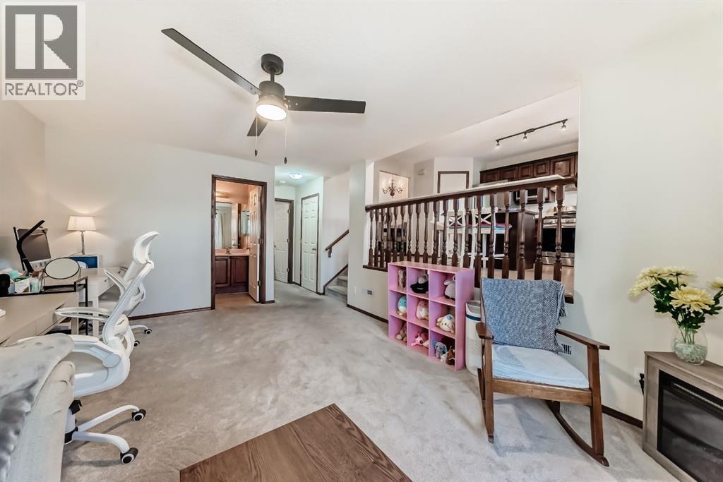 Located on a quiet street, this home backs directly onto a beautiful green space and playground. The seller has recently invested in quality updates, including a new two-tier deck, hardwood flooring, and a new refrigerator with gas stove. The main level features an open layout with soaring vaulted ceilings and 12-foot windows that fill the living and dining areas with natural light. The kitchen is finished with rich cherry-stained oak cabinets and a central island. The third level family room provides a large, comfortable living space. It offers a walk-out to the spacious two-tier deck, which is also accessible from the kitchen. The entire top floor is dedicated to the private master suite. This expansive space includes double walk-through closets and a large ensuite bathroom with a jetted tub, separate shower, and a skylight. The ground level provides a private bedroom and a full bathroom, making it ideal for guests or roommates. On the fourth level, you will find a laundry area with a washer and dryer, plenty of storage space, and a flexible room perfect for an office or hobby room. New roofing in 2023 and water heater in 2024. The location provides easy access to Deerfoot Trail and shopping at 130 Ave SE. Douglasdale School is a short walk away, and there is a playground right behind the backyard. (31522517)