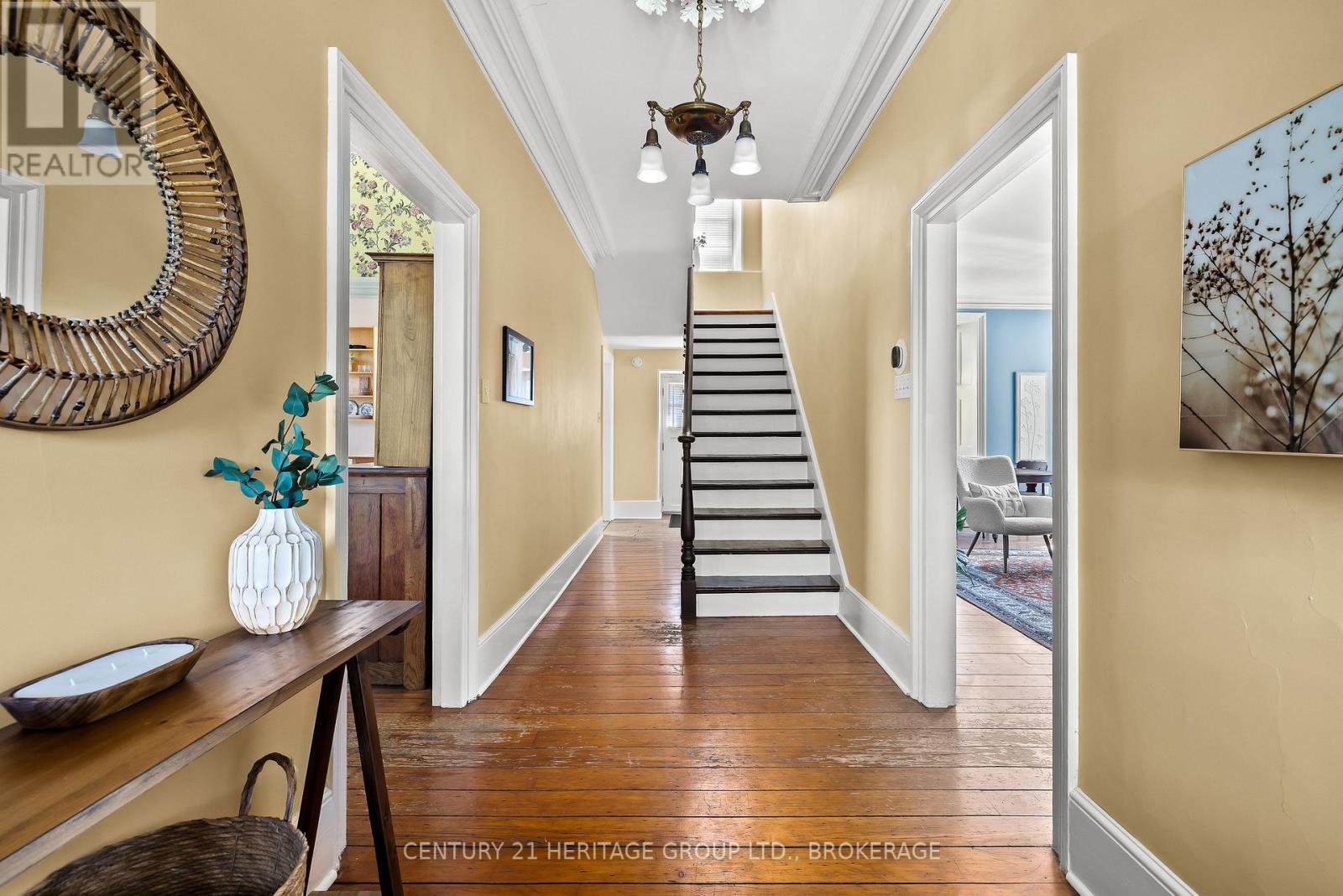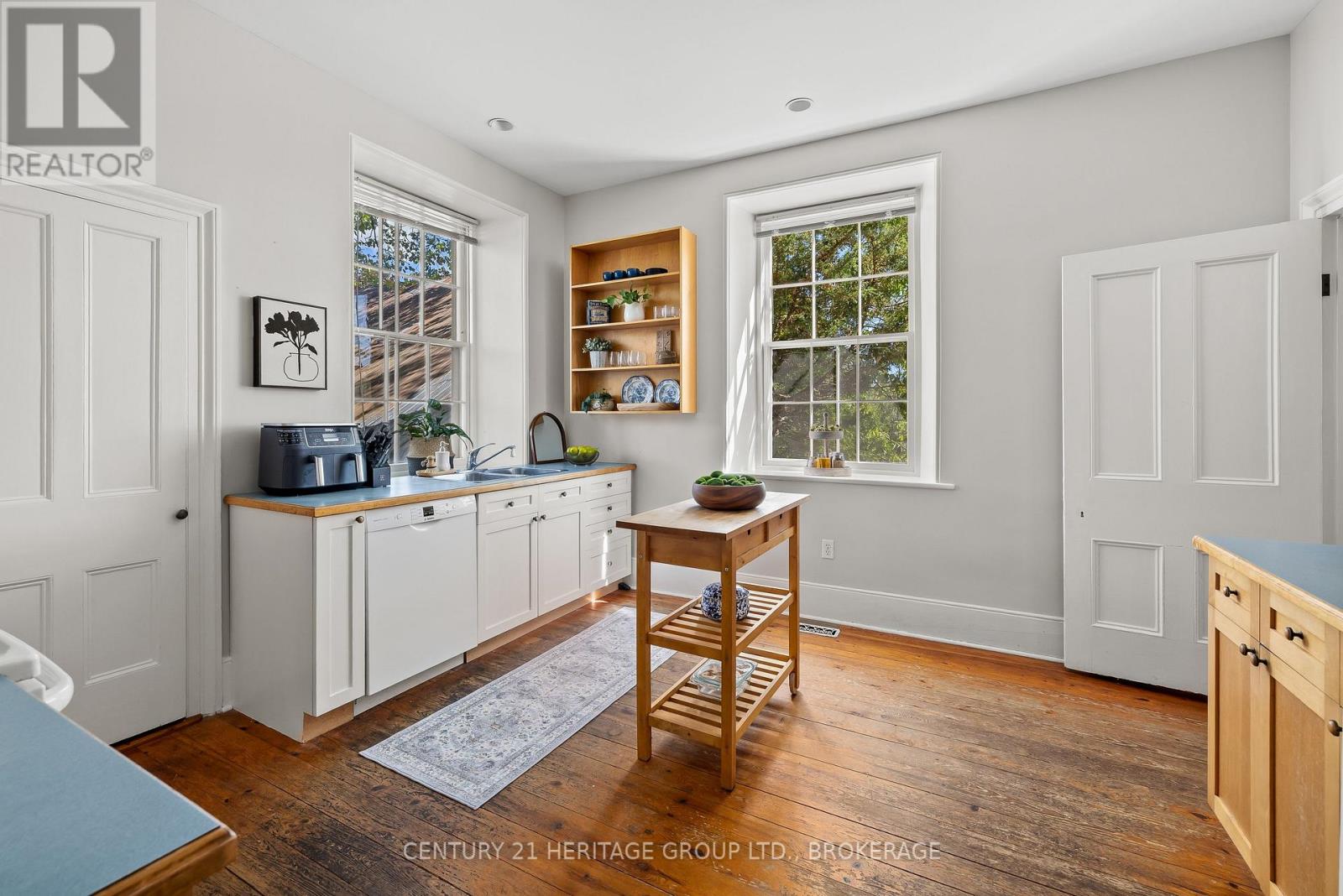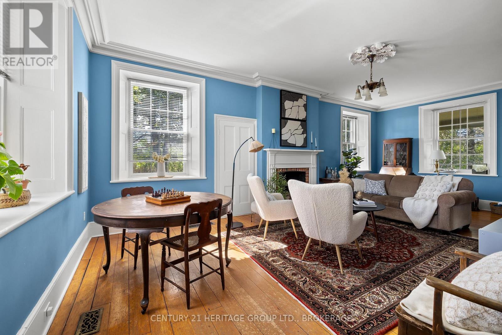 The once-formal gardens that surround this intensely pretty (and nicely updated) limestone and sandstone home just east of downtown Kingston have let their guard down just slightly. A chicken coop in one corner. Geometries hinted at rather than imposed. The barn leans so casually against the house it might be about to tell a good joke. The familiar touchstones are all here; mile-wide window ledges, softwood floors worn the colour of toffee or honeycomb, the wide porch like a dinner theatre stage. But there is more to 1049 than fearsome symmetry. A fireplace divides the living and dining rooms like a warm-hearted referee. Across the hall is a more private parlour, or home office. The wallpapers are modern, high-end, but nod knowingly to the history, as if William Morris popped by to tip his cap. There are four bedrooms, with ceilings high enough to accommodate the grandest of four-poster beds, the most elaborate of libraries. And the bathroom, on this level, dead-centre at the front of the house, is a period piece, with its clawfoot tub crouched beneath the window like a big white cat. The basement, home once, to Downton Abbey-level shenanigans, and steaming stock pots swinging above the fire, is a cool retreat from the upper-floor hubbub, and also where the laundry is managed. It is a rambling, stylish country home. The shooting parties are long past. The life on offer is more literary than that, more urban farmer, more university prof, more doctor. I imagine kids tearing between bedrooms, up and down the stairs; their laughter sticking to the walls. (41936158)