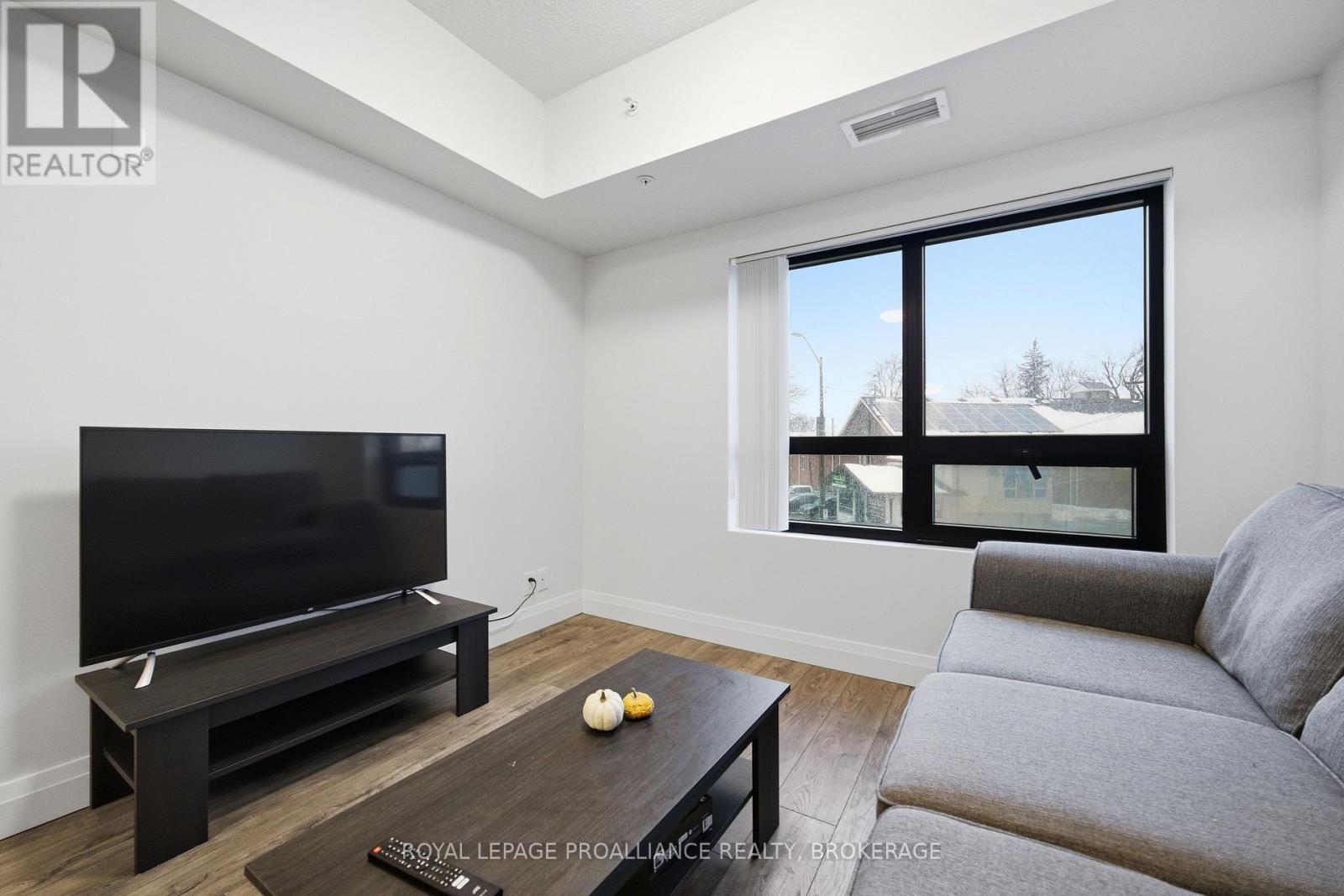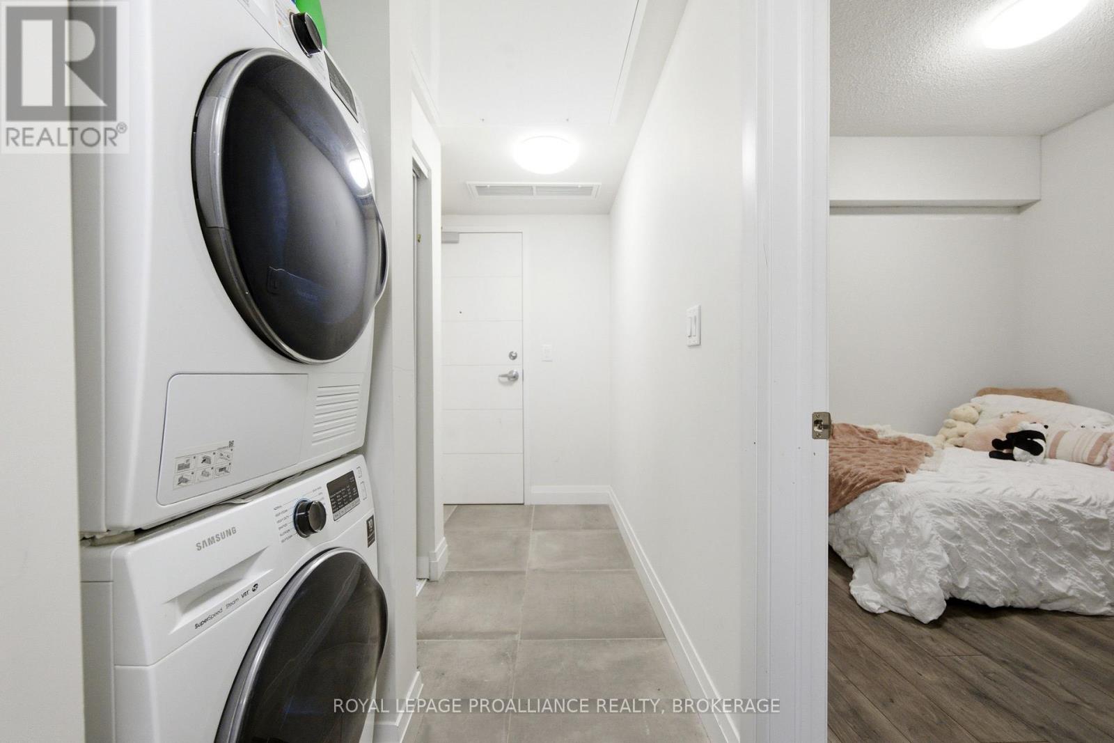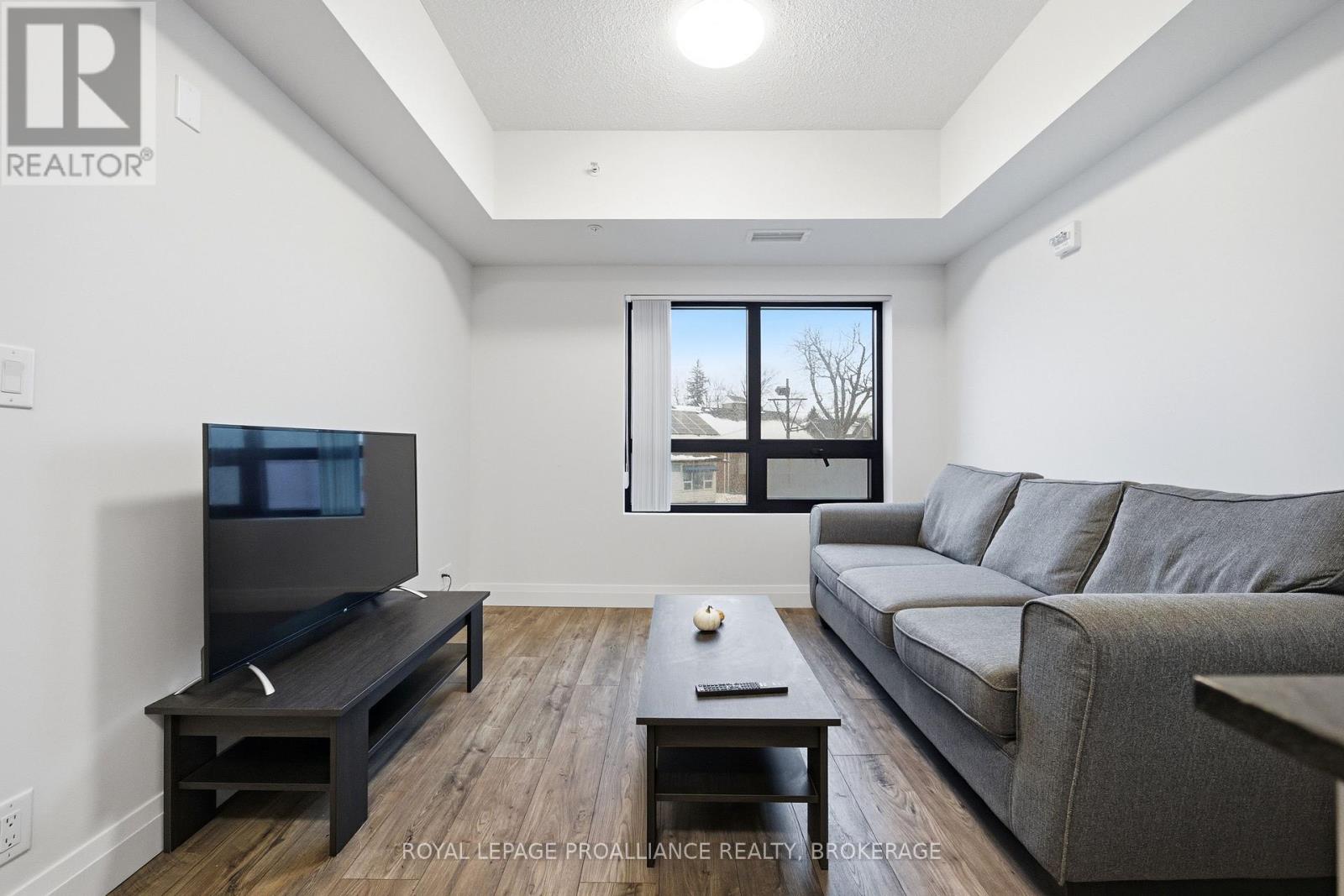 Welcome to this cozy & modern 2 bedroom, 2 bath condo unit located in Kingston's Williamsville just a few minutes walk to 'The Hub' & Downtown. Offering convenience & location - the unit includes a tiled entrance & adjacent 4pc bath, 9 ft ceilings, in-suite laundry, & large windows with Northern exposure. The kitchen offers stainless steel appliances, stone countertops, & contemporary cabinetry. A primary bedroom with convenient 4pc ensuite completes the package. Let's not forget the bonus storage locker, as well the possibility of some furnishings being included for a quick & seamless move-in or a turn-key investment. Condo amenities include a fitness room, party room, & a rooftop garden/deck. Located on a public transit route, enjoy quick access to Queen's University, St Lawrence College, Hospitals & more. (41936621)