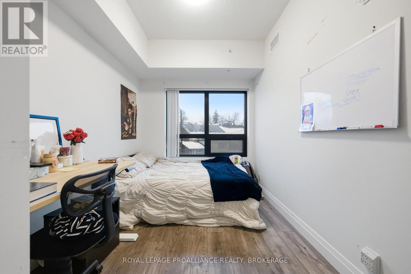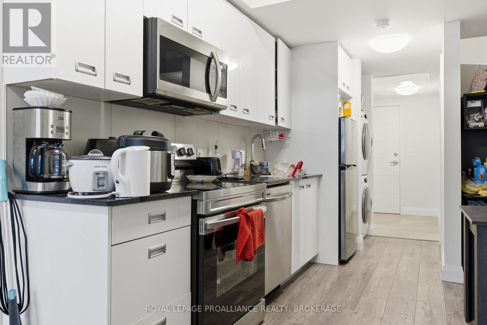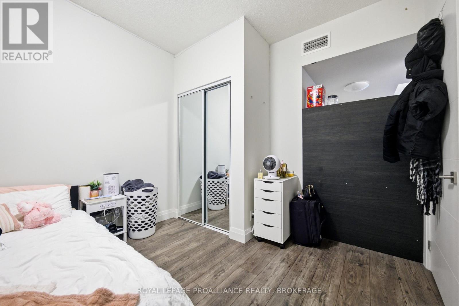 Welcome to this cozy & modern 2 bedroom, 2 bath condo unit located in Kingston's Williamsville just a few minutes walk to 'The Hub' & Downtown. Offering convenience & location - the unit includes a tiled entrance & adjacent 4pc bath, 9 ft ceilings, in-suite laundry, & large windows with Northern exposure. The kitchen offers stainless steel appliances, stone countertops, & contemporary cabinetry. A primary bedroom with convenient 4pc ensuite completes the package. Let's not forget the bonus storage locker, as well the possibility of some furnishings being included for a quick & seamless move-in or a turn-key investment. Condo amenities include a fitness room, party room, & a rooftop garden/deck. Located on a public transit route, enjoy quick access to Queen's University, St Lawrence College, Hospitals & more. (41936621)
