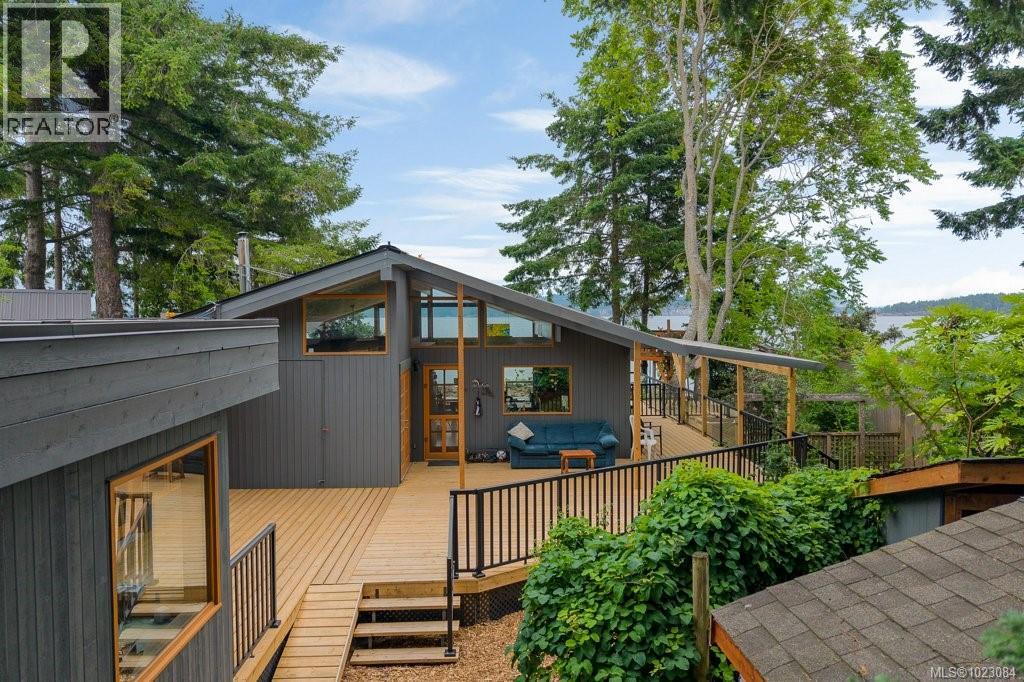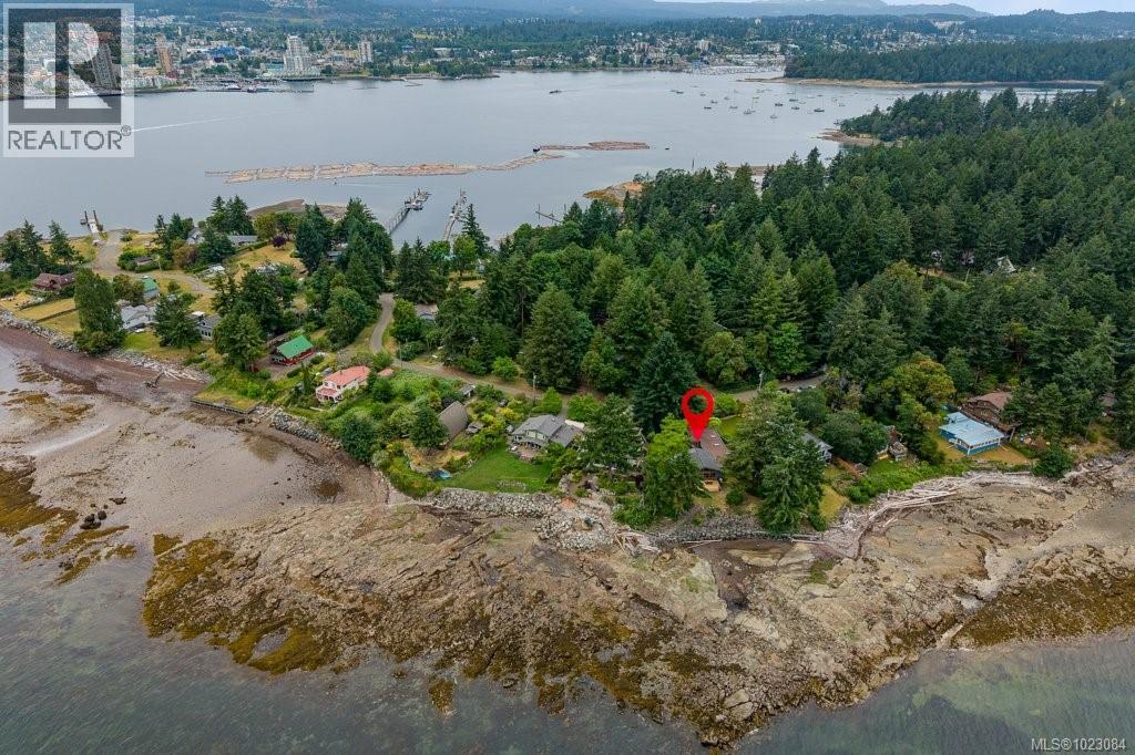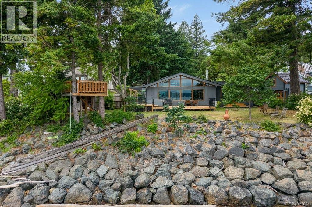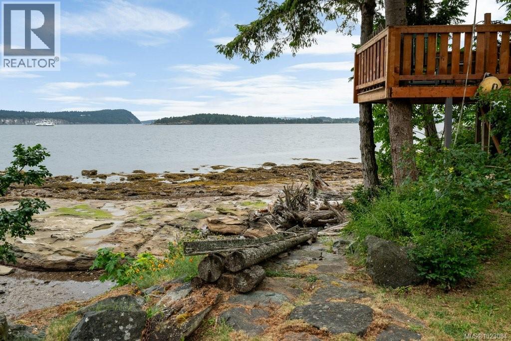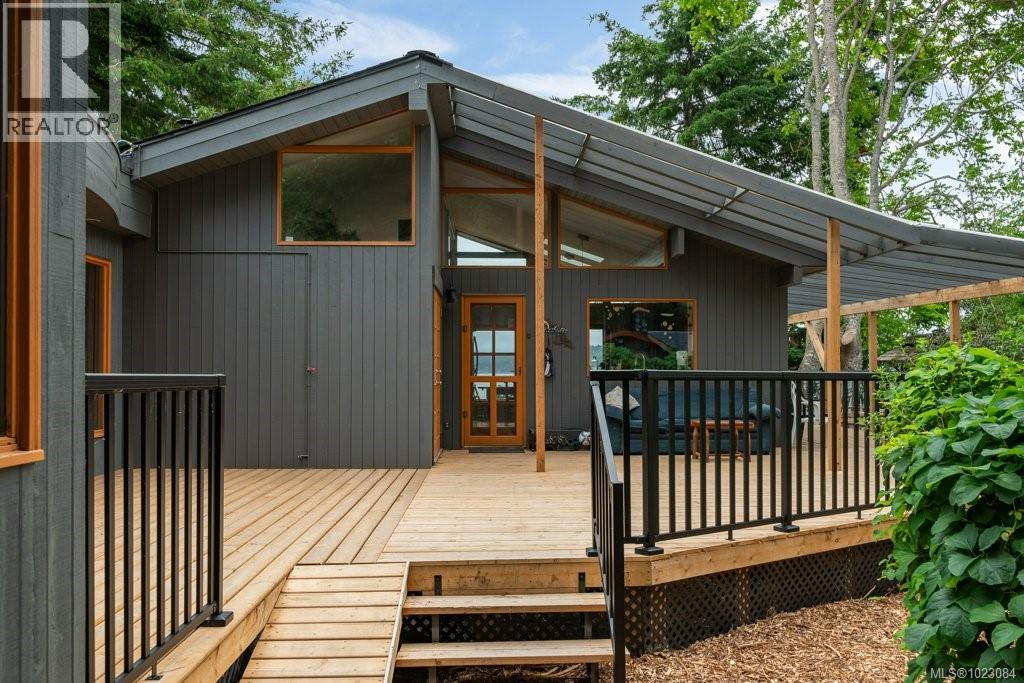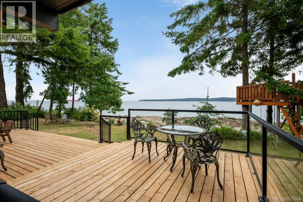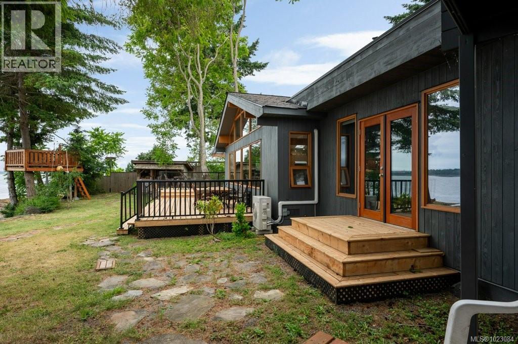 This stunning West Coast waterfront home enjoy views of the Salish Sea, Gabriola Isl & distant mainland mountains.Features include; radiant heated floors throughout, timbered ceilings, expansive picture windows in every living space, 2 heat pumps, 2 full baths including ensuite, well designed kitchen w/pull out pantry drawers, stainless appliances.The water facing primary suite has a walk/in closet, a private deck -just a few steps to the beach.2 secondary bedrooms are privately located facing a lush garden.The connecting space w/laundry room, main bath, is perfect as a mud room or welcoming entry w/doors to the expansive courtyard deck.Outside you'll find a kayak ramp down to the beach,& to add to the fun- a cosy guest bunkie, tree fort, a wired tool/workshop, wood & kayak storage. Protection Isl has City services, its own firehall with trained first responders; 10 min passenger ferry to Downtown Nanaimo, easy to connect to nearby seaplanes,helijet, & ferries. (30268616)