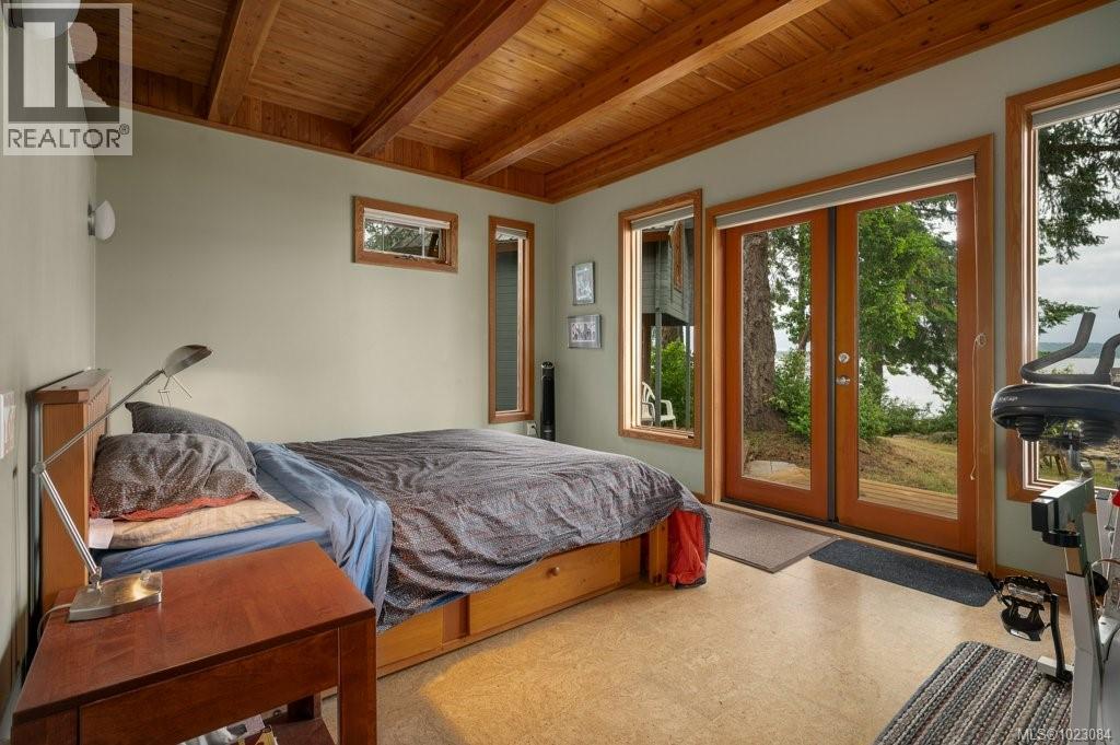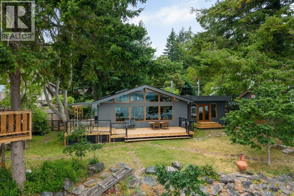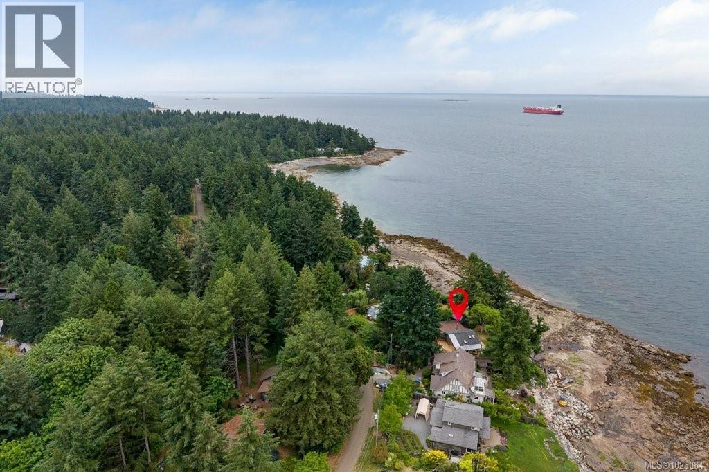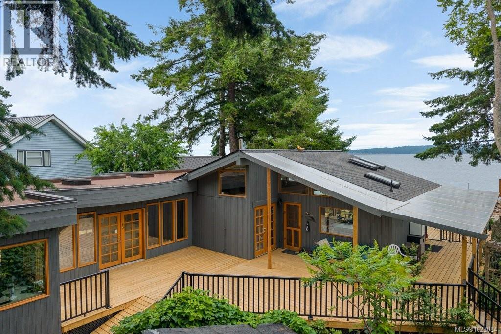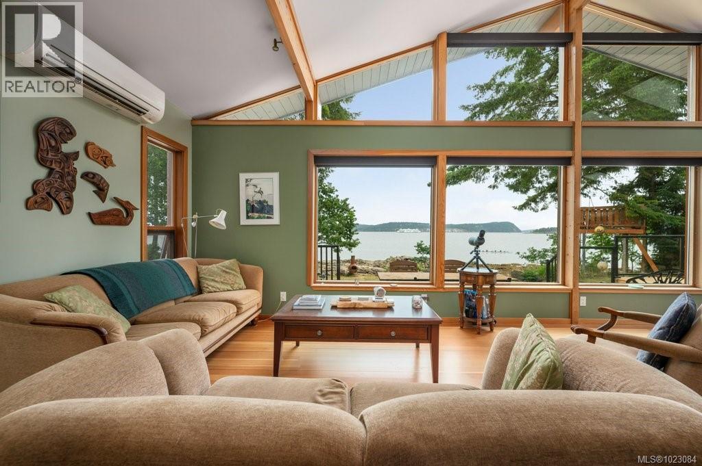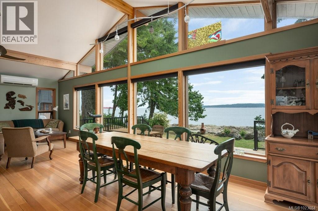 This stunning West Coast waterfront home enjoy views of the Salish Sea, Gabriola Isl & distant mainland mountains.Features include; radiant heated floors throughout, timbered ceilings, expansive picture windows in every living space, 2 heat pumps, 2 full baths including ensuite, well designed kitchen w/pull out pantry drawers, stainless appliances.The water facing primary suite has a walk/in closet, a private deck -just a few steps to the beach.2 secondary bedrooms are privately located facing a lush garden.The connecting space w/laundry room, main bath, is perfect as a mud room or welcoming entry w/doors to the expansive courtyard deck.Outside you'll find a kayak ramp down to the beach,& to add to the fun- a cosy guest bunkie, tree fort, a wired tool/workshop, wood & kayak storage. Protection Isl has City services, its own firehall with trained first responders; 10 min passenger ferry to Downtown Nanaimo, easy to connect to nearby seaplanes,helijet, & ferries. (30268616)