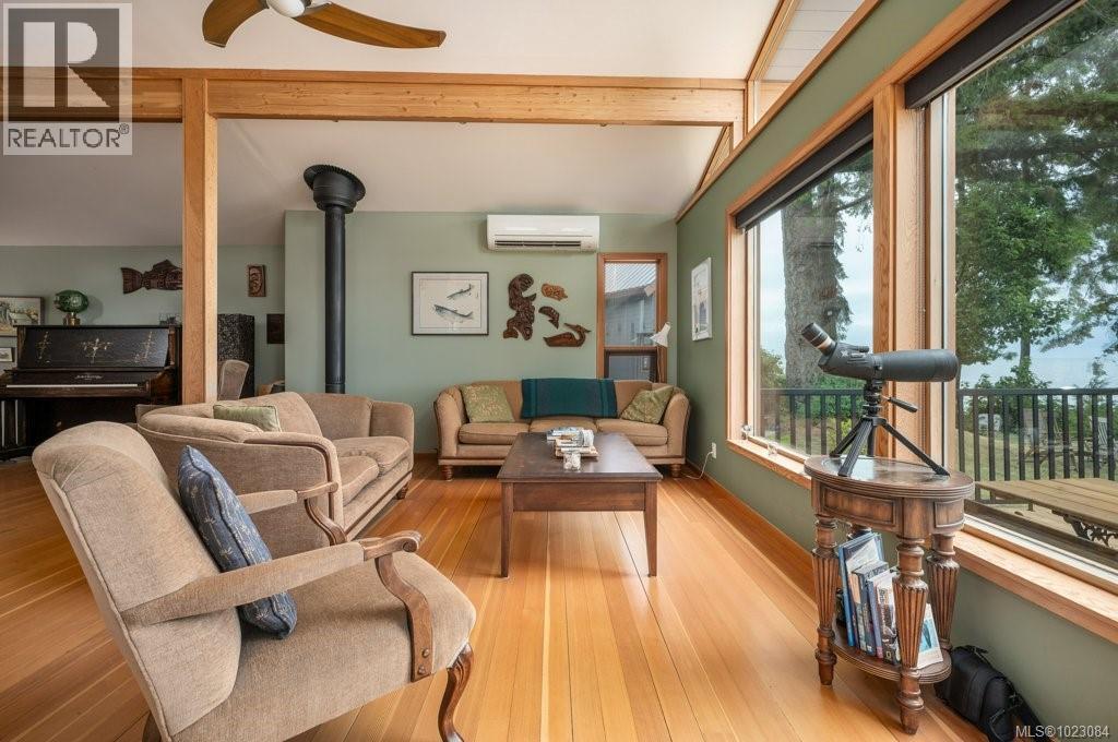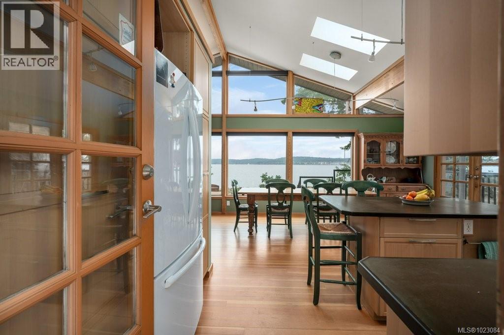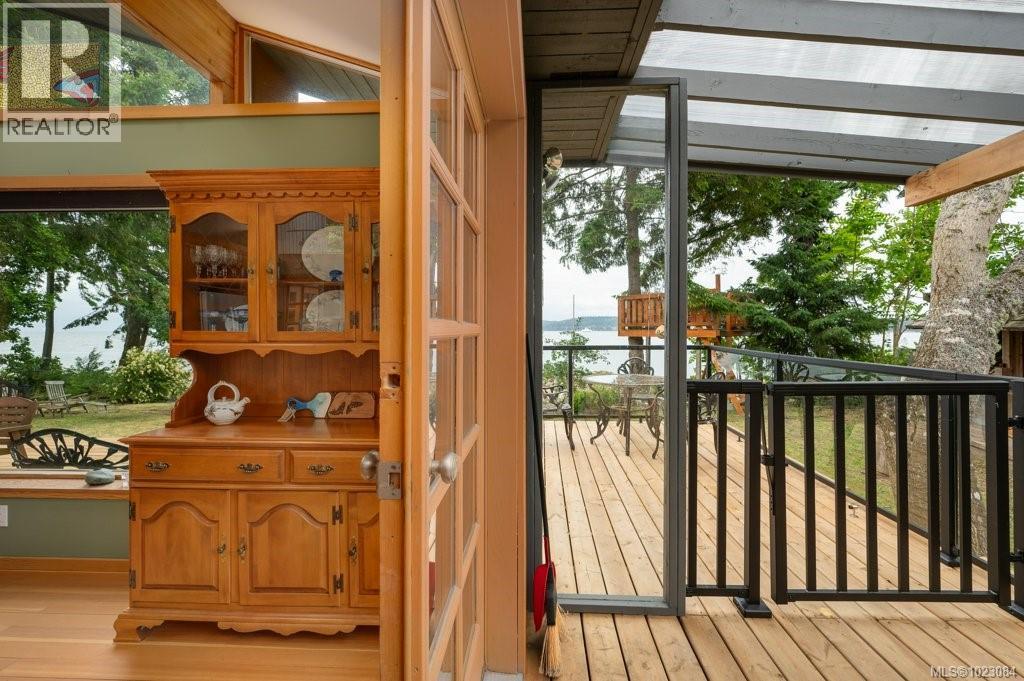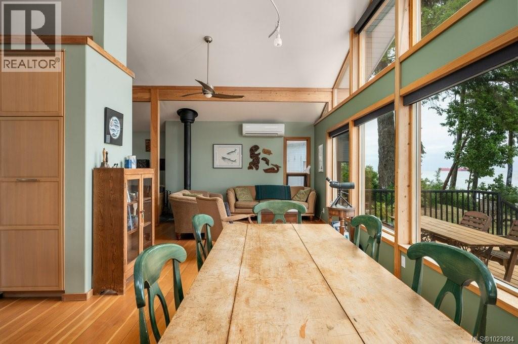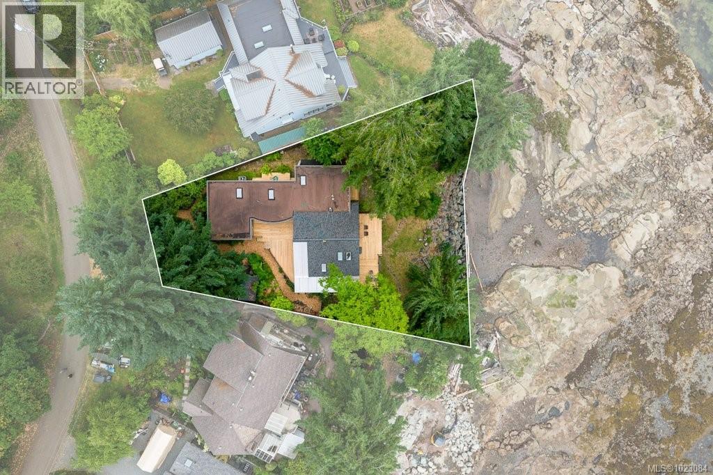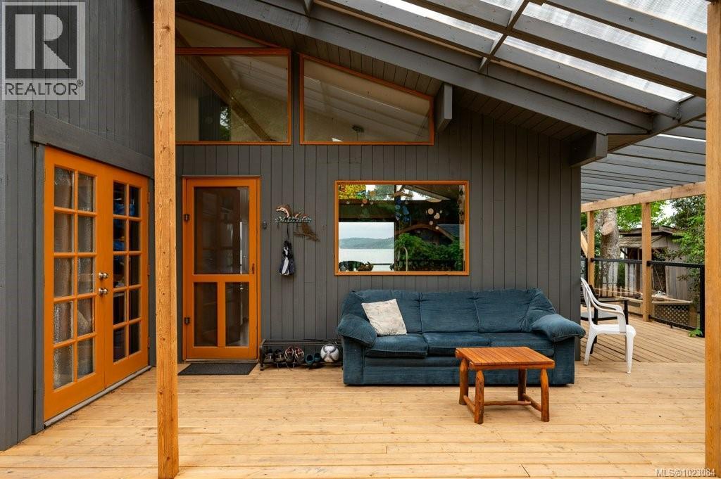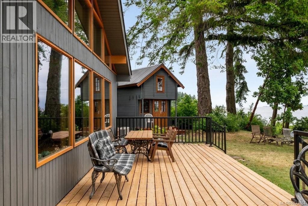 This stunning West Coast waterfront home enjoy views of the Salish Sea, Gabriola Isl & distant mainland mountains.Features include; radiant heated floors throughout, timbered ceilings, expansive picture windows in every living space, 2 heat pumps, 2 full baths including ensuite, well designed kitchen w/pull out pantry drawers, stainless appliances.The water facing primary suite has a walk/in closet, a private deck -just a few steps to the beach.2 secondary bedrooms are privately located facing a lush garden.The connecting space w/laundry room, main bath, is perfect as a mud room or welcoming entry w/doors to the expansive courtyard deck.Outside you'll find a kayak ramp down to the beach,& to add to the fun- a cosy guest bunkie, tree fort, a wired tool/workshop, wood & kayak storage. Protection Isl has City services, its own firehall with trained first responders; 10 min passenger ferry to Downtown Nanaimo, easy to connect to nearby seaplanes,helijet, & ferries. (30268616)