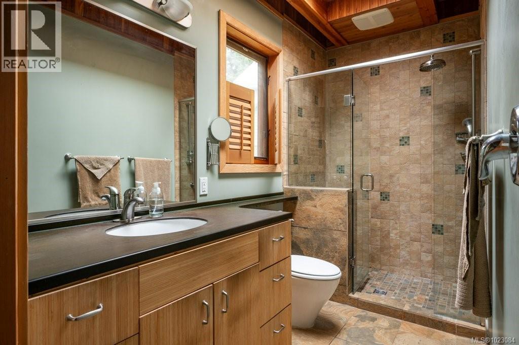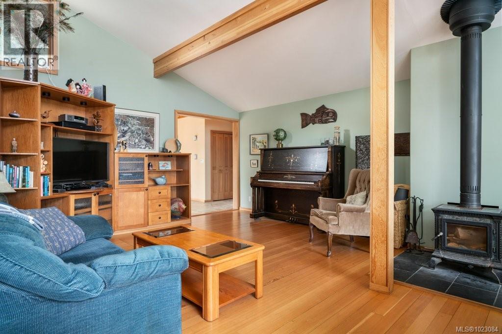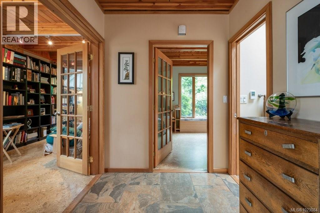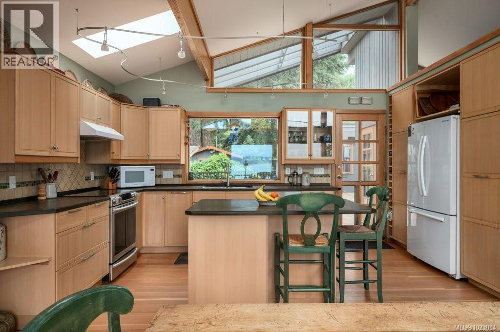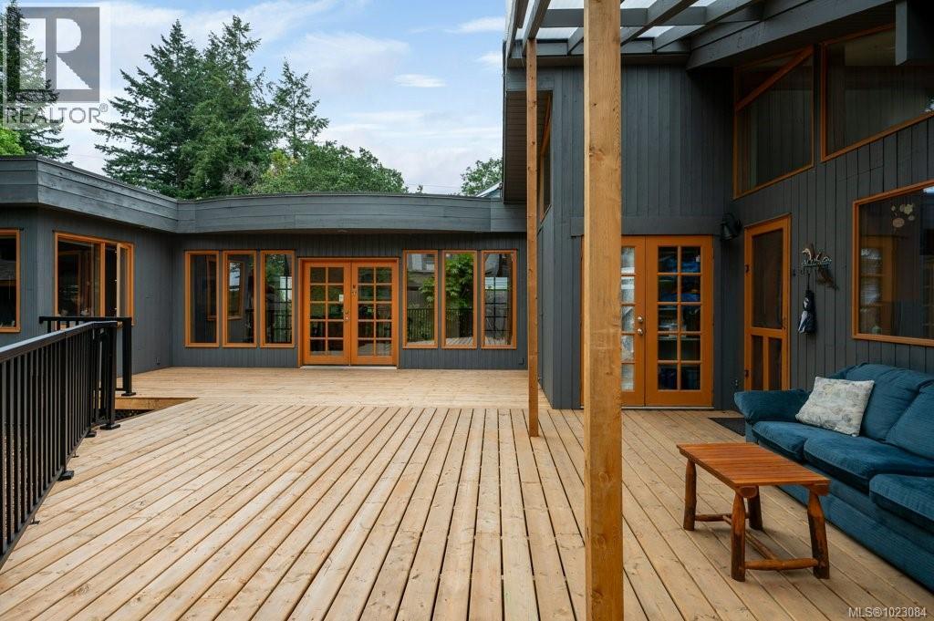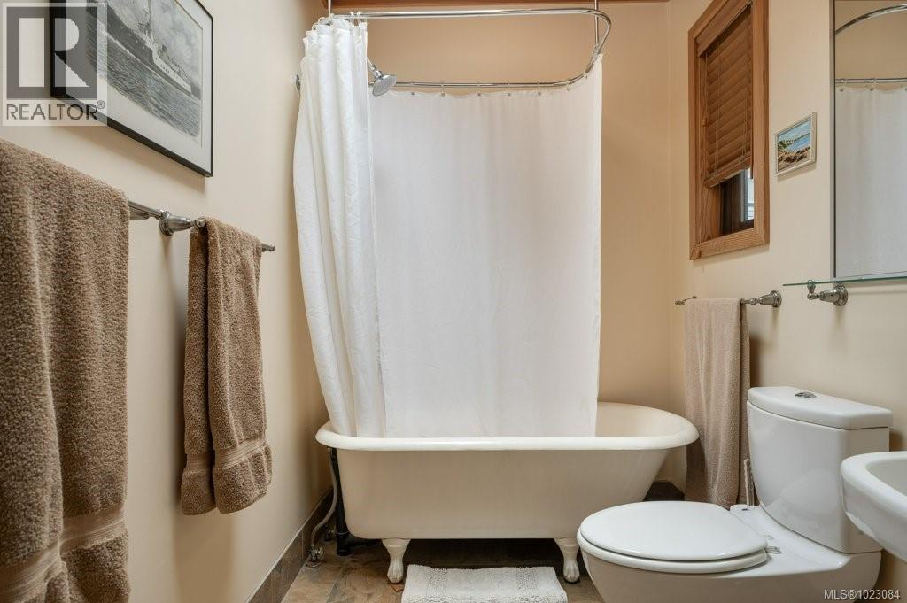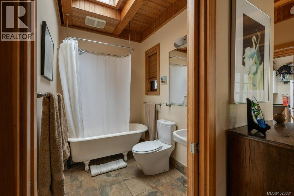 This stunning West Coast waterfront home enjoy views of the Salish Sea, Gabriola Isl & distant mainland mountains.Features include; radiant heated floors throughout, timbered ceilings, expansive picture windows in every living space, 2 heat pumps, 2 full baths including ensuite, well designed kitchen w/pull out pantry drawers, stainless appliances.The water facing primary suite has a walk/in closet, a private deck -just a few steps to the beach.2 secondary bedrooms are privately located facing a lush garden.The connecting space w/laundry room, main bath, is perfect as a mud room or welcoming entry w/doors to the expansive courtyard deck.Outside you'll find a kayak ramp down to the beach,& to add to the fun- a cosy guest bunkie, tree fort, a wired tool/workshop, wood & kayak storage. Protection Isl has City services, its own firehall with trained first responders; 10 min passenger ferry to Downtown Nanaimo, easy to connect to nearby seaplanes,helijet, & ferries. (30268616)