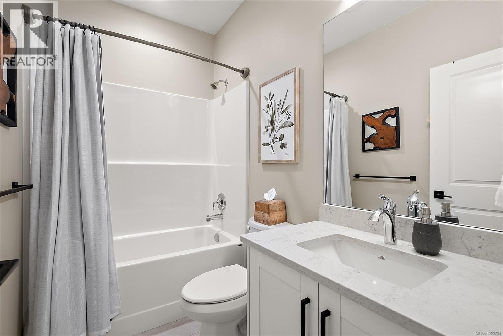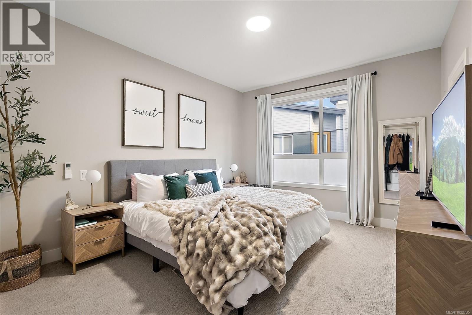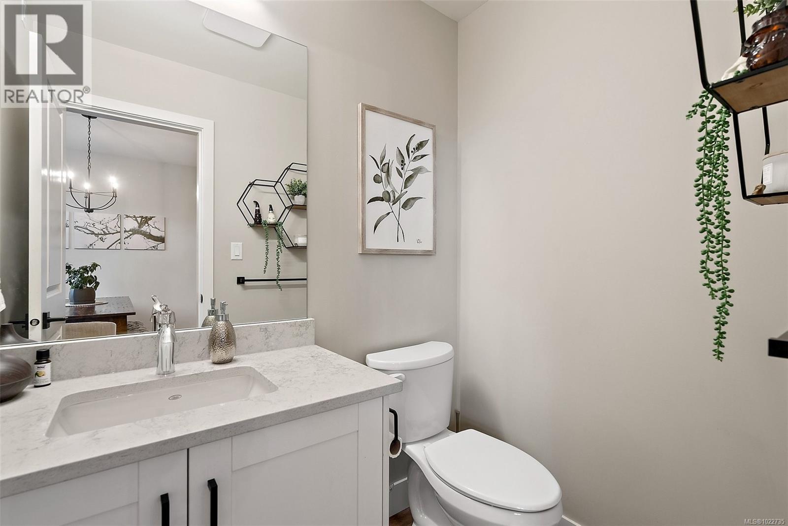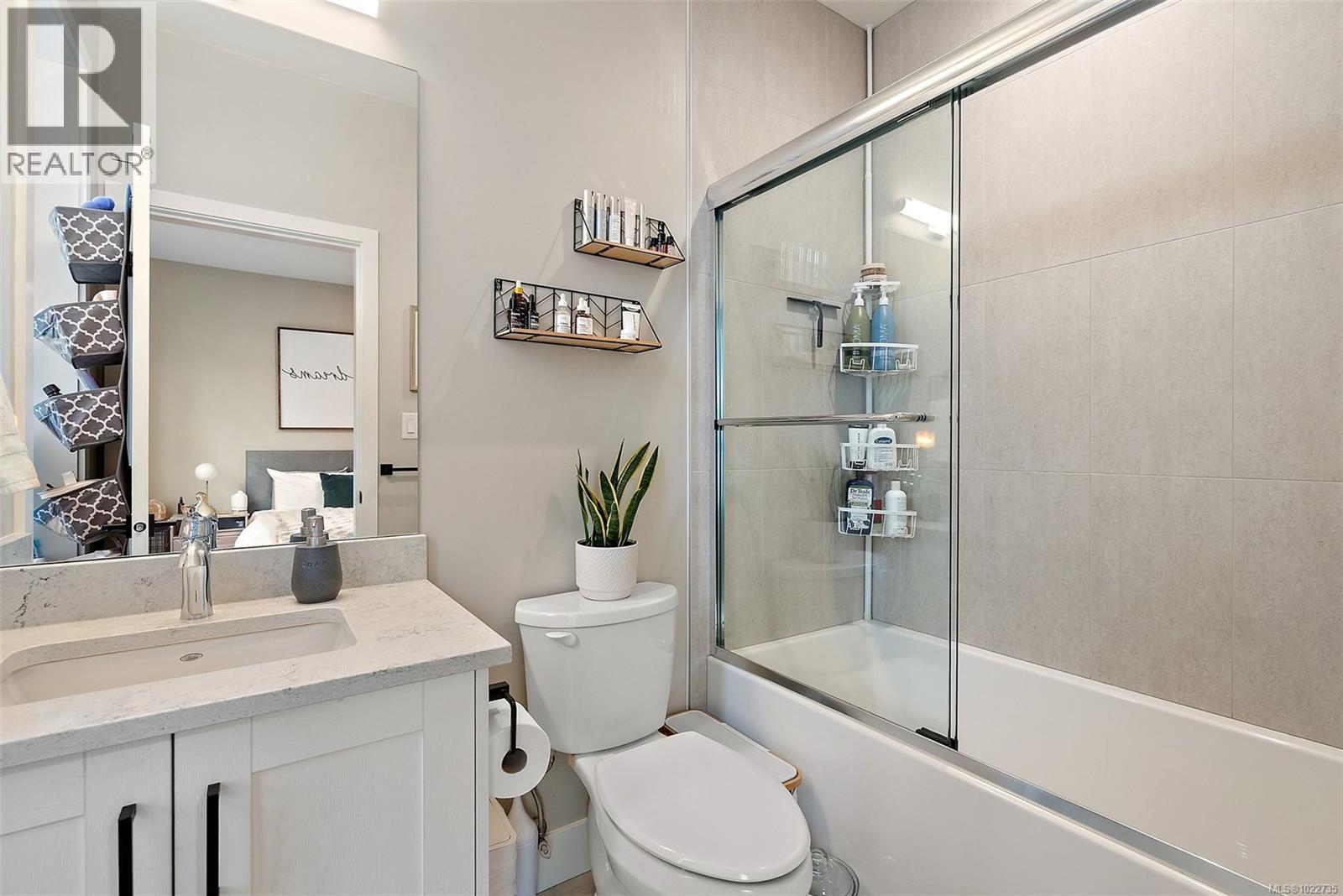 Welcome home to this bright, well-appointed 3-bedroom, 3-bathroom home offering 1,450 sq ft of comfortable living space plus an oversized 532 sq ft garage. The main level features an open layout with 9-ft ceilings, electric fireplace, and a chef-inspired kitchen complete with quartz countertops, stainless steel appliances with gas range, soft-close cabinetry, full-height pantry, tile backsplash, and a large island ideal for everyday living and entertaining. Added comforts include air conditioning, on-demand hot water, and cordless blinds throughout. Upstairs, the primary bedroom offers a walk-in closet and 4-piece ensuite, with two additional bedrooms nearby. Outside, enjoy a sunny south-facing deck and fully fenced yard—perfect for kids, pets, or hosting. Conveniently located near Red Barn Market, Olympic View Golf Course, and the Galloping Goose Trail. Rentals permitted, pets welcome with no weight restrictions, and remaining 2-5-10 home warranty. Call today for private showing 250-589-6995 (30268553)