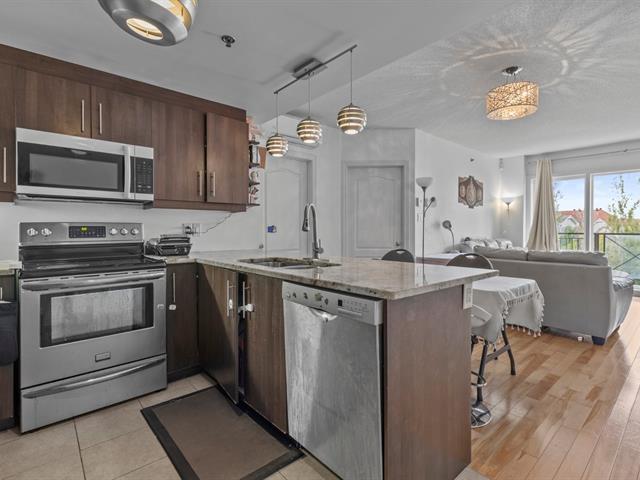Superb 2-bedroom condo located in Nouveau Saint-Laurent! Offering an open-concept living space between the living room and the dining room, this bright unit benefits from an unobstructed view to the rear and optimal sunlight. The condo includes indoor parking, storage space, and appliances. The building offers a modern gym and a magnificent rooftop terrace. Prime location, close to all services, with quick access to major highways and just minutes from the Bois-Franc REM station. (50024952)