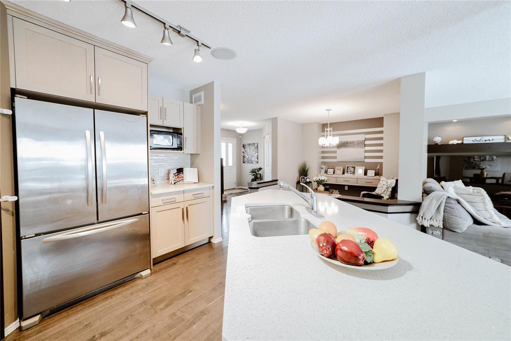 4F//Winnipeg/Showing Starts January 13 | Offers January 20 | Open House Jan 17 & 18, 2 4 PM. Step into this stunning 1,760 sq. ft. luxury townhouse condo featuring 3 bedrooms, 2 full and 2 half bathrooms and a double attached garage. This former Randall show home is packed with upgrades, including a new hot water tank and blends style with comfort. Maple hardwood floors, an open-concept layout and abundant natural light create a welcoming atmosphere. The kitchen boasts maple cabinetry, quartz countertops, a custom backsplash and a walk-in pantry, flowing into the formal dining area and cozy great room with built-in entertainment unit and stone gas fireplace. Enjoy summer BBQs on the spacious deck overlooking a fully fenced, professionally landscaped yard. Upstairs includes 3 spacious bedrooms, a primary suite with walk-in closet and private ensuite, plus a convenient laundry room. The fully finished lower level provides extra living space and storage perfect for a rec room, office, or gym. Located in desirable Amber Trails near schools, parks, trails, medical services, shopping, dining and transit. Book your showing now don t wait! A rare find act fast! (231846690)