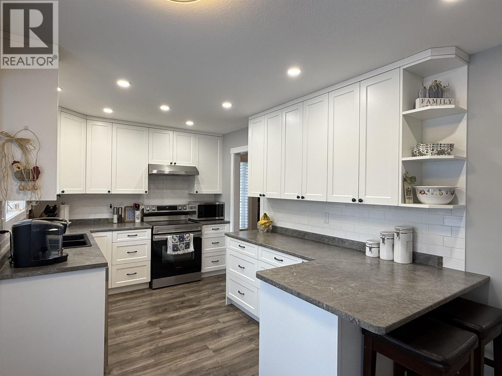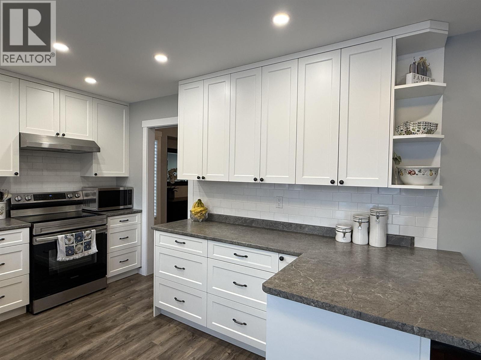 This newly & beautifully fully updated home in the Hart Highlands offers 2,652 sq ft of comfortable living space. Wonderful features include three bedrooms up and one down and three full bathrooms. Vaulted ceilings in both the living and dining room, large windows and a cozy natural gas fireplace say elegance and warmth. New, modern kitchen, updated flooring, carpets, closets, vanities, and lighting give the home a fresh, stylish feel. Basement updated in 2023 and the asphalt driveway in 2022. Enjoy a lovely deck overlooking a fully fenced back yard. Ample parking with the bonus of a double garage. This quiet, family-friendly neighbourhood is close to schools, shopping, transit, trails and Hart Ski Hill. Truly home sweet home! (32325145)
