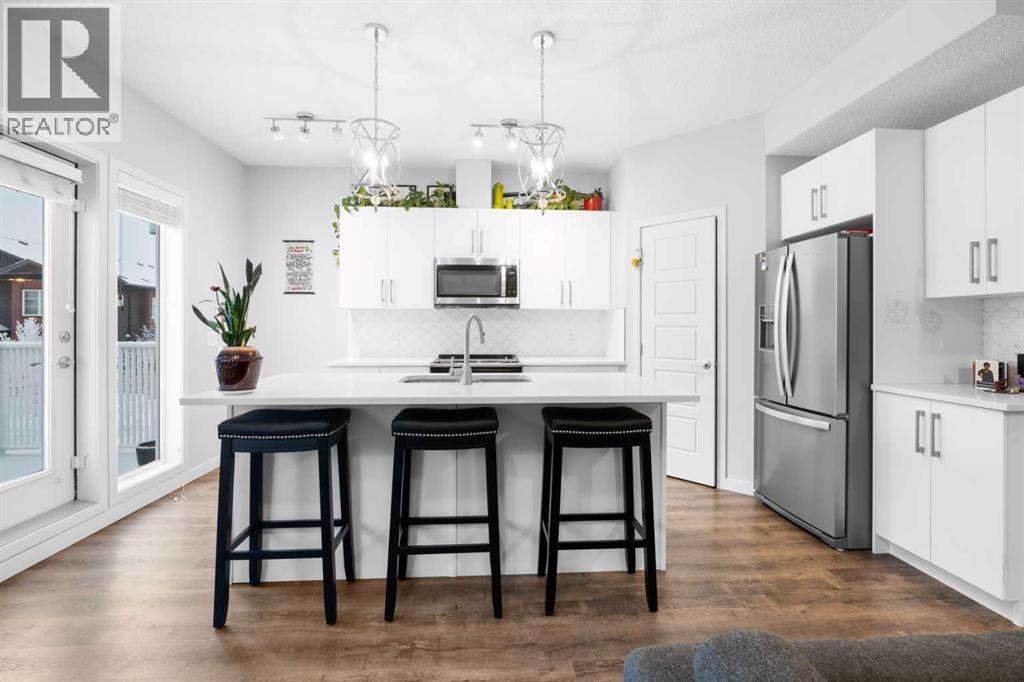 Welcome to this beautifully appointed end-unit townhome offering the perfect blend of style, comfort, and functionality—an excellent opportunity for first-time buyers or savvy investors. Step inside to a spacious foyer with abundant storage, immediately showcasing the home’s thoughtful and practical design.The main level features a bright open-concept layout that seamlessly connects the living, dining, and kitchen areas. The modern kitchen is highlighted by a sleek island and large pantry, while the adjacent balcony provides the ideal space to relax or entertain, filled with natural light year-round.Upstairs, you’ll find two generously sized bedrooms and two full bathrooms, including a primary retreat complete with a walk-in closet and a 4-piece ensuite. Added convenience comes from the upper-level laundry.The lower level includes a secure attached garage, mechanical room, and ample storage space. Situated in the sought-after community of Redstone, this home is close to playgrounds, green spaces, Stoney Trail, Calgary International Airport, CrossIron Mills, and a wide selection of international grocery stores. Offering exceptional value in a prime location, this is a home you don’t want to miss! (31525019)